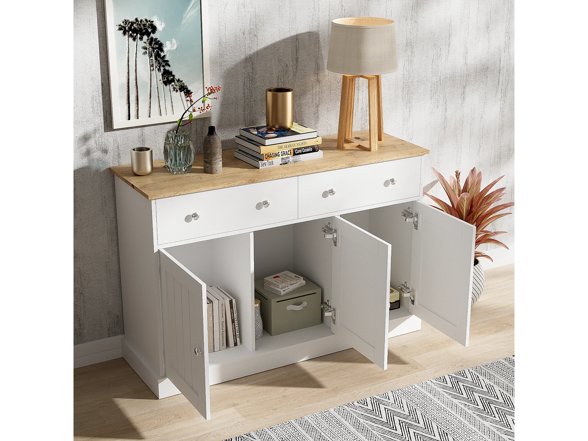 URBAN MEUBLE Buffet blanc texture gravée avec espace de rangement