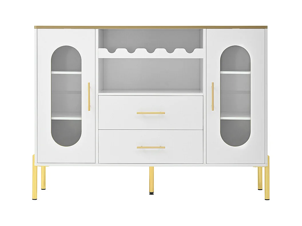 Buffet meuble de salon avec portes et tiroirs étagères intérieures commode avec poignées et pieds dorés Blanc