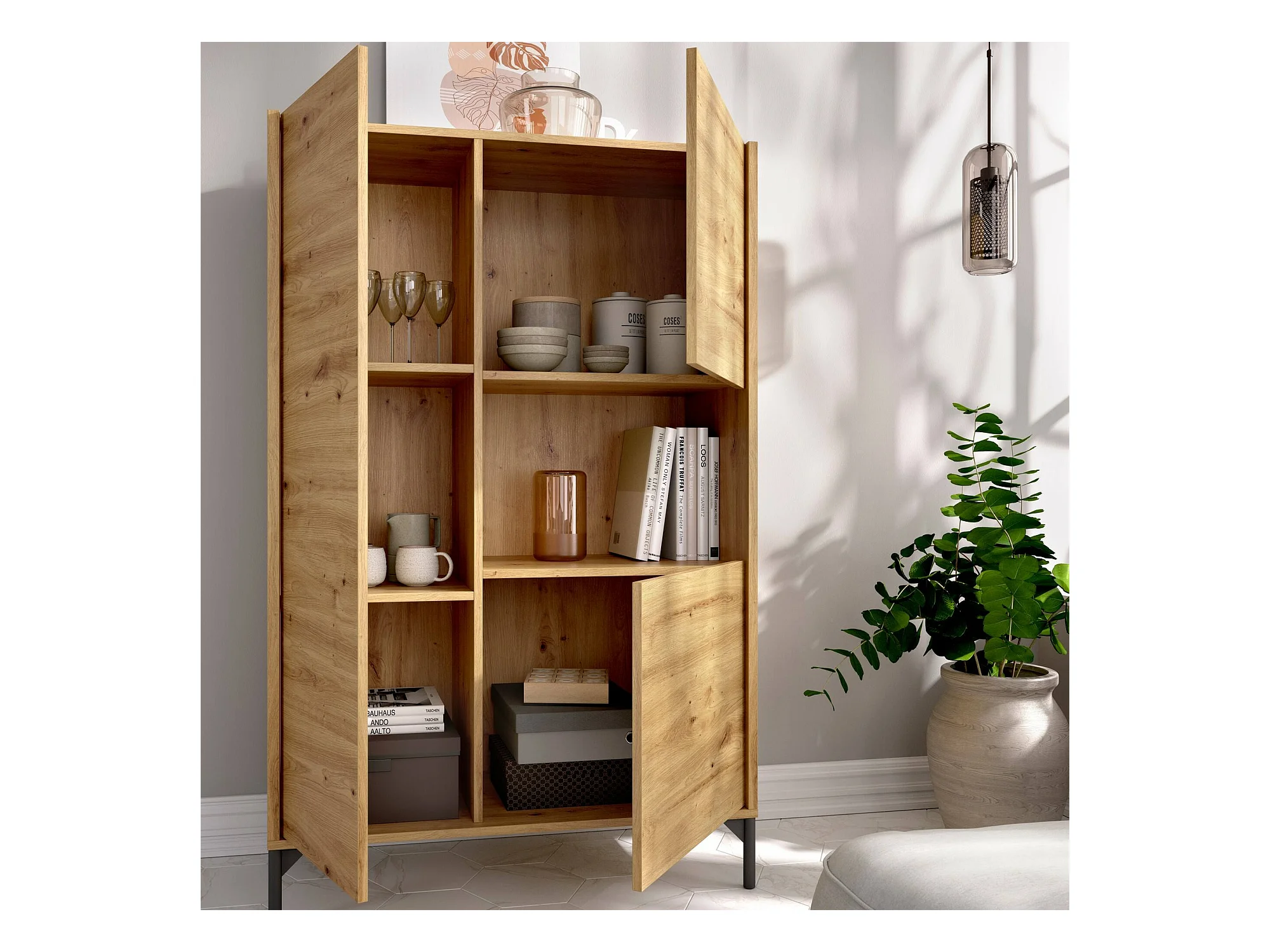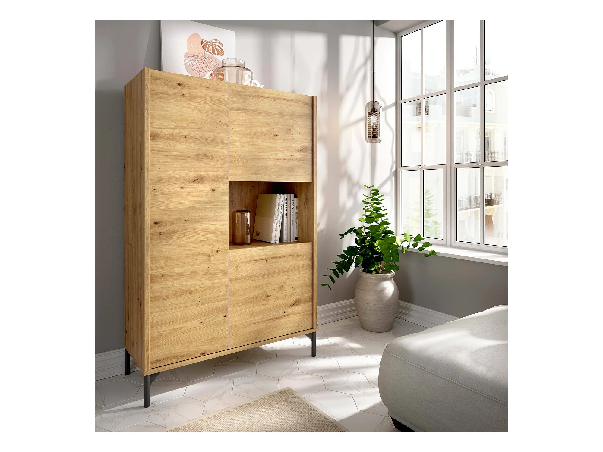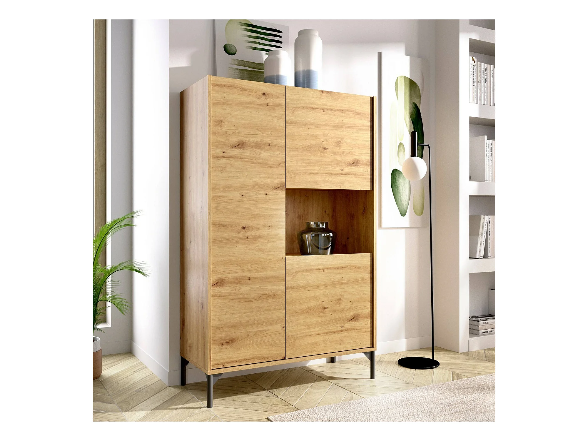 Buffet Boario, Buffet de salon haut, Buffet de salon moderne avec 3 portes, 81x43h135 cm, Chêne Nodi