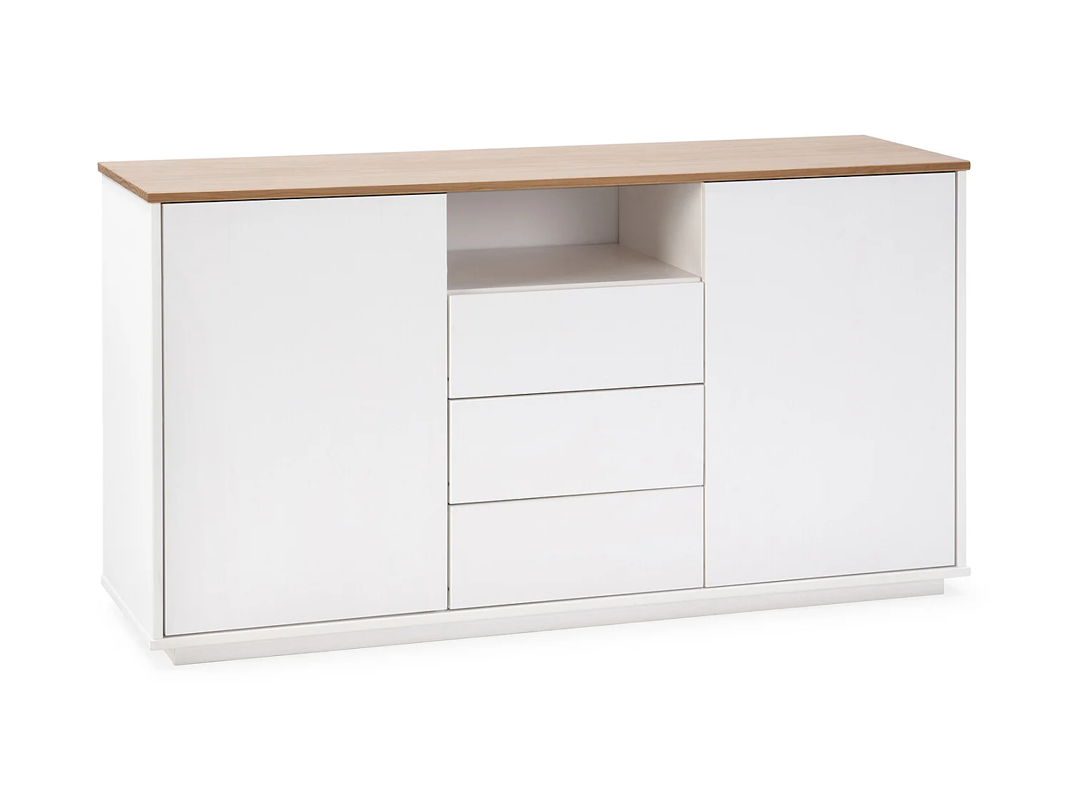 Buffet Bob 3 tiroirs et 2 portes blanc/chêne, Bois Massif