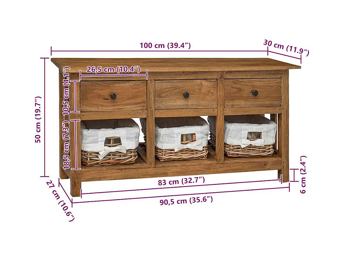 Buffet bois d'acajou massif 100x30x50 cm