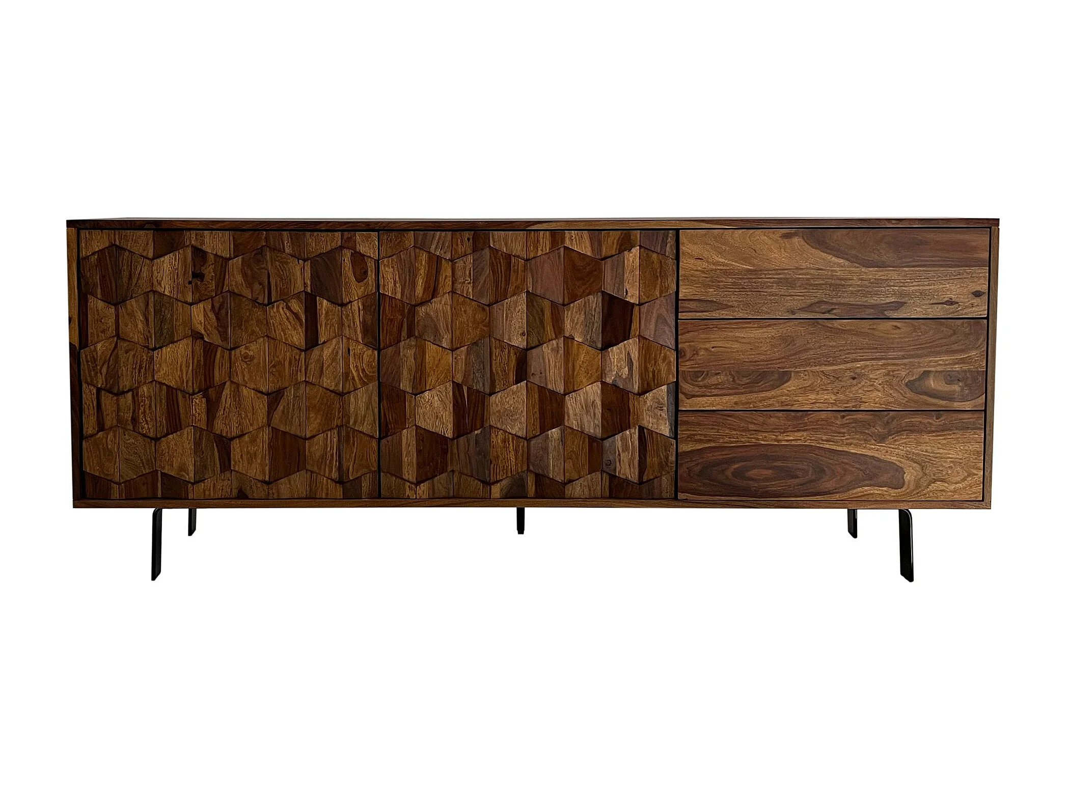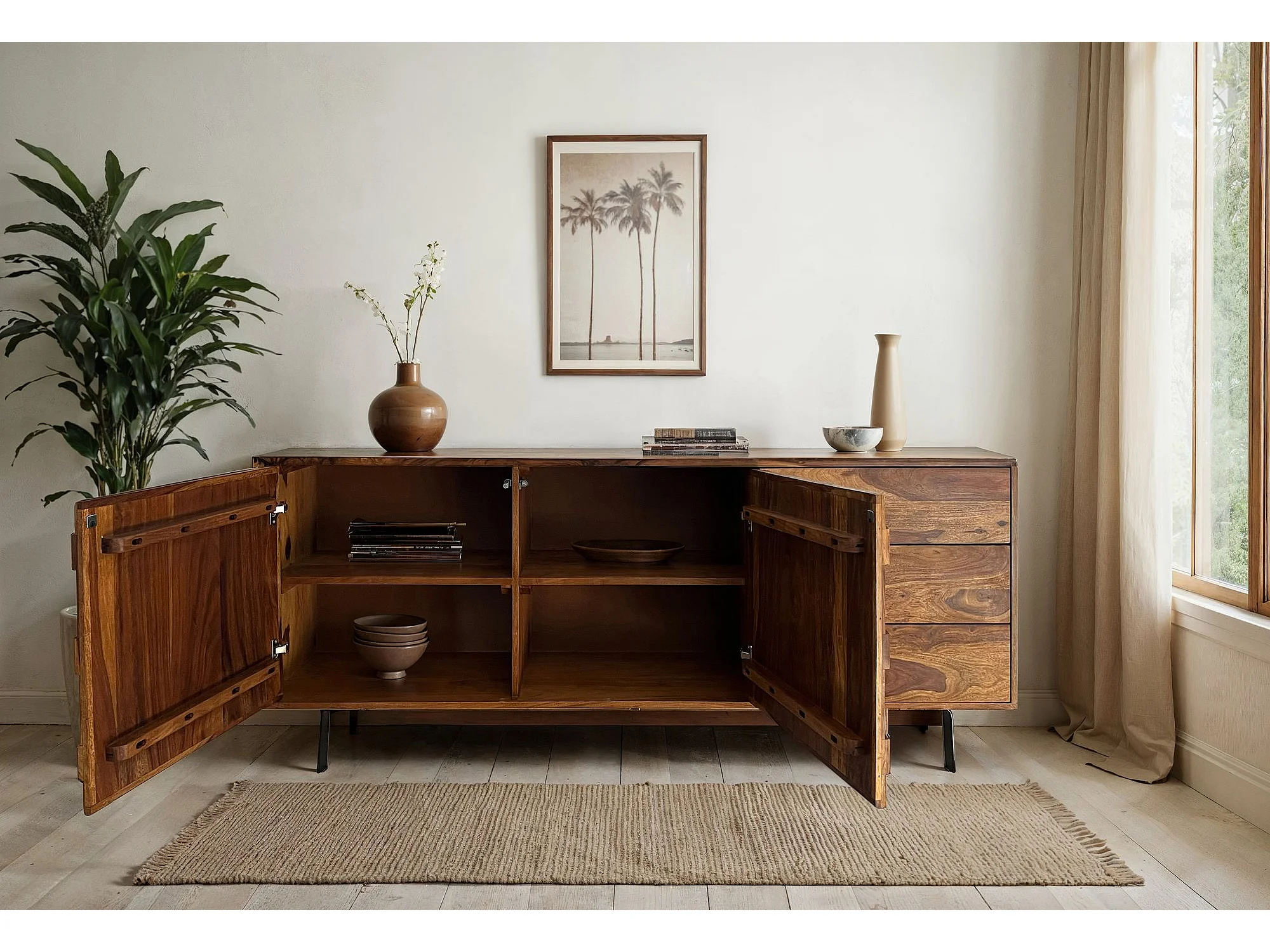 Buffet Bois Massif Sheesham 175 cm style industriel portes et tiroirs