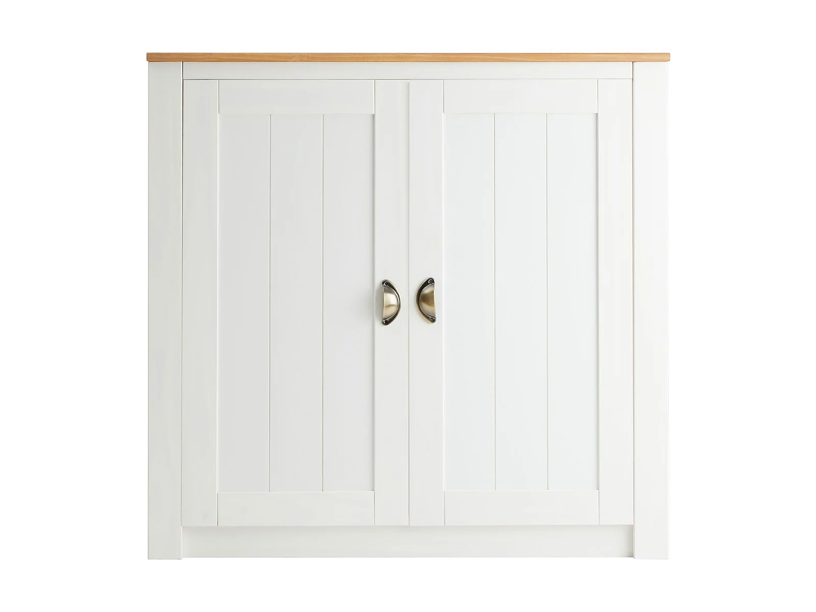 Buffet salle à manger BOLTON en bois massif L 91 cm avec 2 grandes portes battantes , blanc et brun