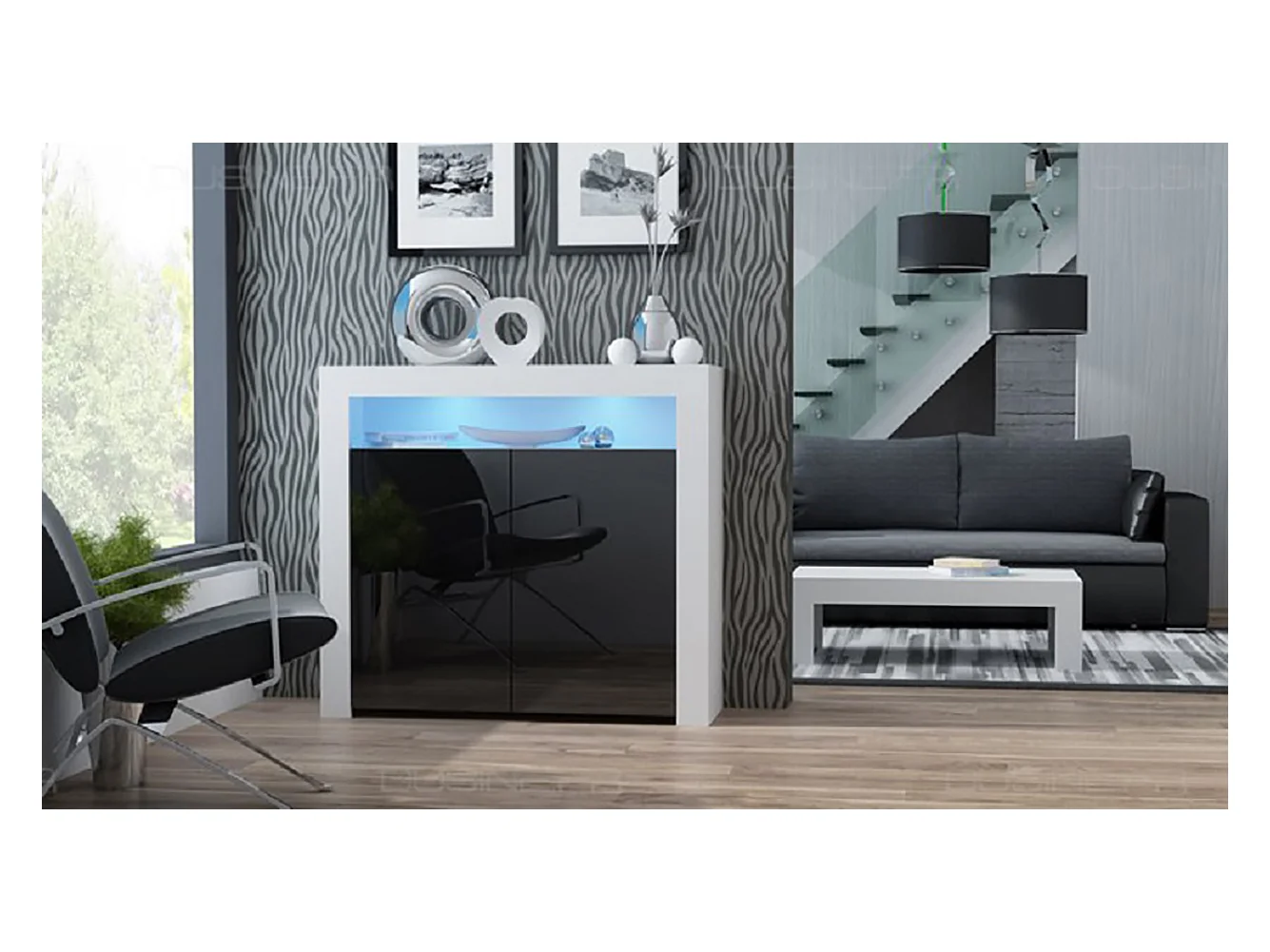 Buffet brillant noir Spider illuminé LED 107cm Caisson Blanc MAT