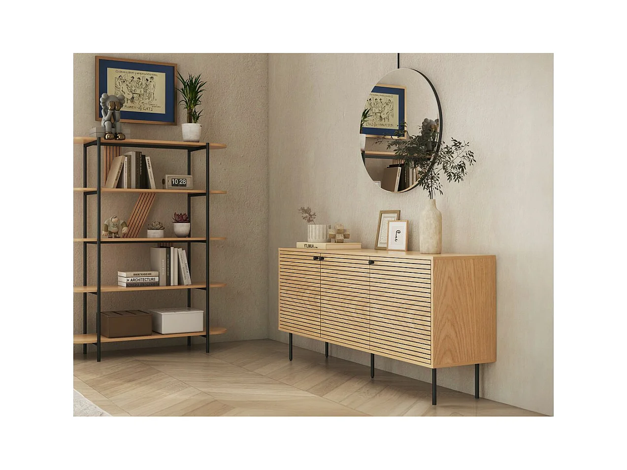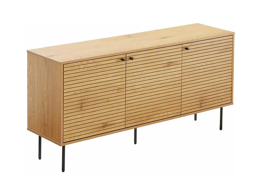 Buffet BRODIE avec finition chêne et pieds noirs - 150x140 cm - Bois