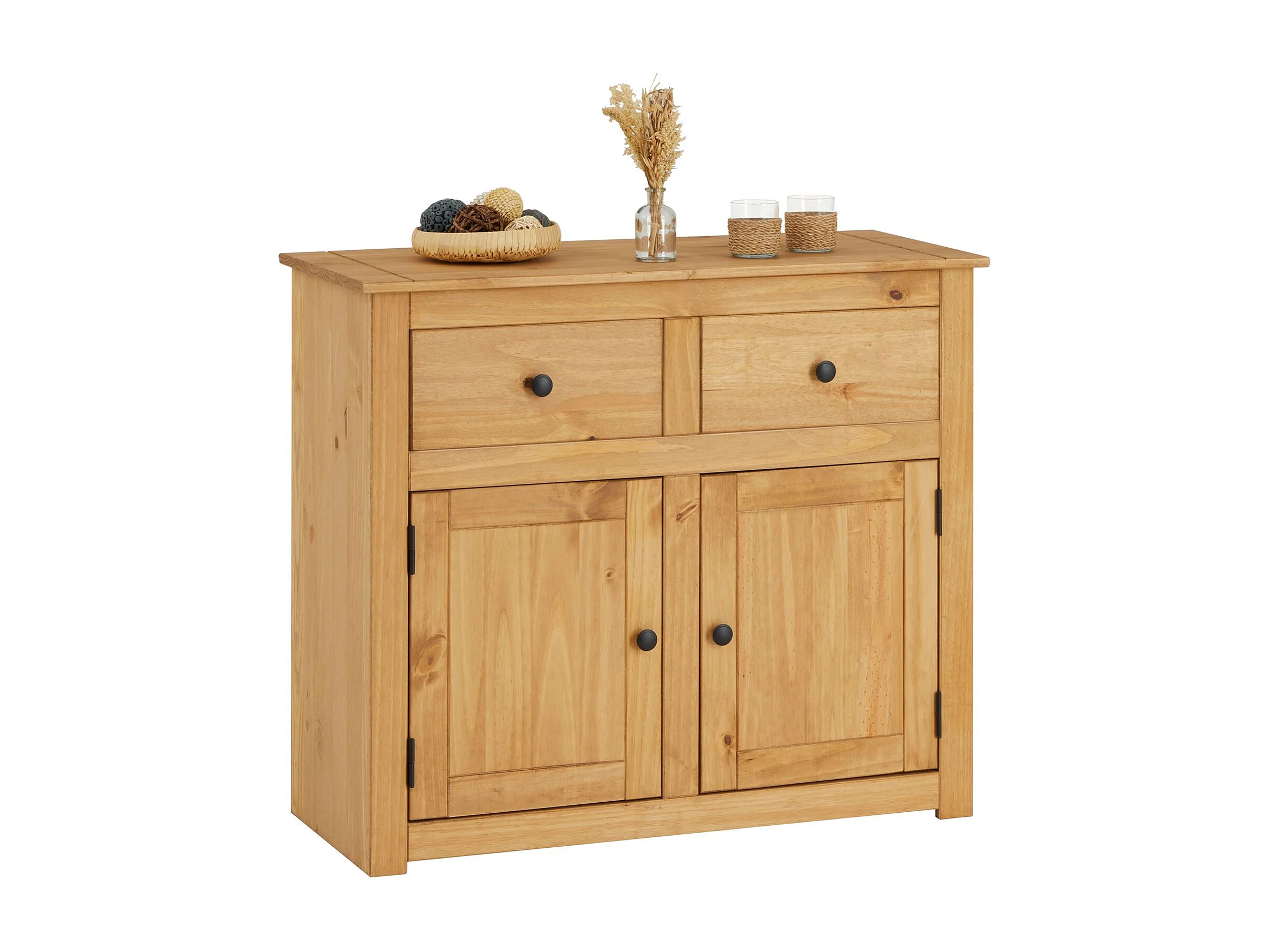 Buffet salle à manger CANCUN L 93 cm en bois massif finition laquée avec 2 portes et 2 tiroirs