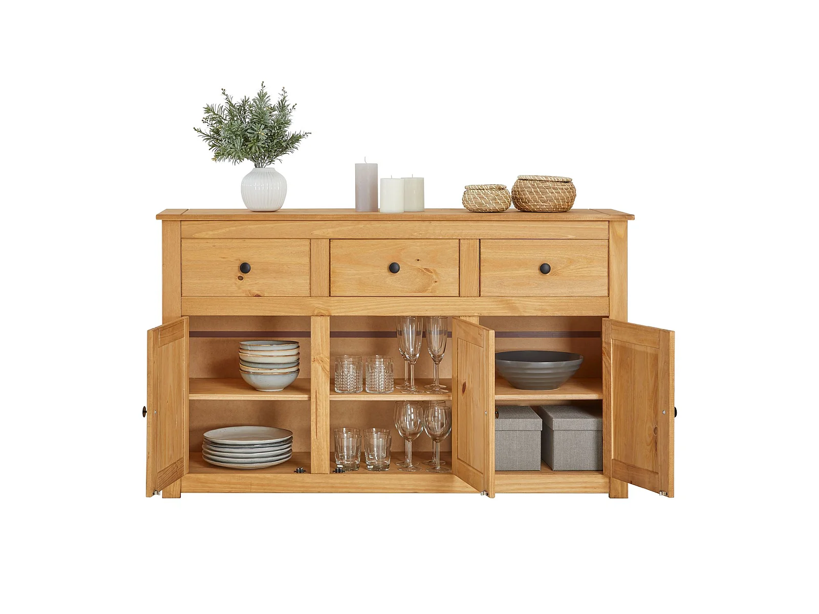 Buffet salle à manger CANCUN L 135 cm en bois massif finition laquée avec 3 portes et 3 tiroirs meuble de rangement bas