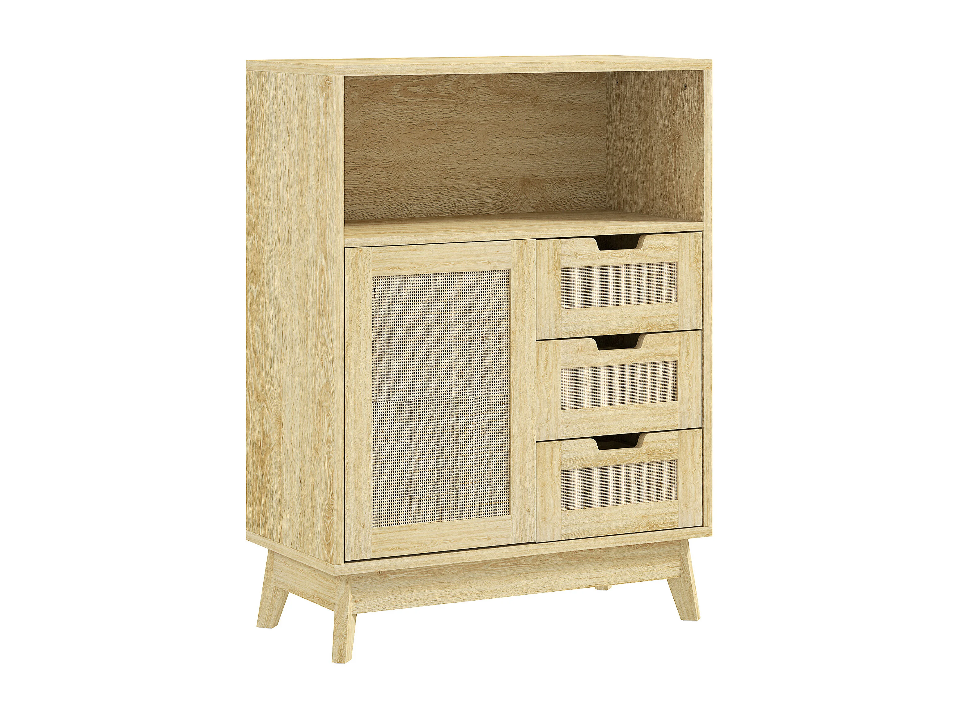 Buffet cannage effet bois style bohème chic - 3 tiroirs, porte, étagère, grande niche