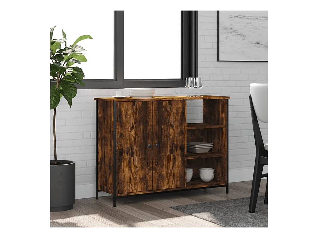 Buffet chêne fumé 100x35x75 cm bois d'ingénierie QWE65055