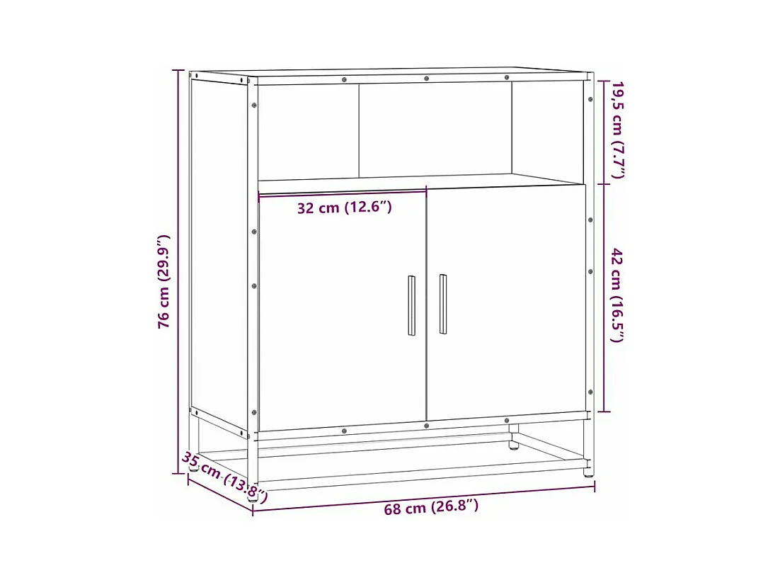 Buffet chêne marron 68x35x76 bois d'ingénierie et métal