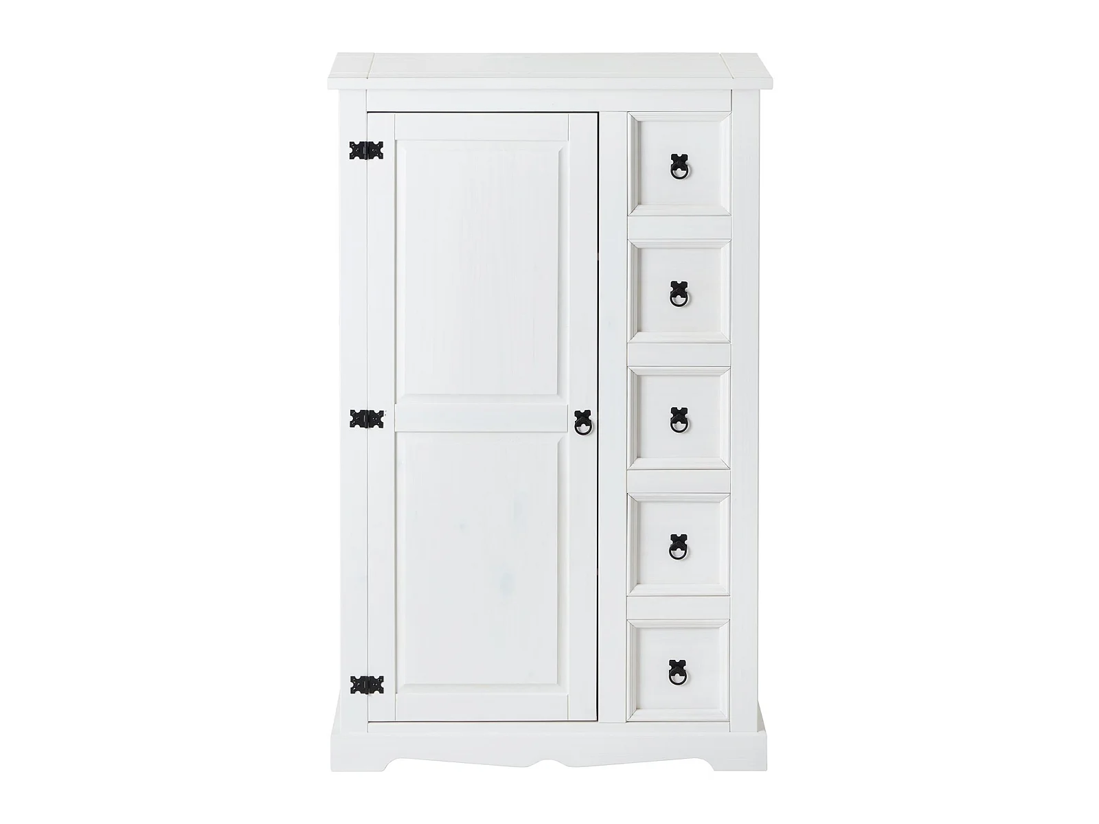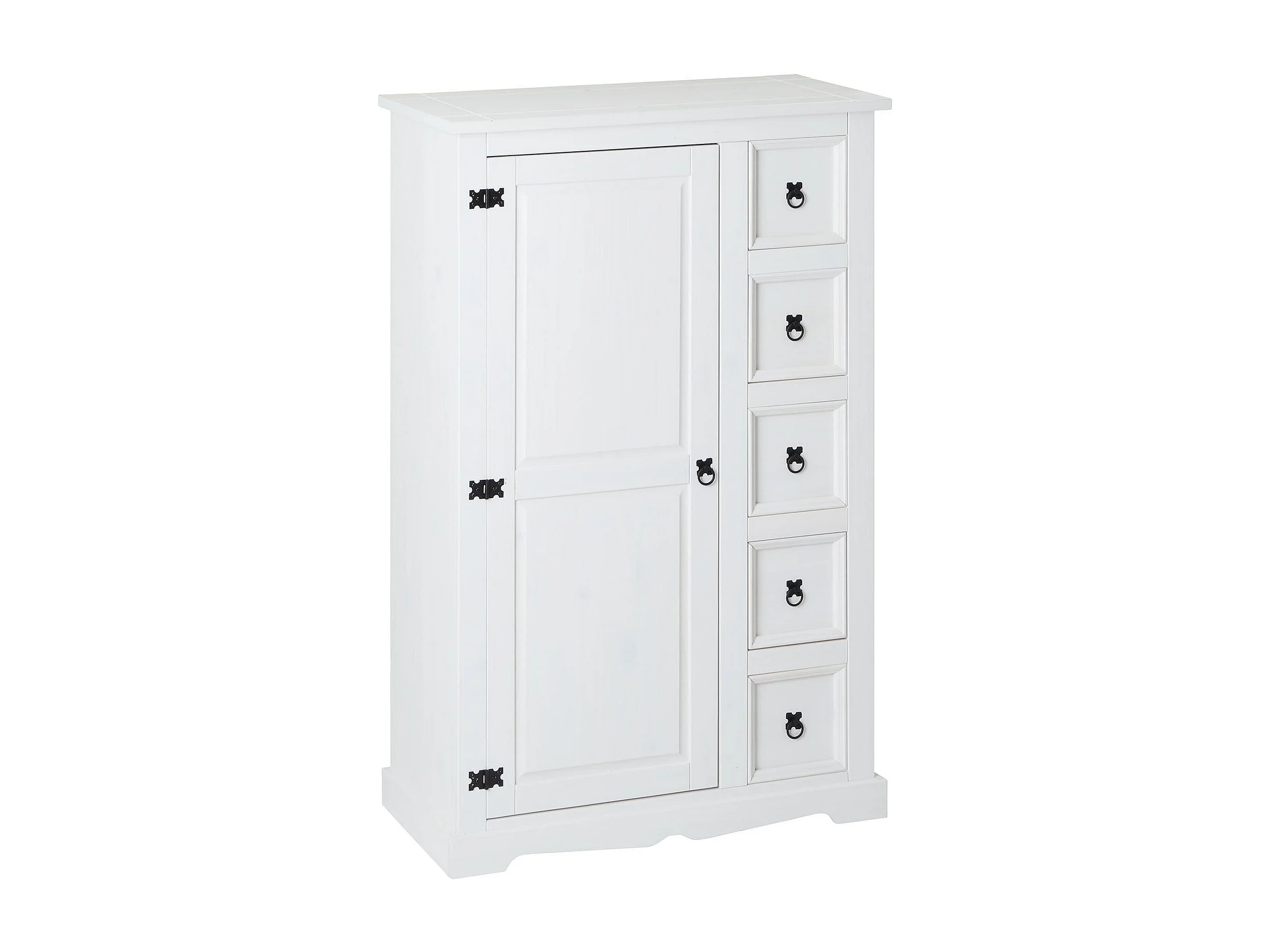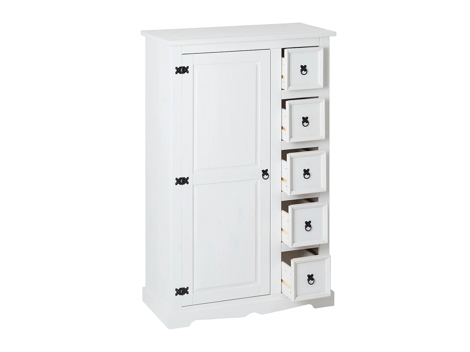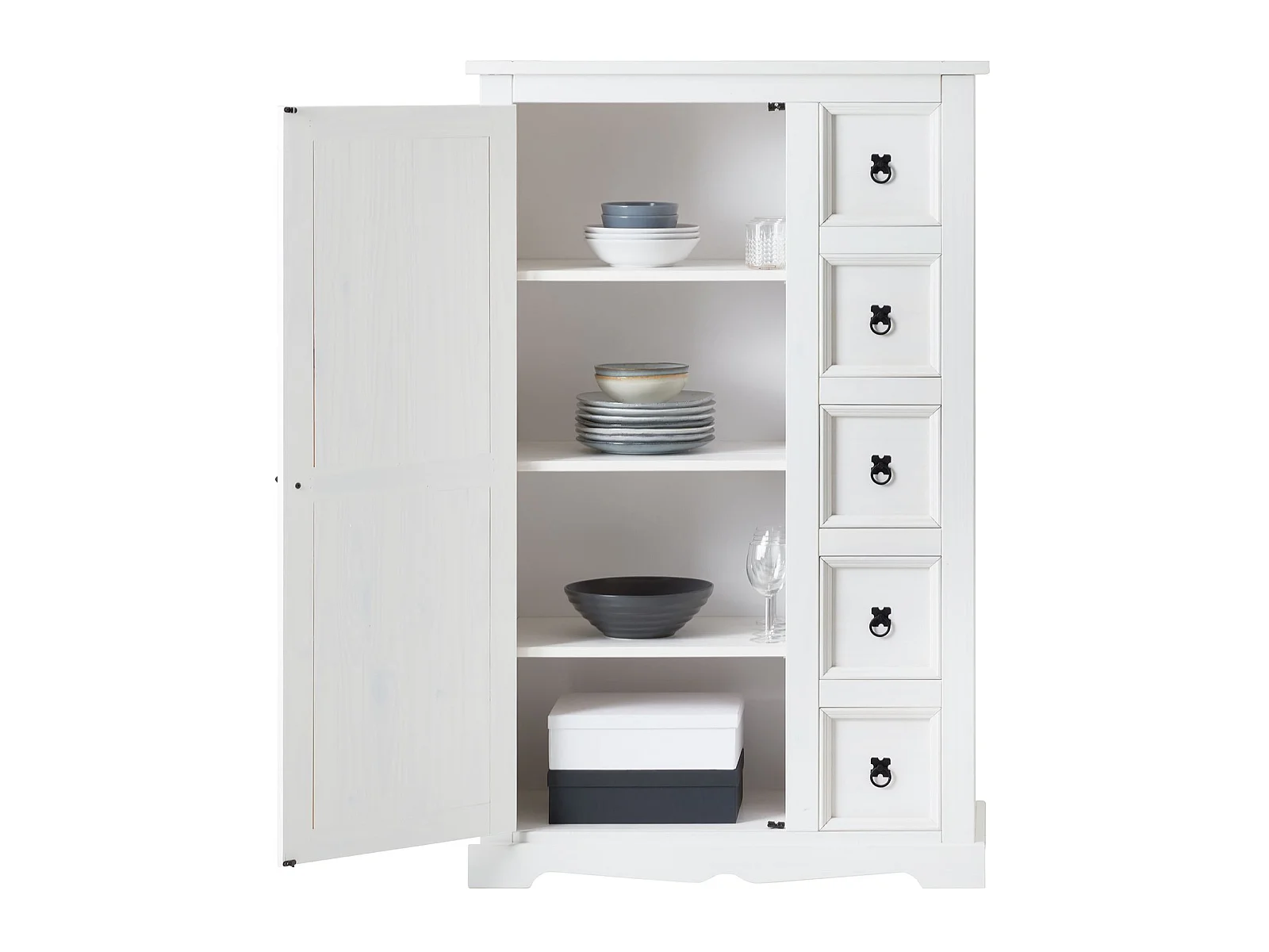 Buffet salle à manger apothicaire TEQUILA L 95 cm en bois massif blanc avec 1 porte battante et 5 tiroirs