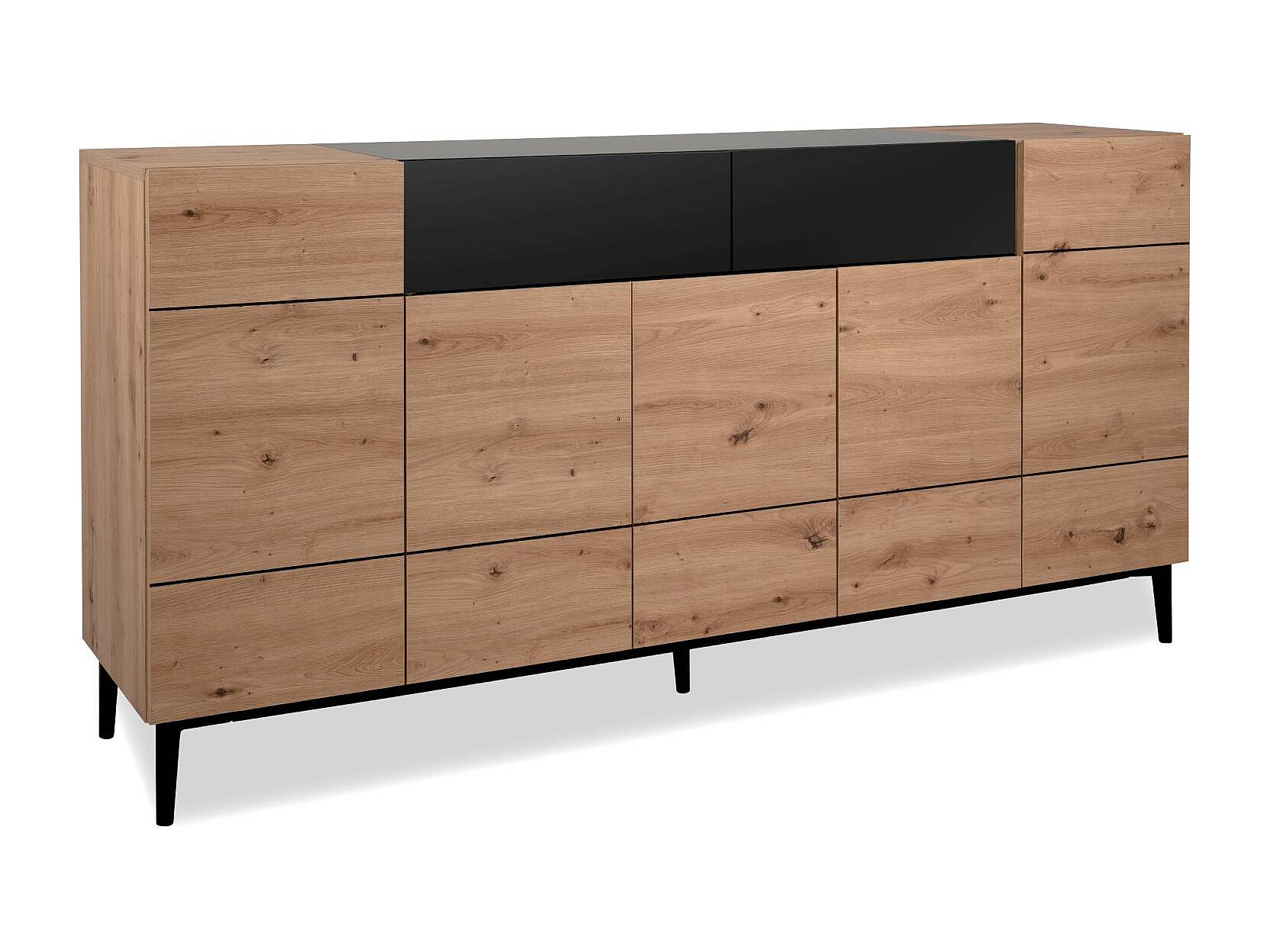 Buffet Commode 180x90x42 cm Bois de Chêne Noir en Naturel, Meuble de Salon