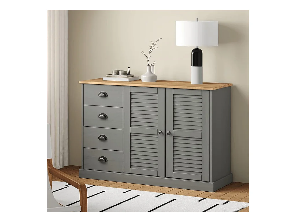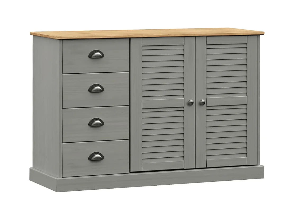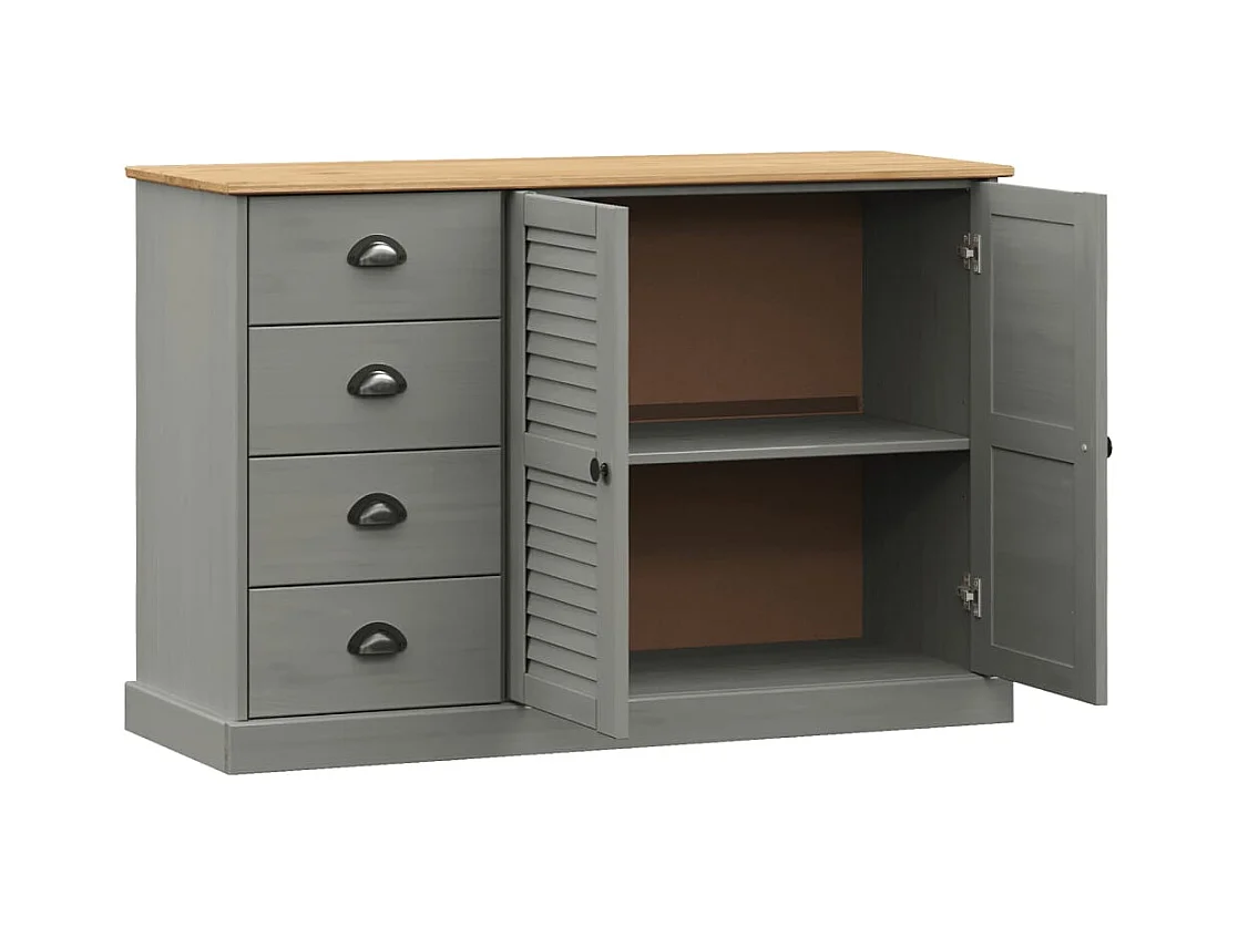 Buffet | Commode à tiroir | Meuble de rangement avec tiroirs VIGO 113x40x75 cm gris bois massif de pin