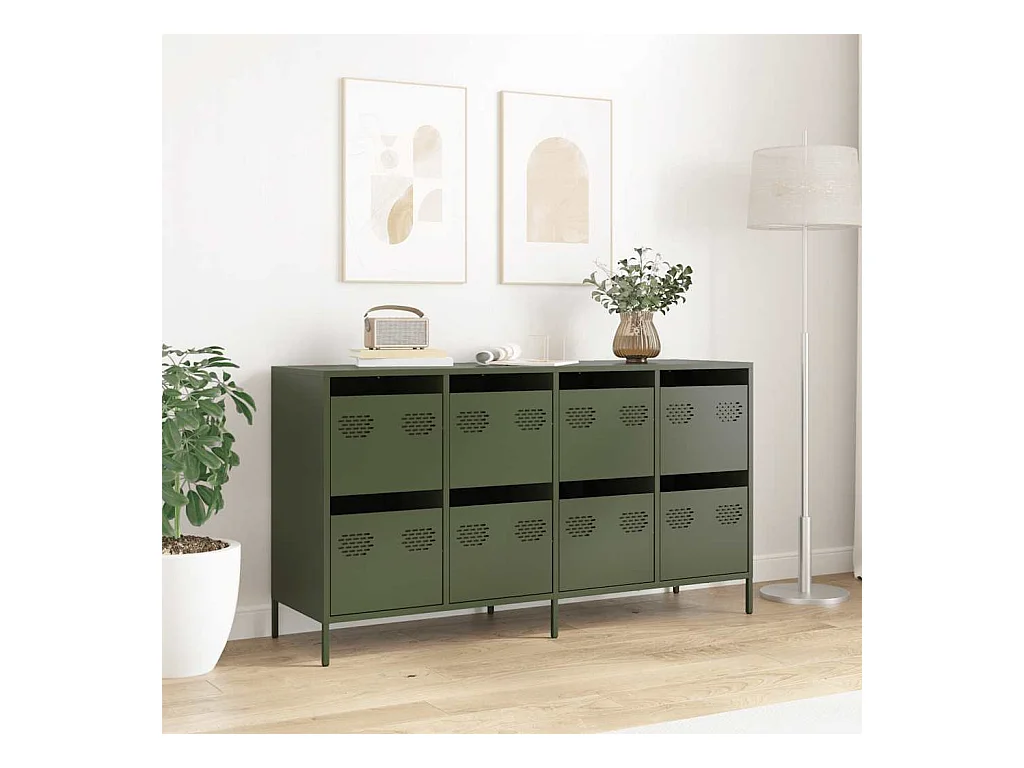Buffet | Commode à tiroir | Meuble de rangement vert olive 135x39x73,5 cm acier laminé à froid