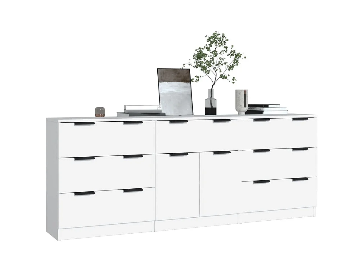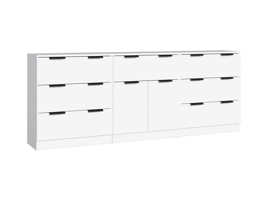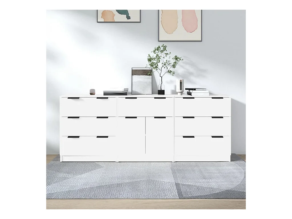 Buffet | Commode à tiroir | Meuble de rangements | Bahuts | Meuble de rangement 3 pcs Blanc Bois d'ingénierie