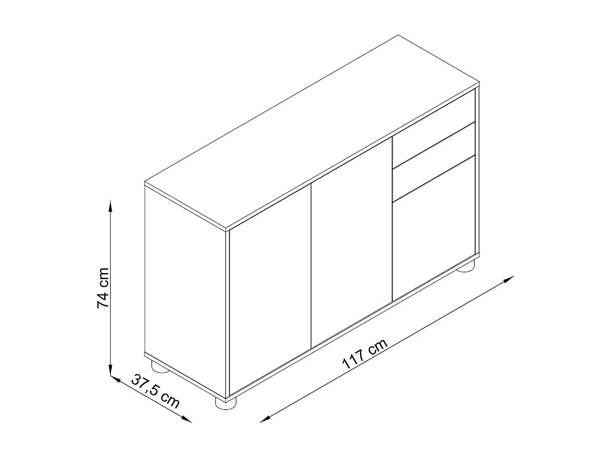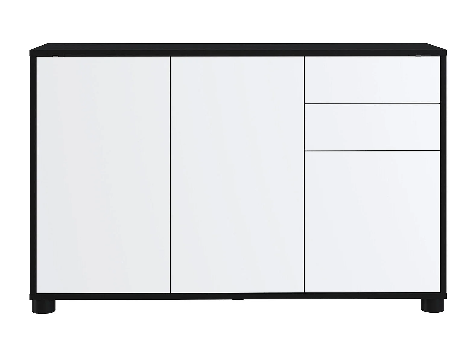 Buffet, Commode avec 3 Portes et 2 tiroirs, Noir Mat/Blanc Mat - Longueur 117 x Hauteur 74 x Profondeur 37.5 cm