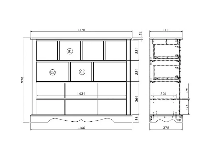 Buffet Commode Blanc 2 Portes 7 Tiroirs Style Anglais L 117 H 97 P 38 cm