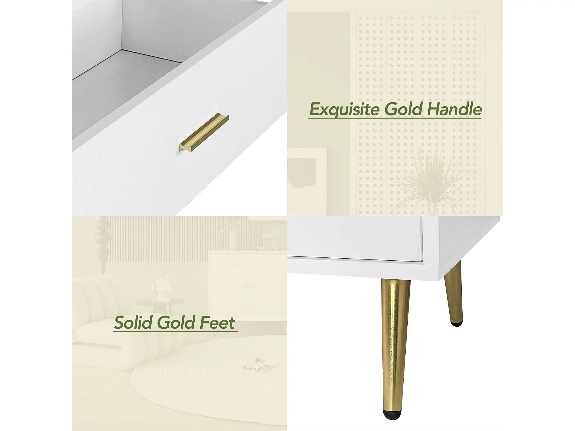 Buffet commode blanc 7 tiroirs poignées et pieds dorées STESQEKS