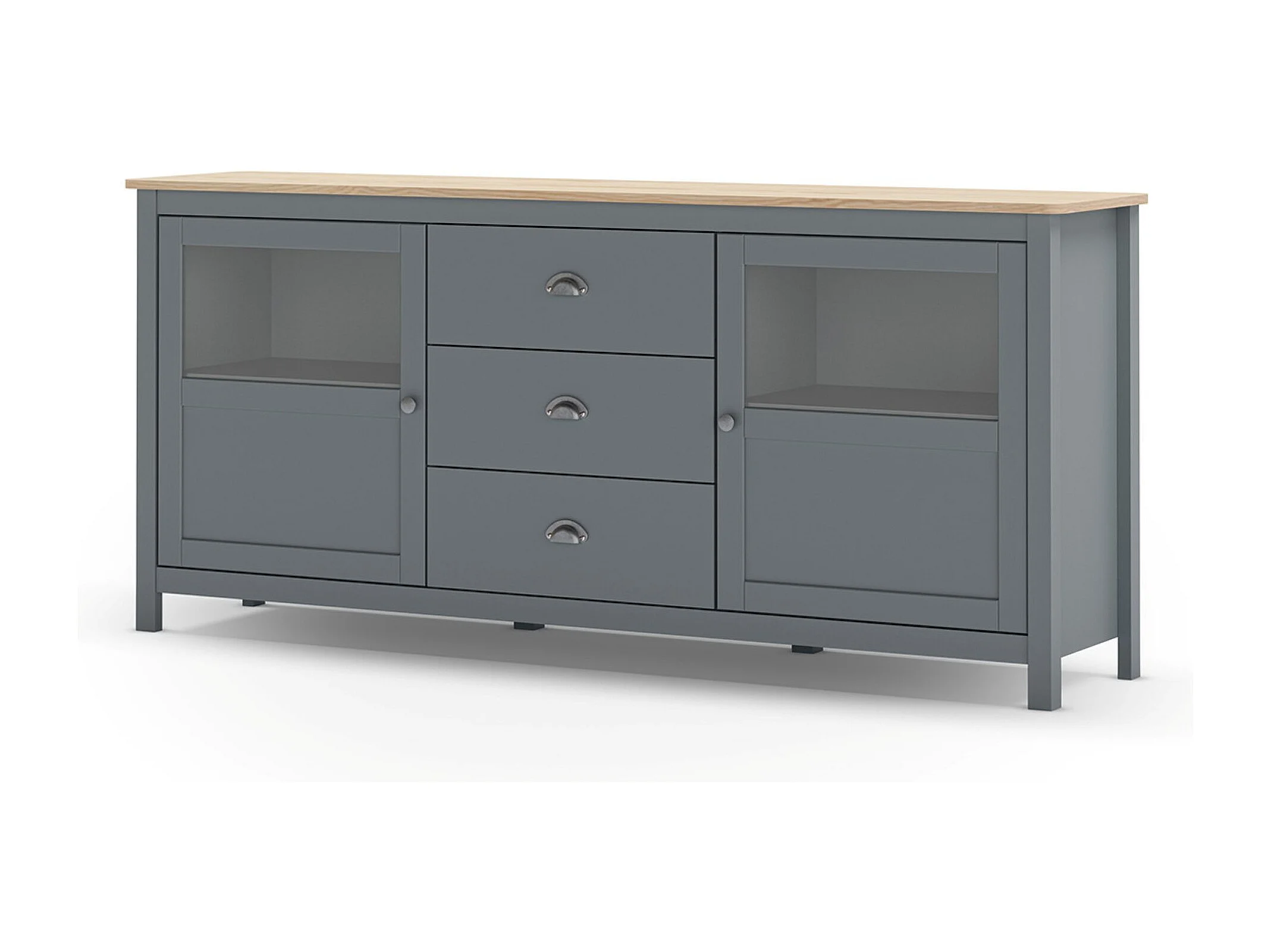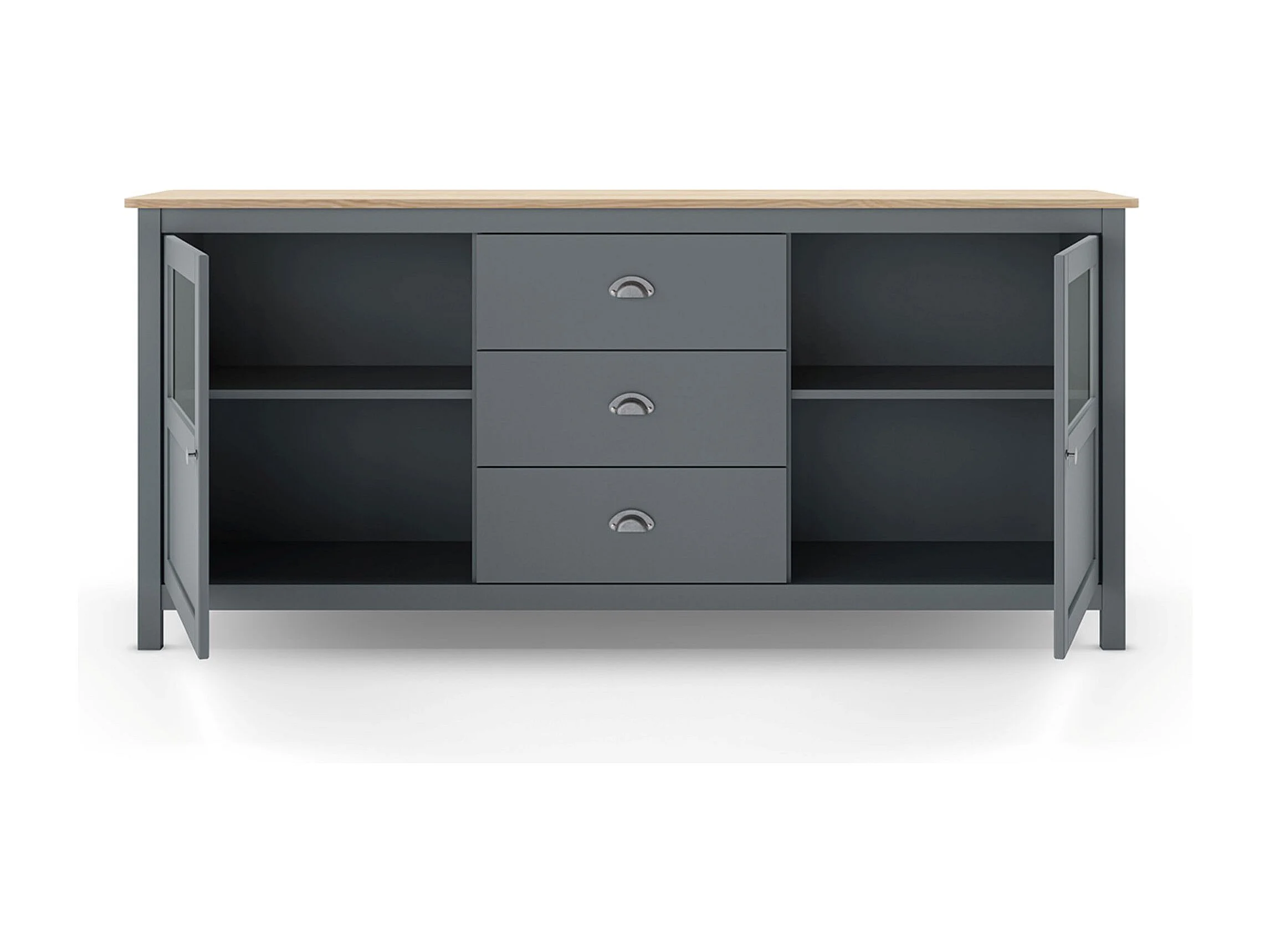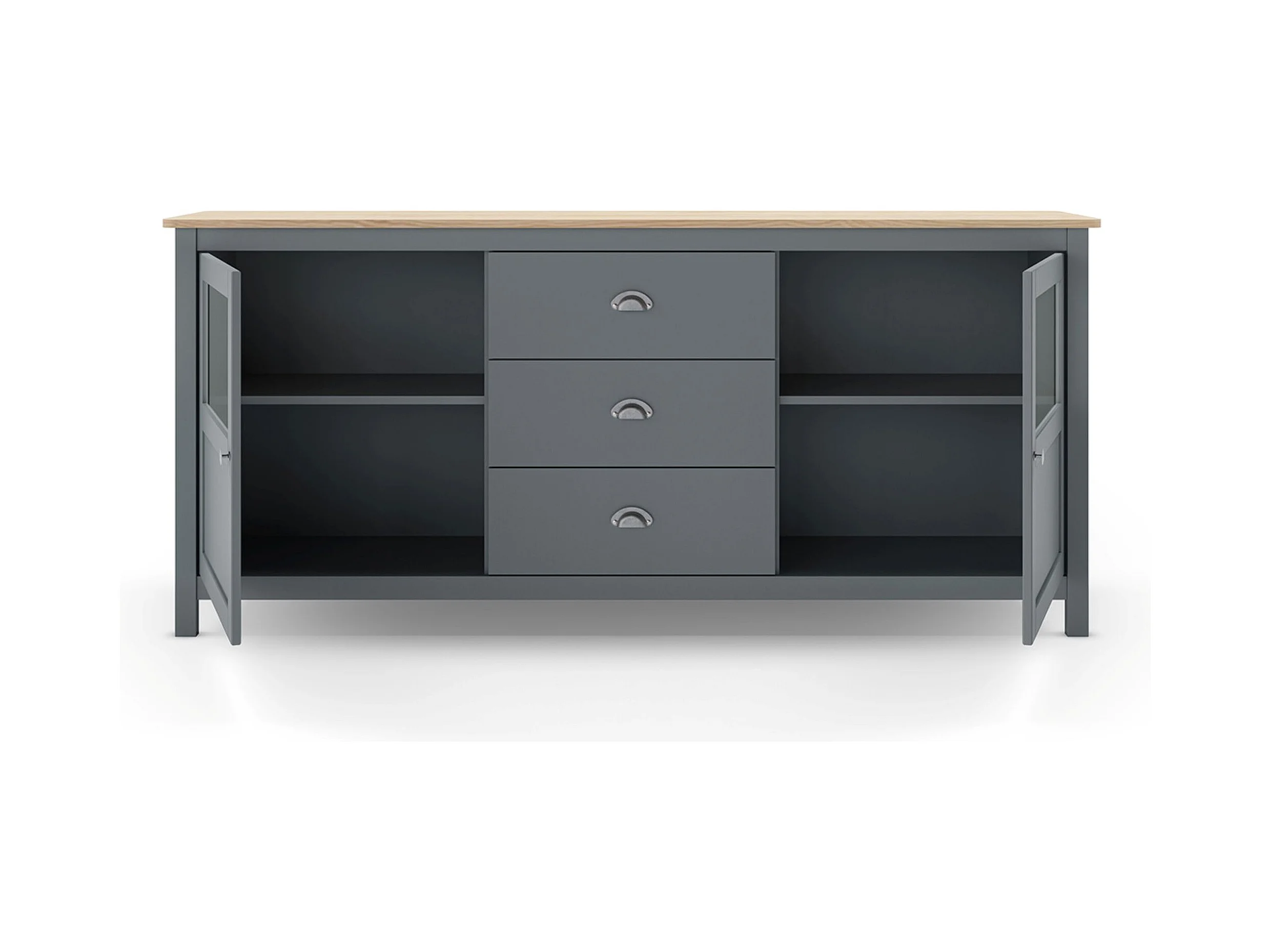 Buffet, commode de rangement avec 3 tiroirs et 2 portes en pin coloris Vert kaki, chêne - Longueur 180 x Profondeur 40 x Hauteur 80 cm