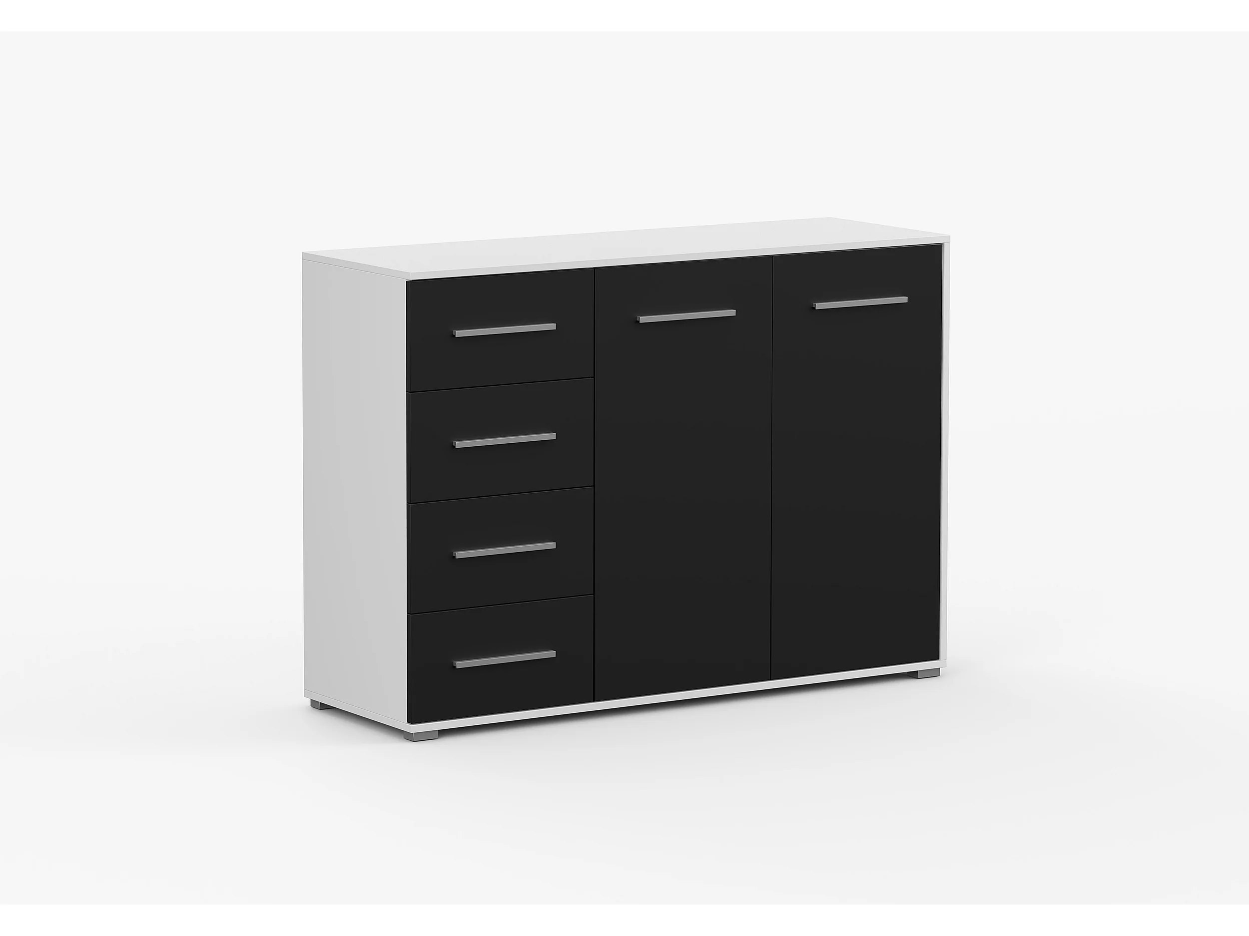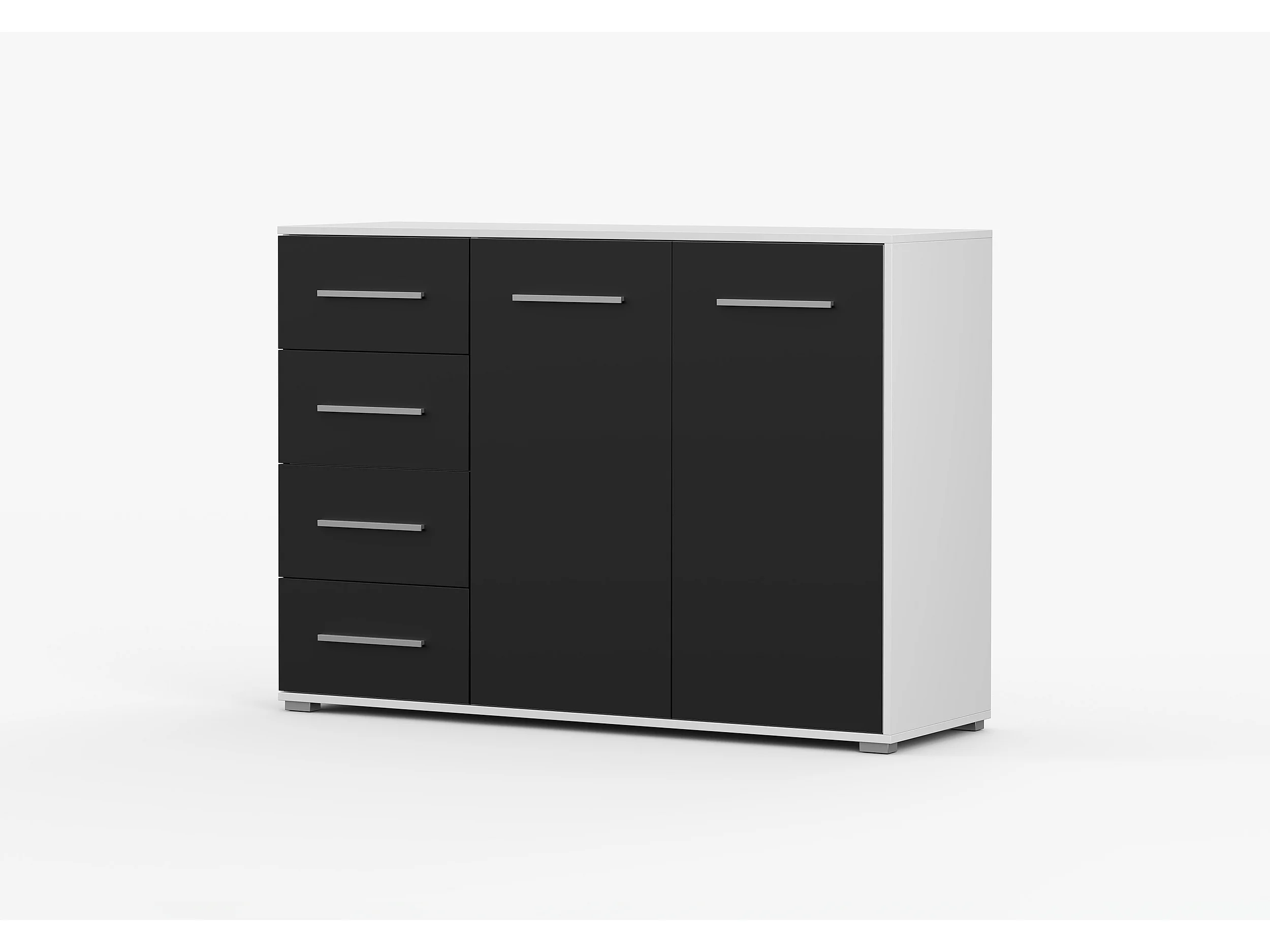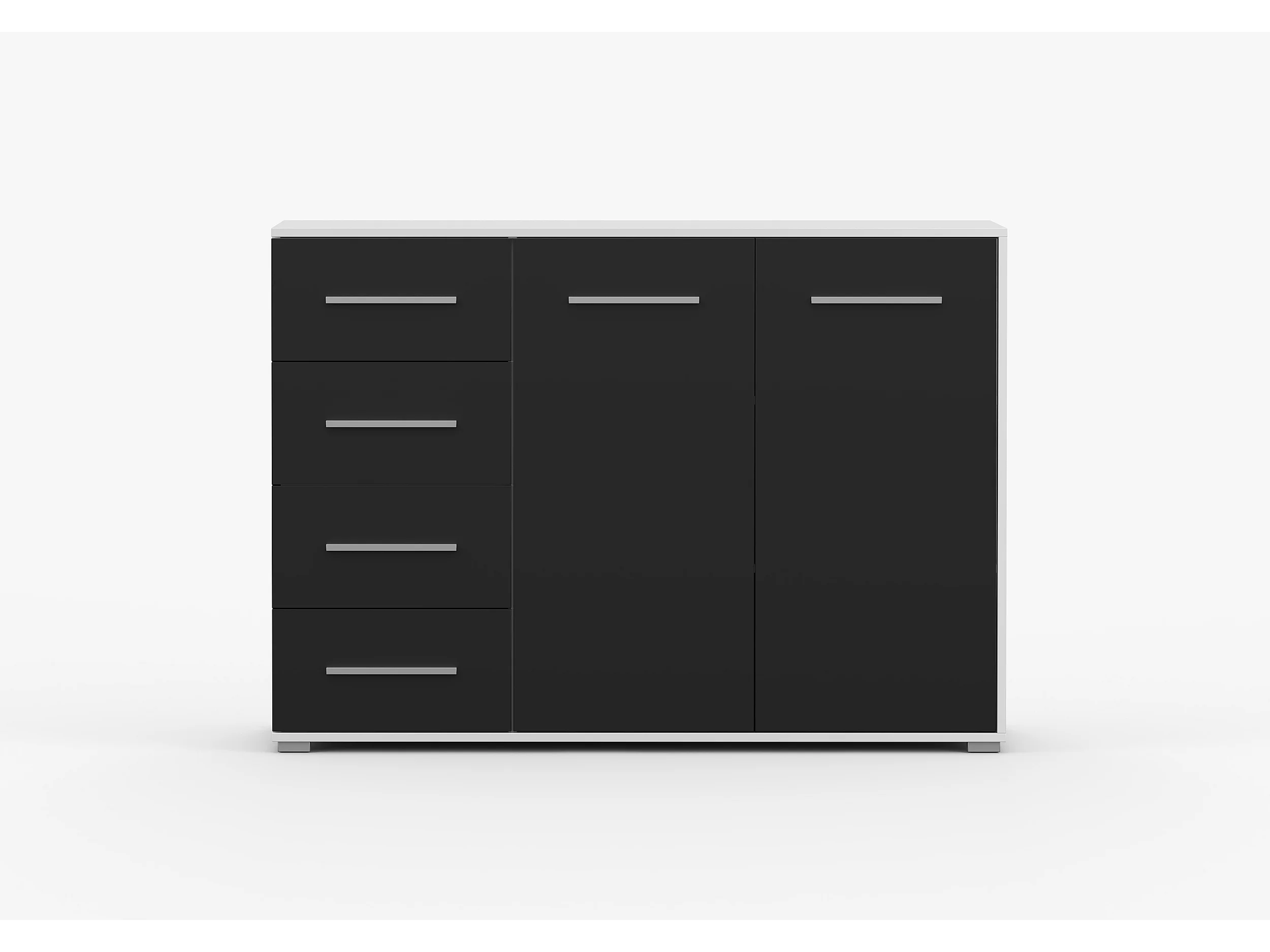 Buffet - Commode Ilario III 135 cm - Aspect mat - Blanc - Noir