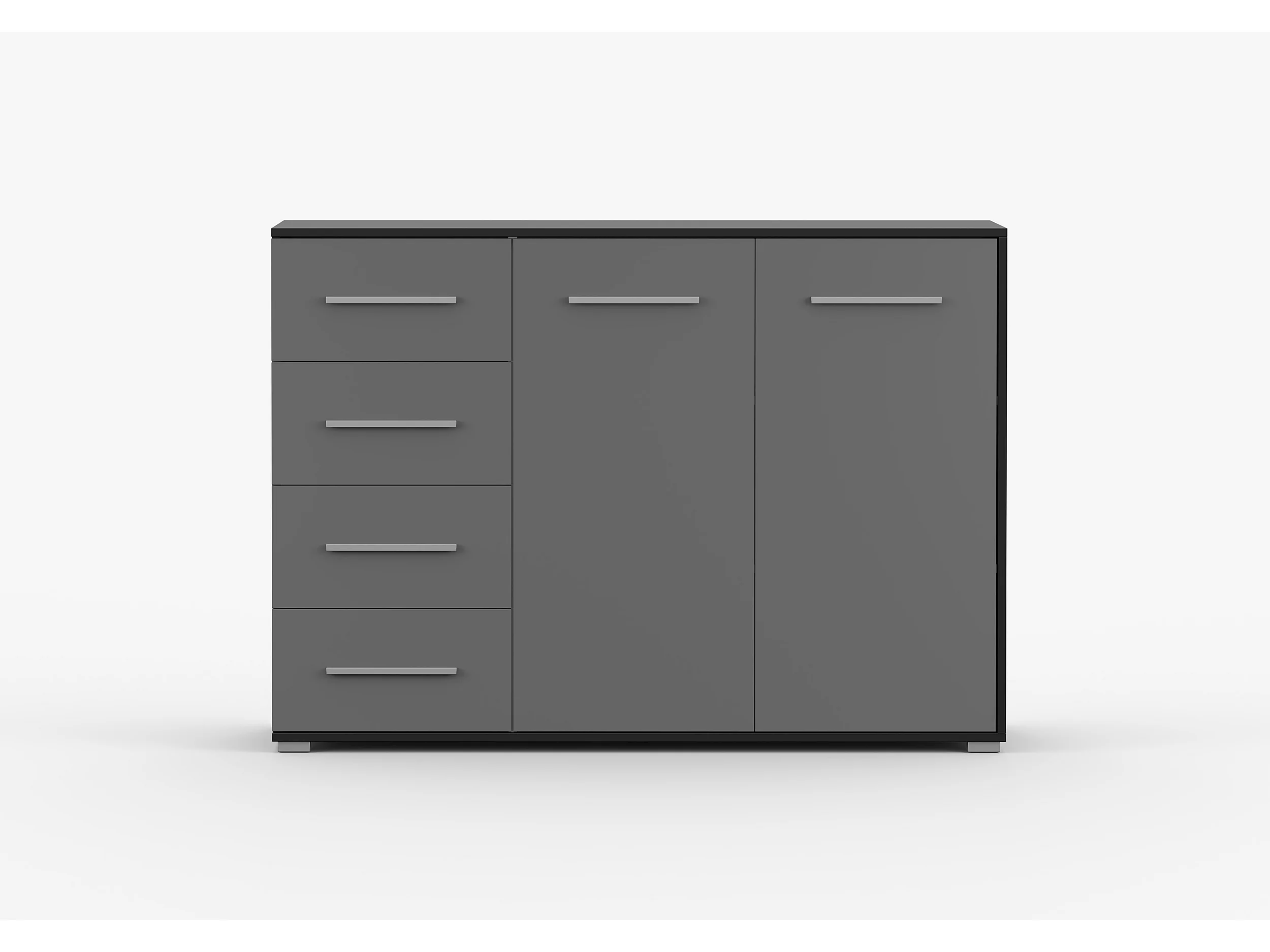 Buffet - Commode Ilario III 135 cm - Aspect mat - Noir - Gris