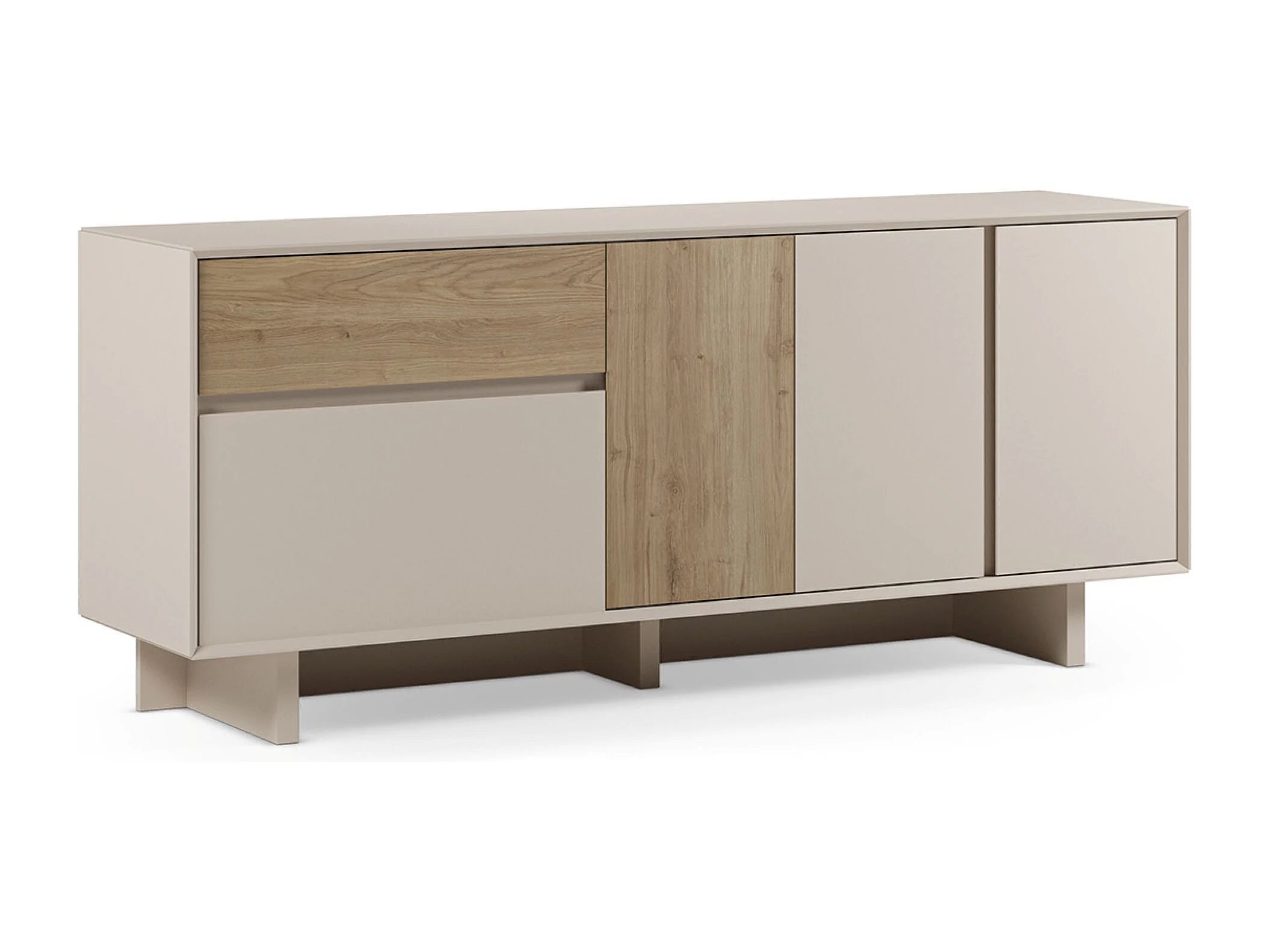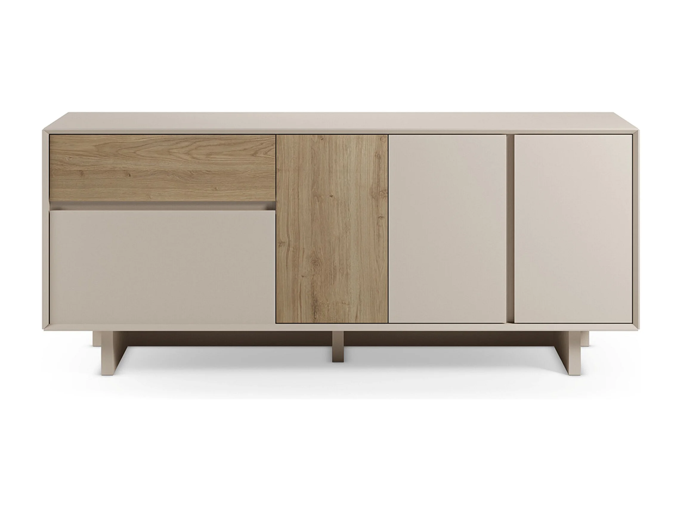 Buffet, commode rectangulaire avec 4 portes et 1 tiroir aspect bois coloris chêne, blanc - Longueur 180 x Profondeur 45 x Hauteur 76,50 cm
