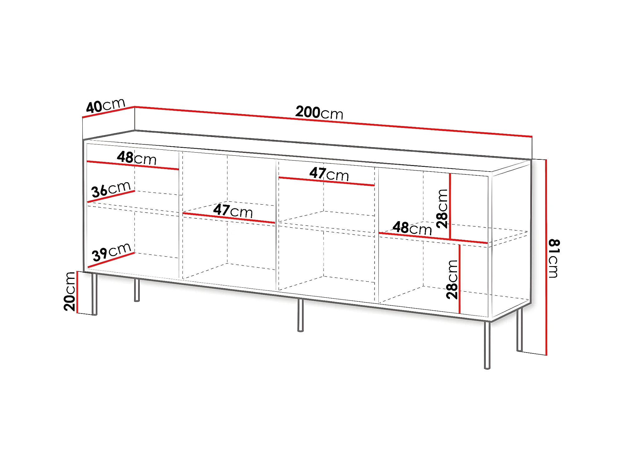 Buffet "Cortina" - 200 x 40 x 81 cm - Marron/Noir
