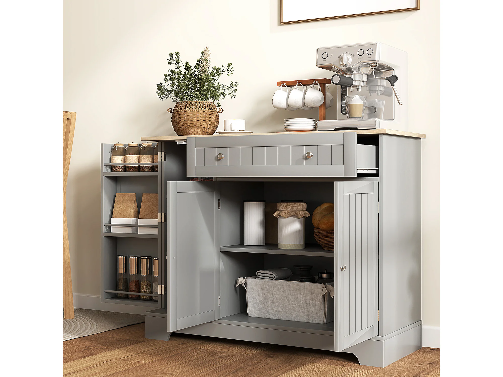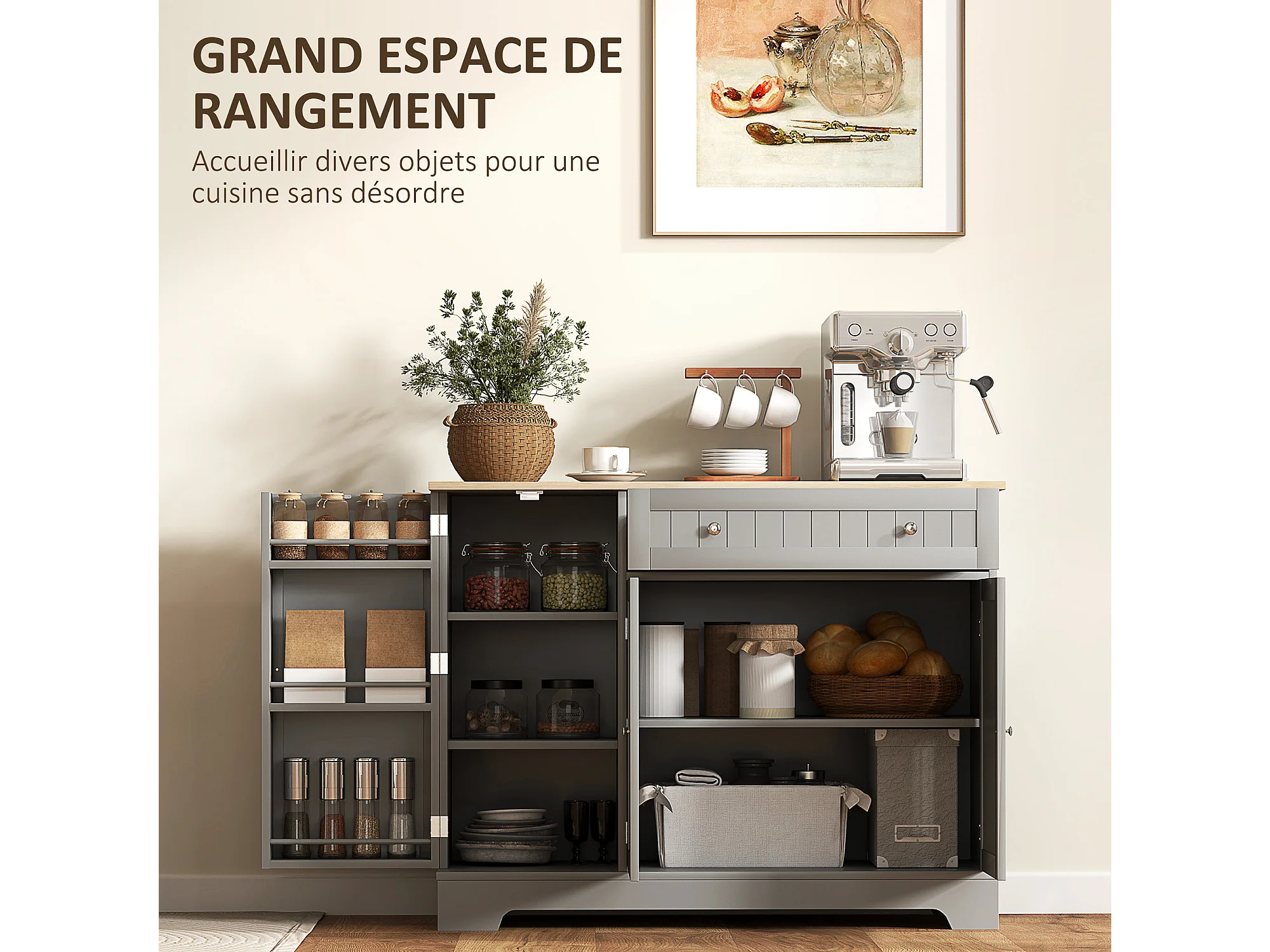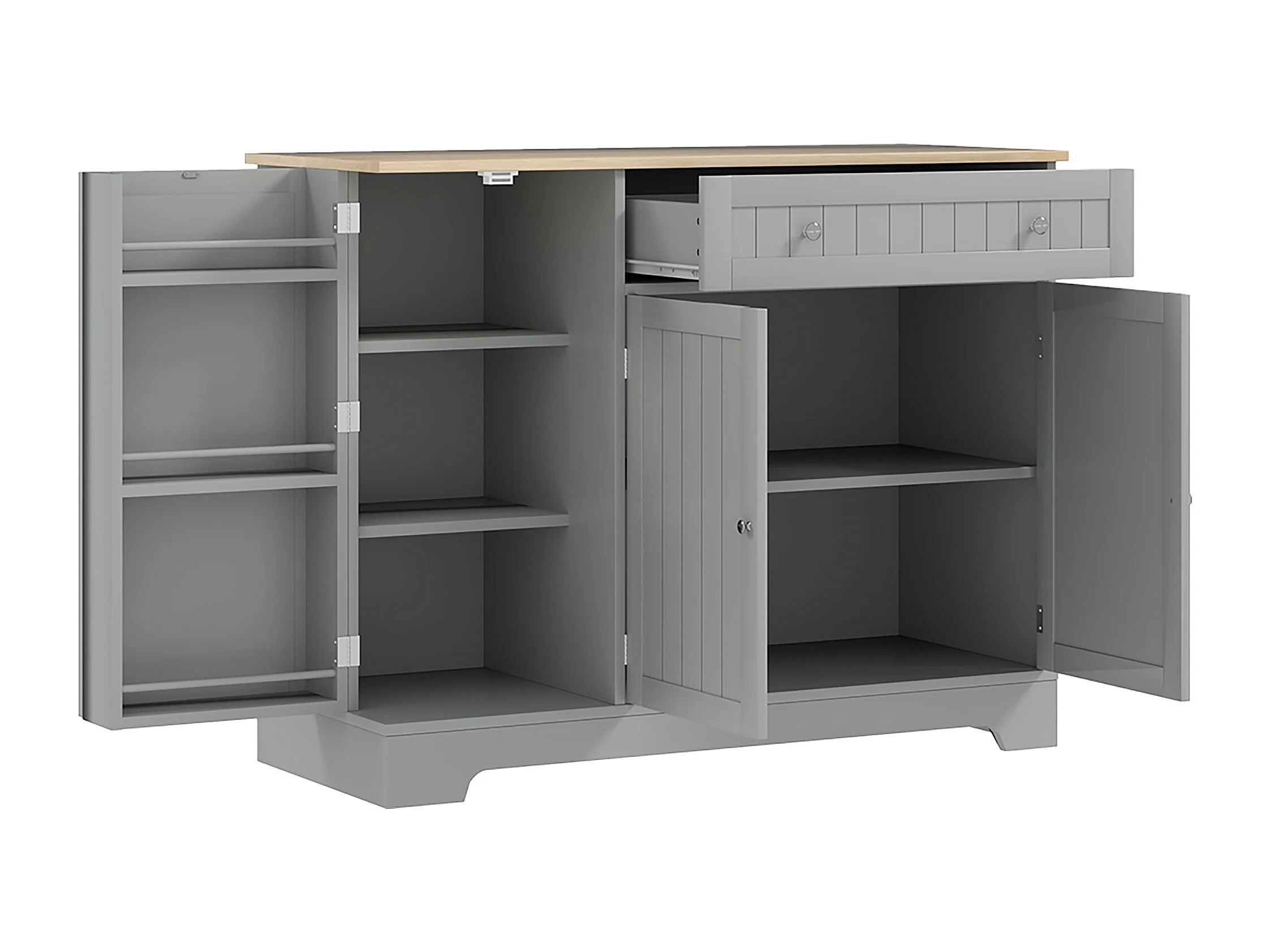 Buffet cuisine 3 portes 6 étagères tiroir coulissant dim. 105 x 40 x 83 cm effet bois gris