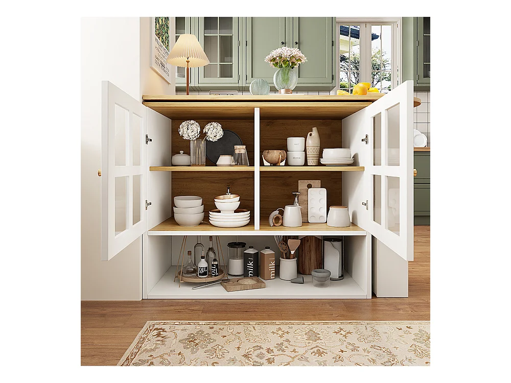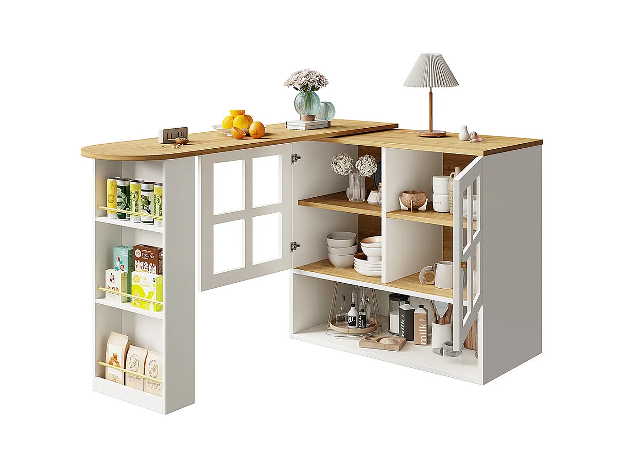 Buffet cuisine pivotant 360 blanc moderne 5 rangements étagère snacks meuble salon chambre salle à manger multifonction