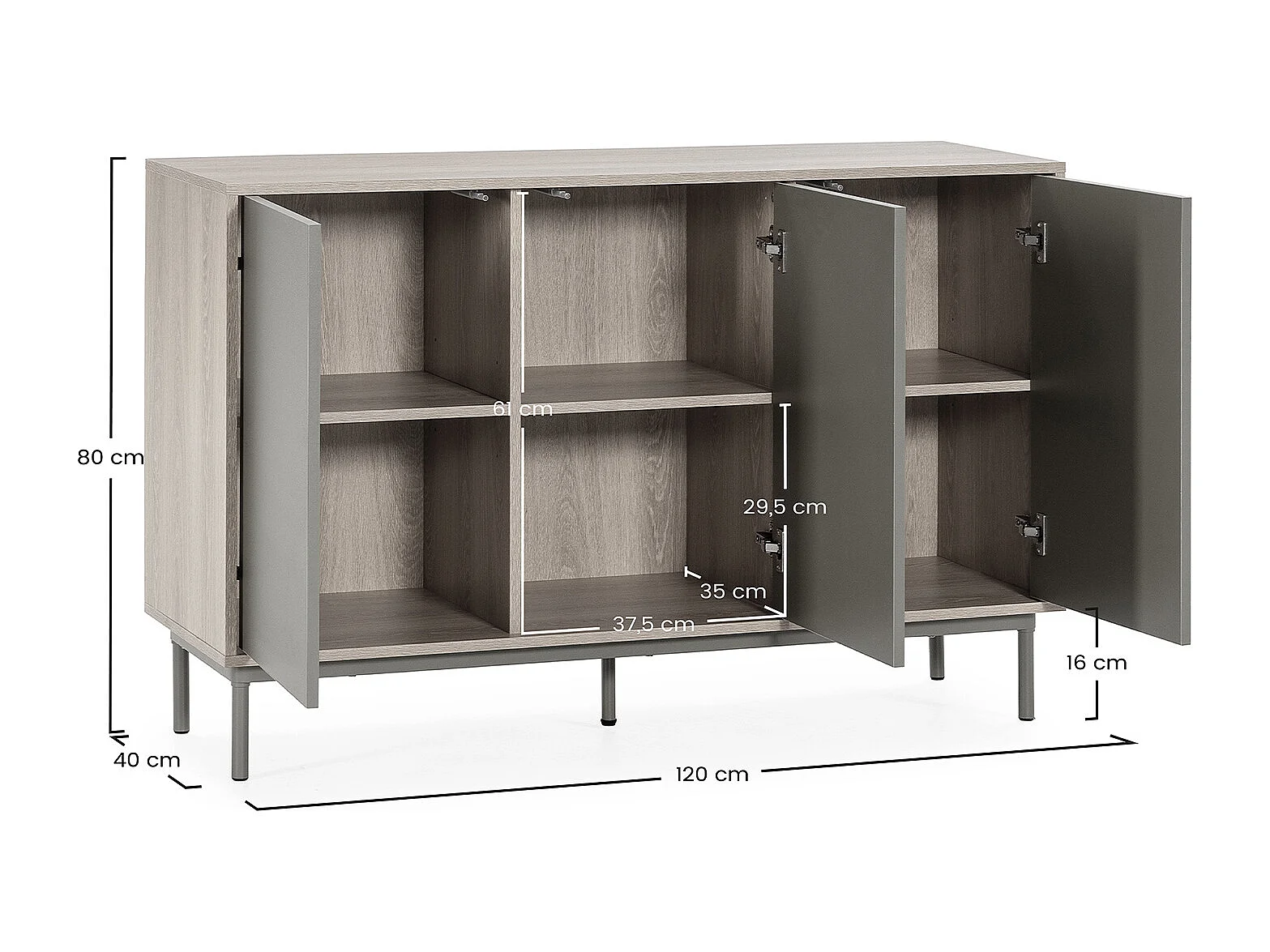 Buffet Cuzco 3 portes couleur Chêne/Vert