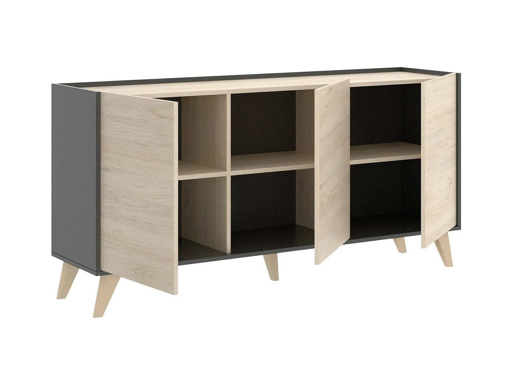 Buffet Dadop-vous, Buffet de salon, Buffet de salon moderne avec 3 portes, 155x43h75 cm, Chêne et Anthracite