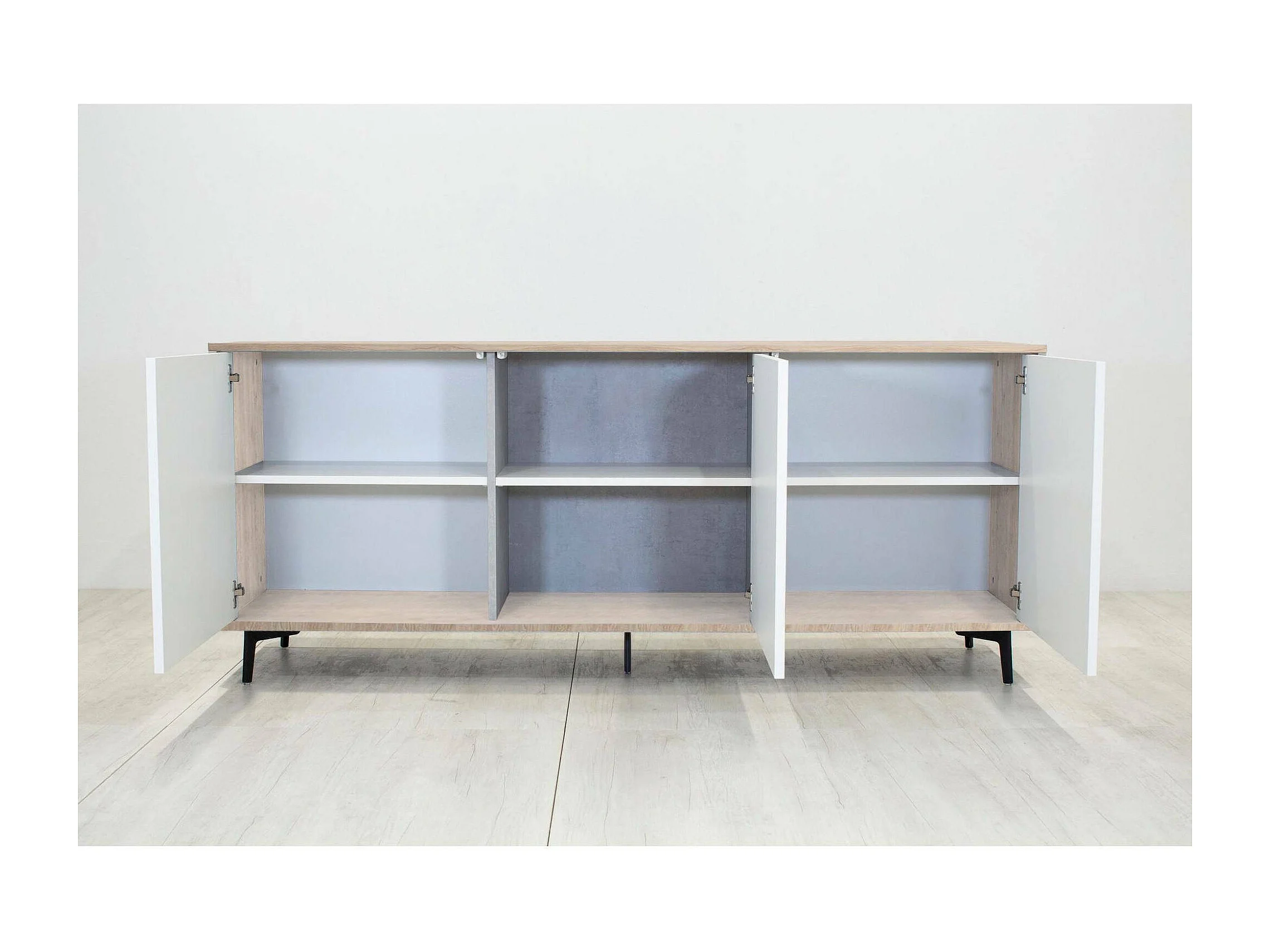 Buffet Ddemm, Buffet avec 3 portes et 1 étagère réglable, Buffet de salon élégant, Meuble TV, 100% Made in Italy, 184x45h77 cm, Blanc et Chêne