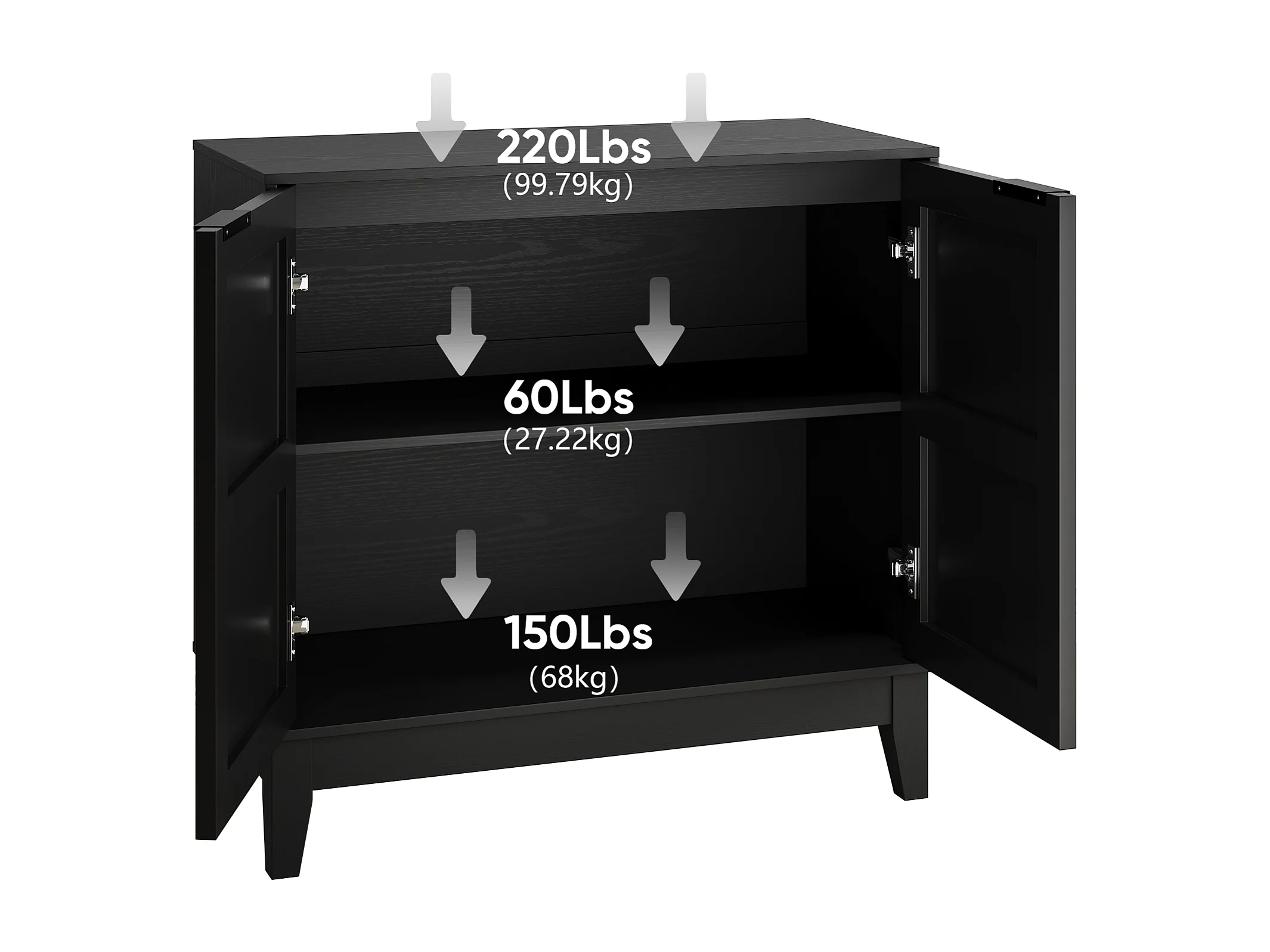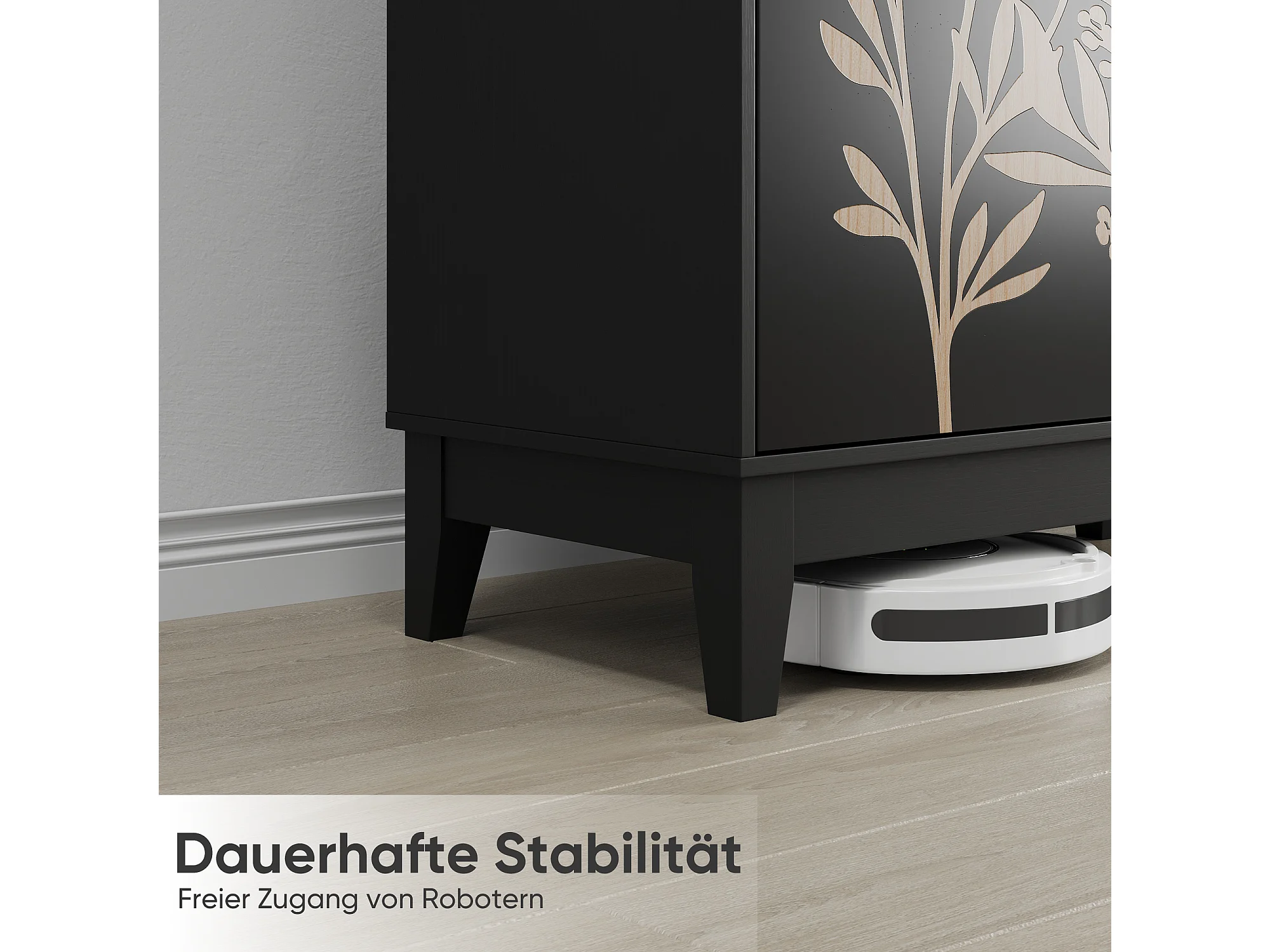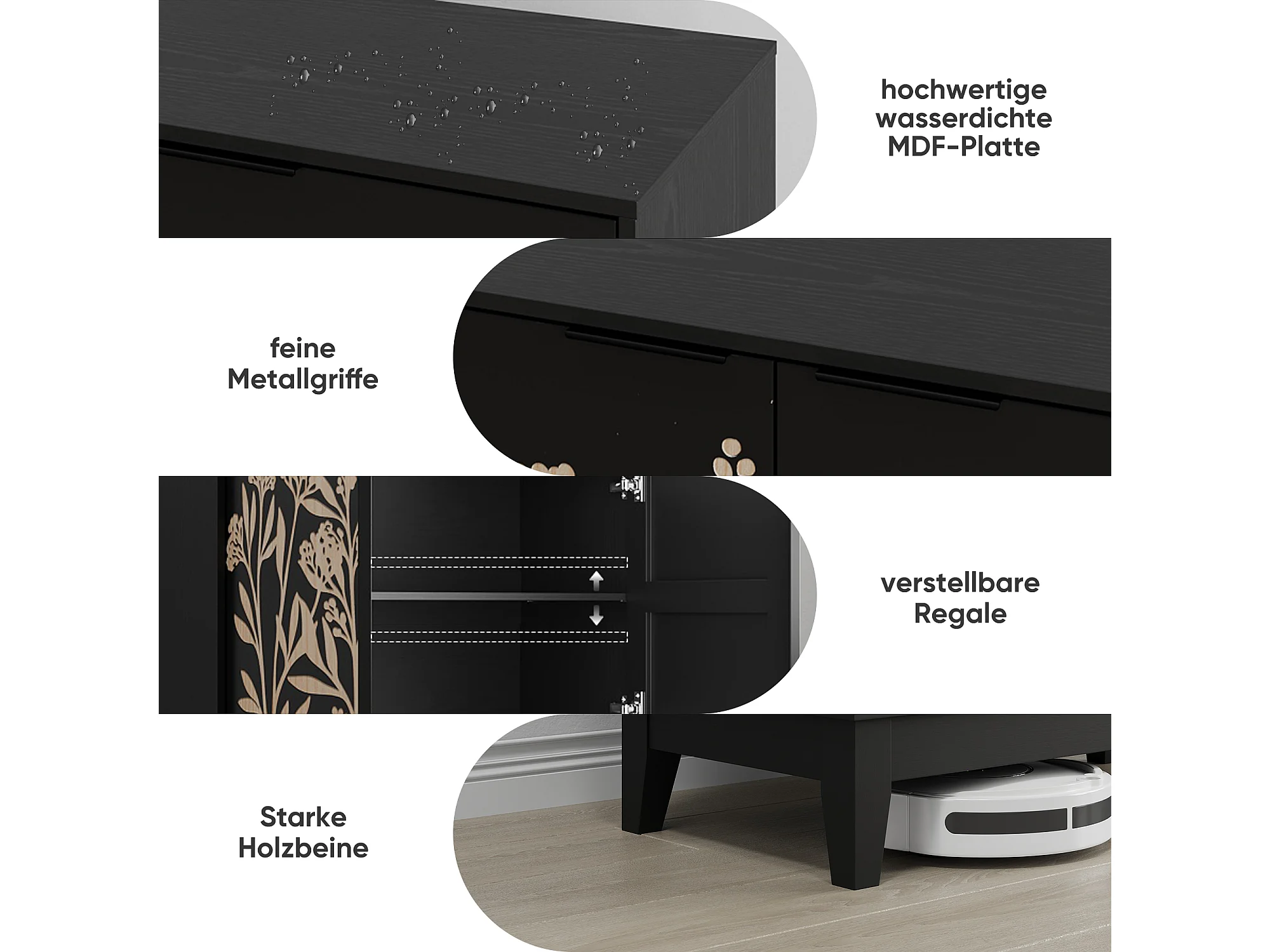 Buffet de buffet vintage avec sculpture florale, avec portes et étagères réglables, pour salon, Noir
