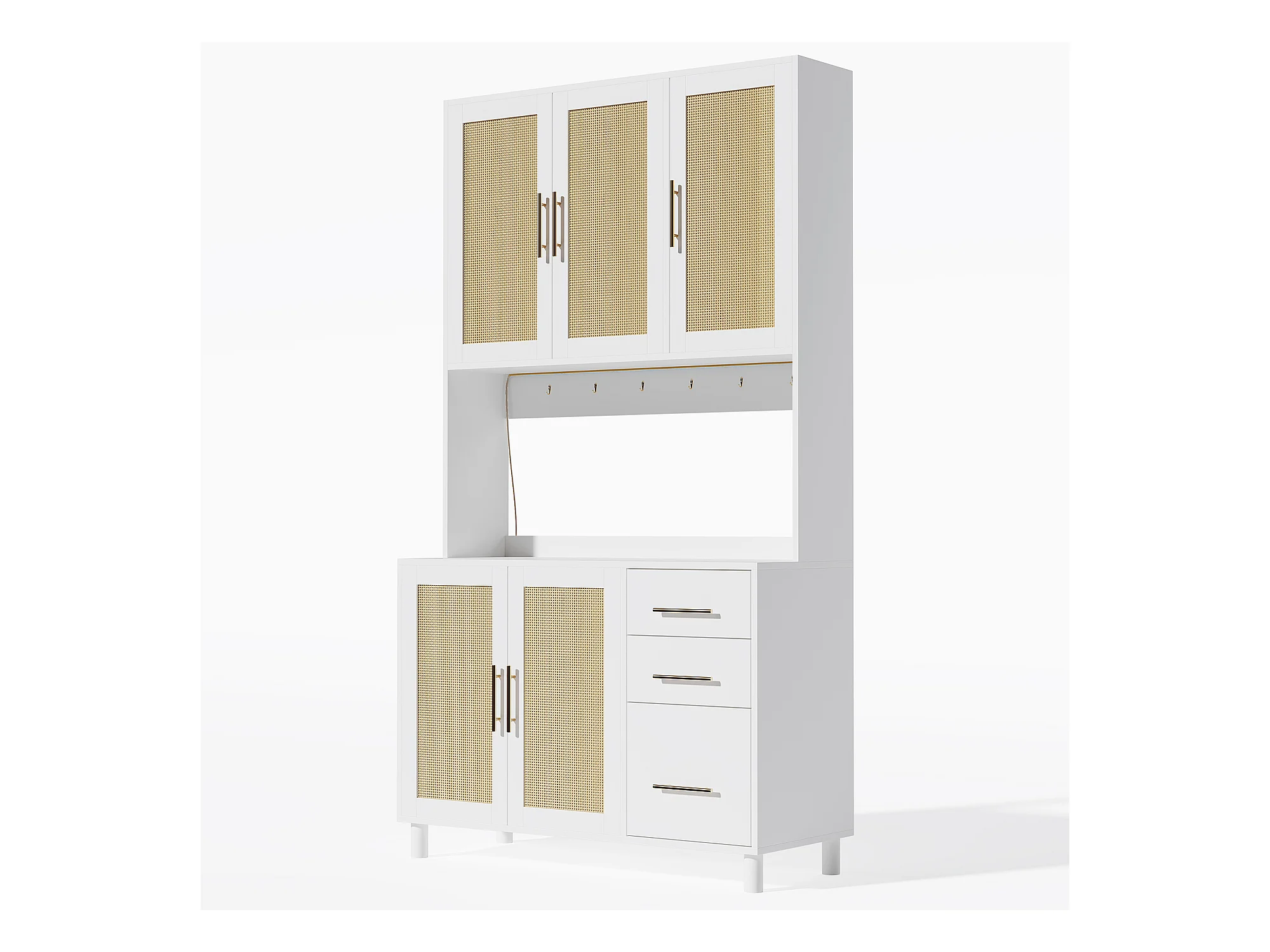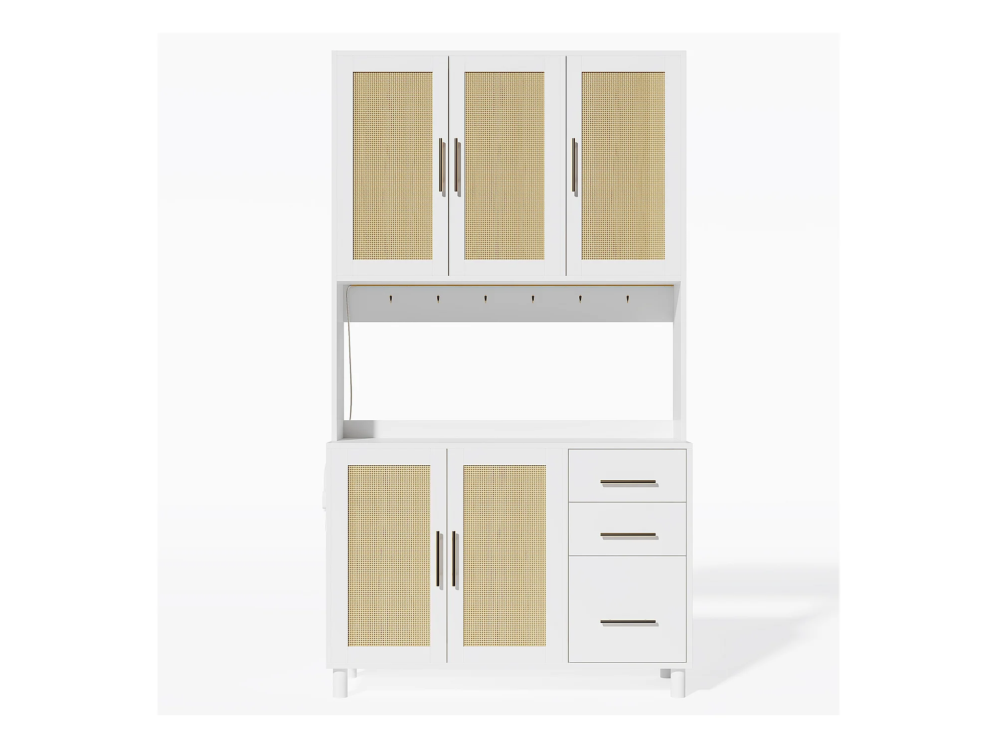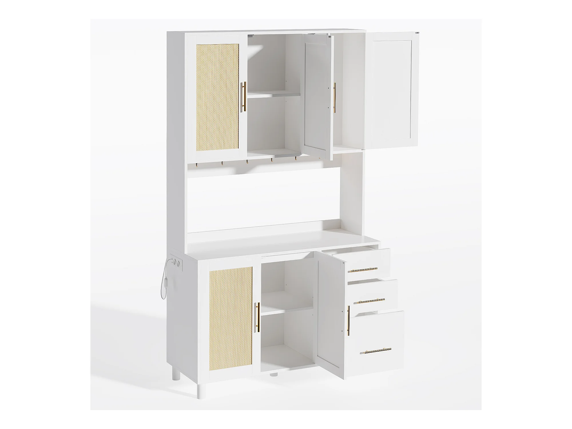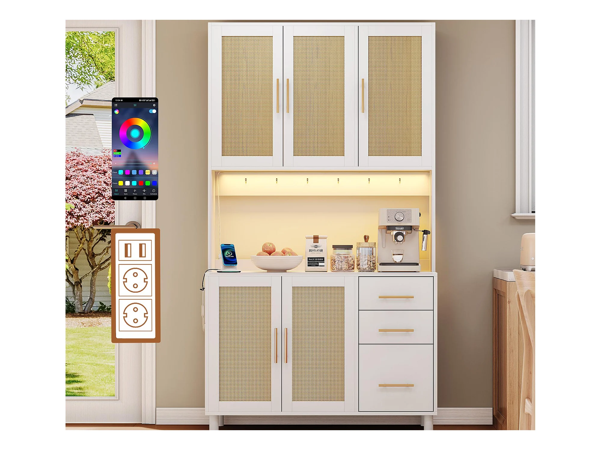 Buffet de cuisine 100x40x183cm - avec USB et prise - avec LED - 5 portes et 3 tiroirs - Blanc+Naturel