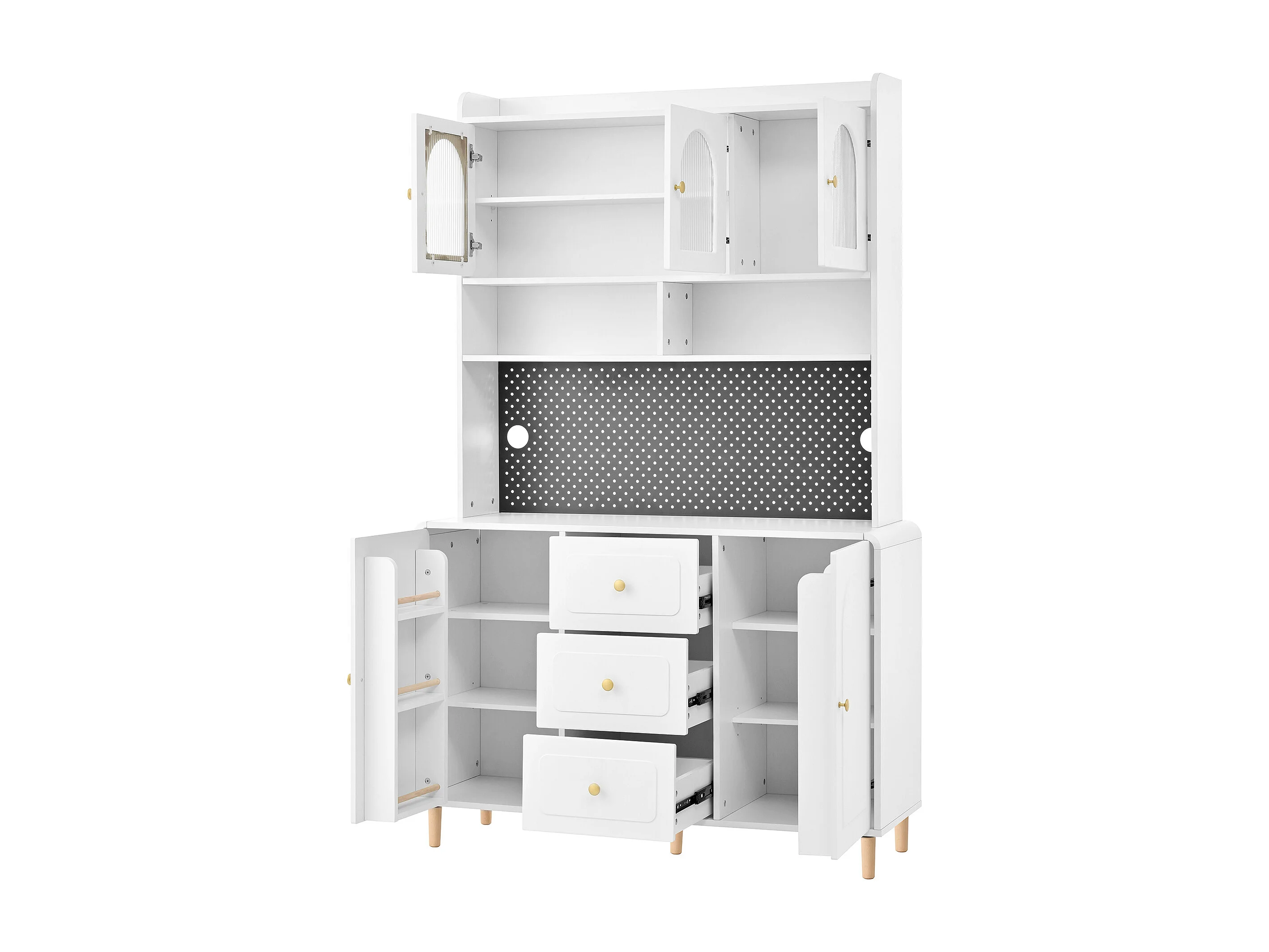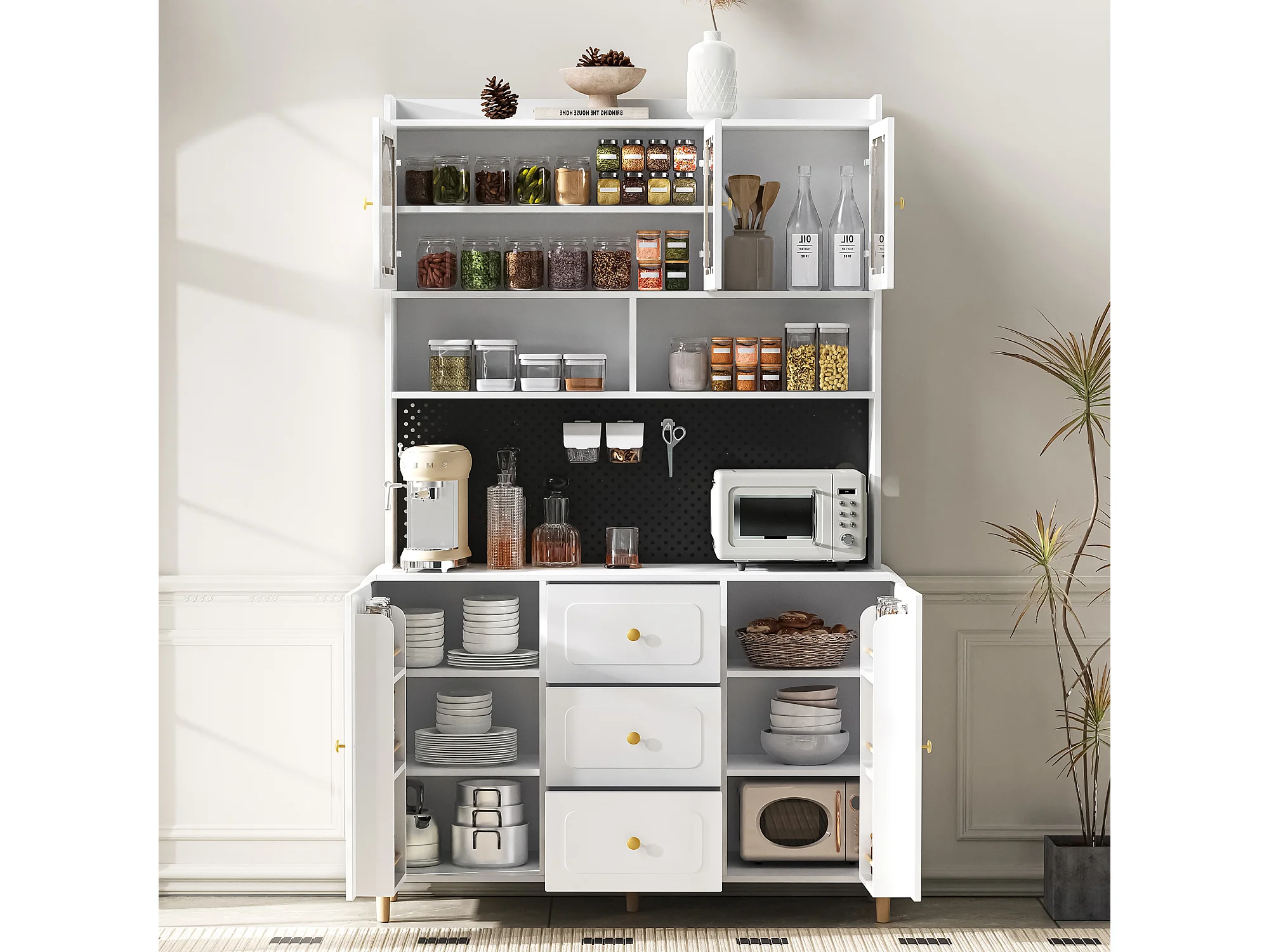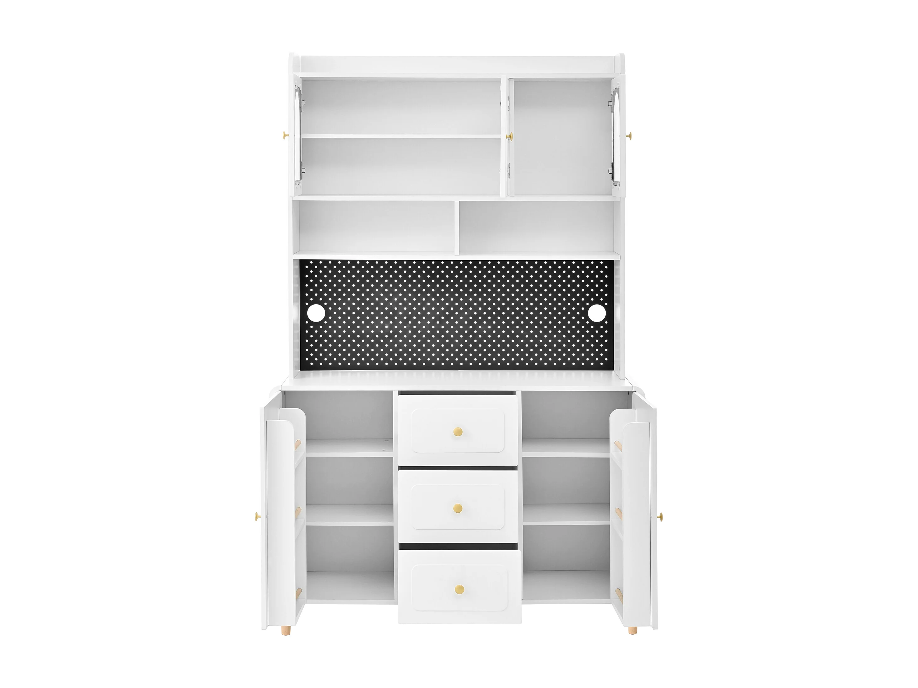 Buffet de cuisine 120x40x190 cm blanc avec étagères, 3 tiroirs et 5 portes