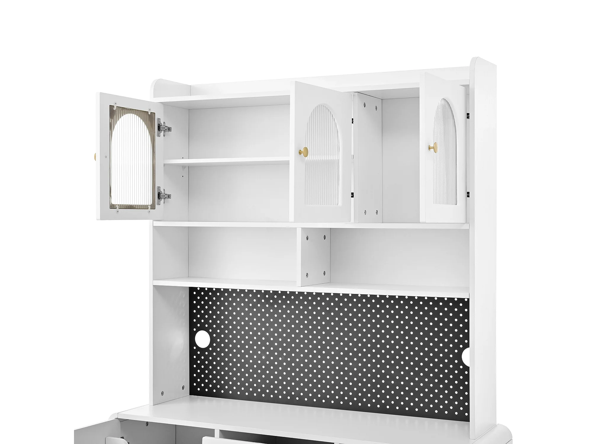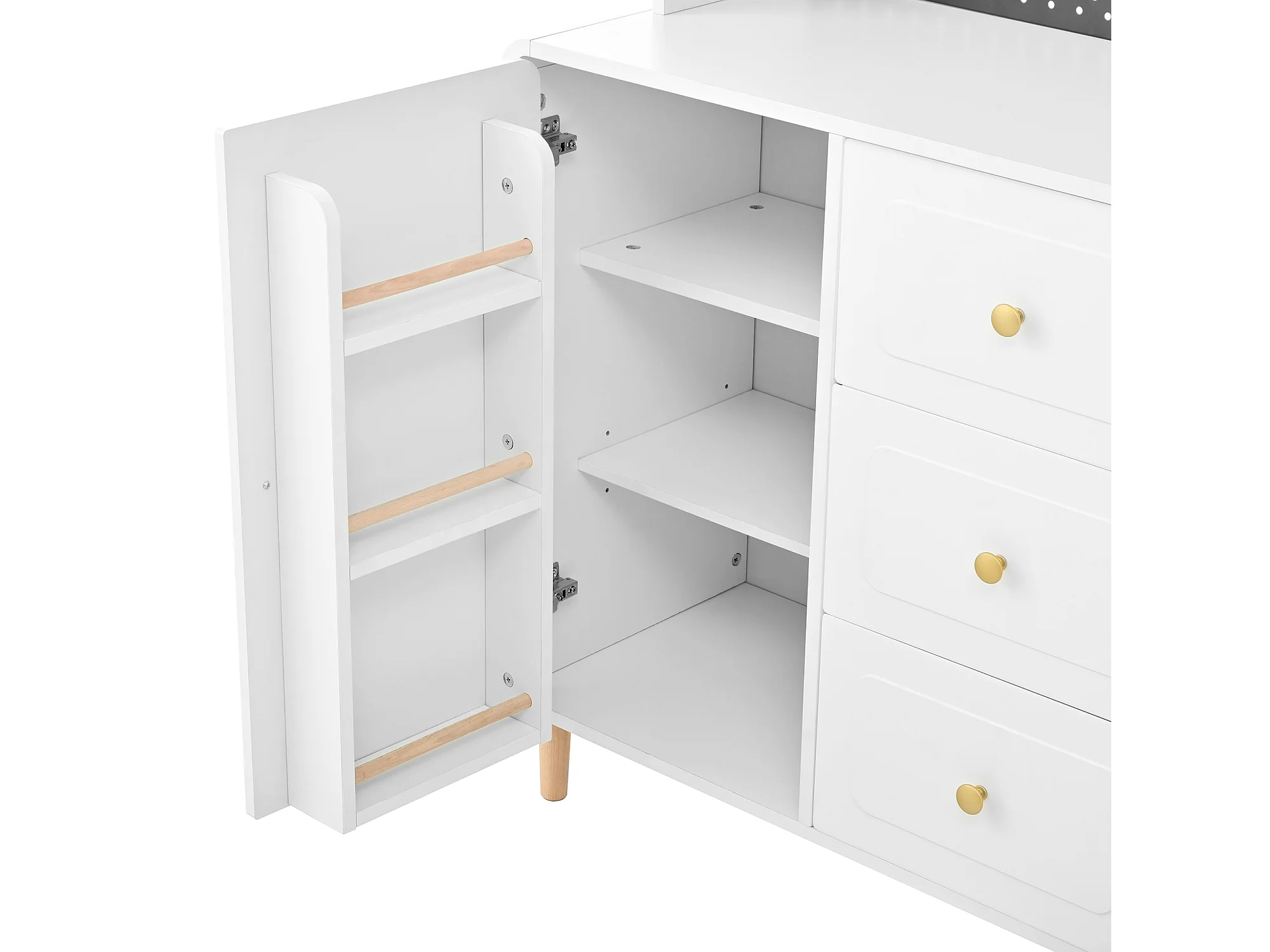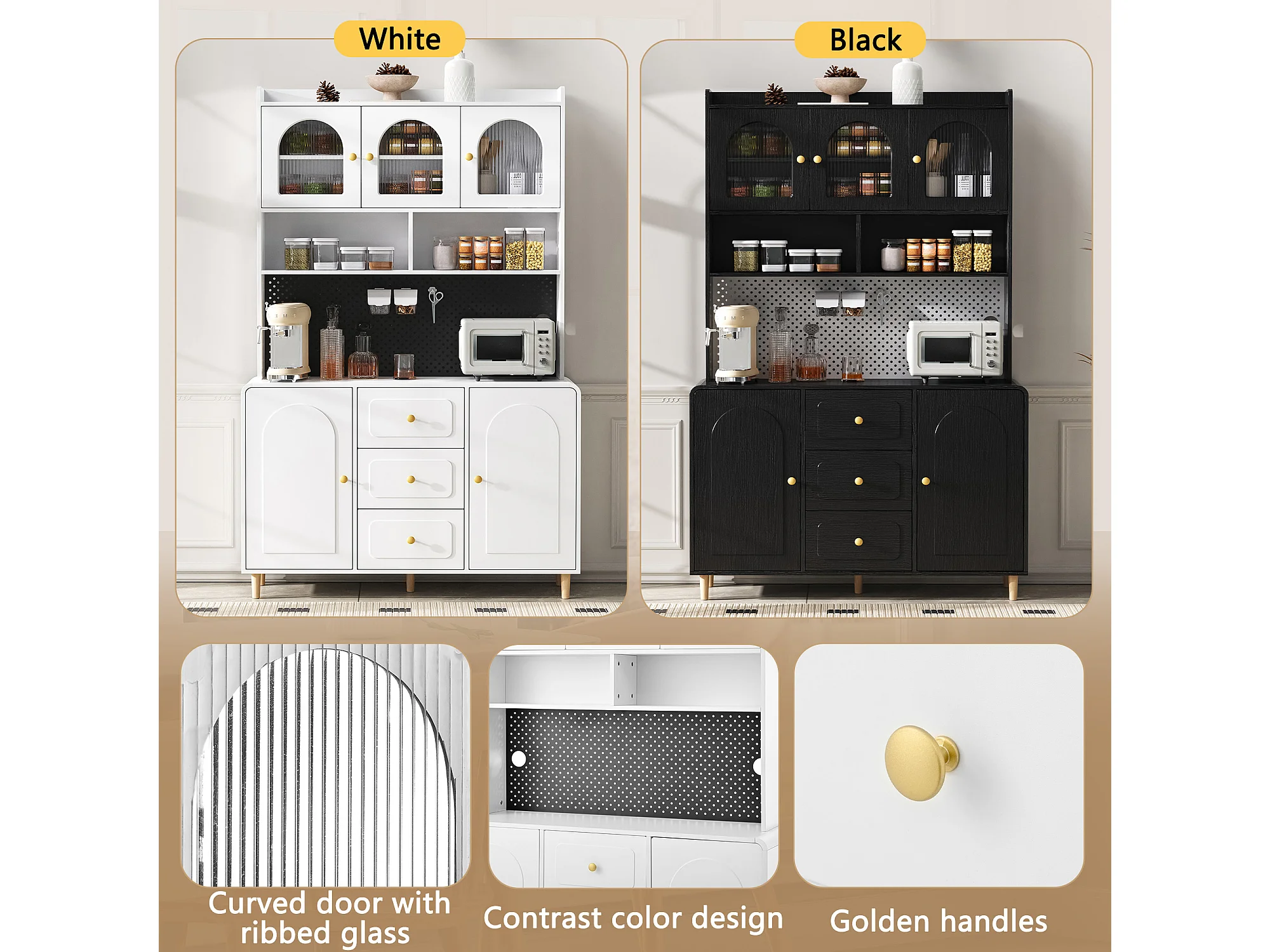Buffet de cuisine 120x40x190 cm blanc avec étagères, 3 tiroirs et 5 portes