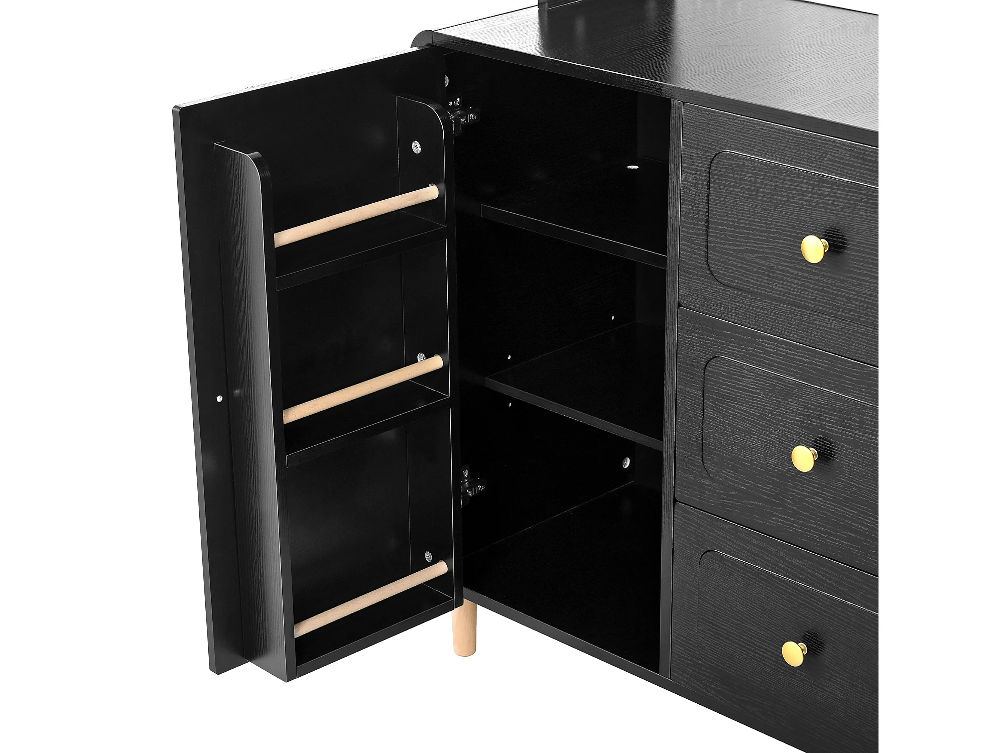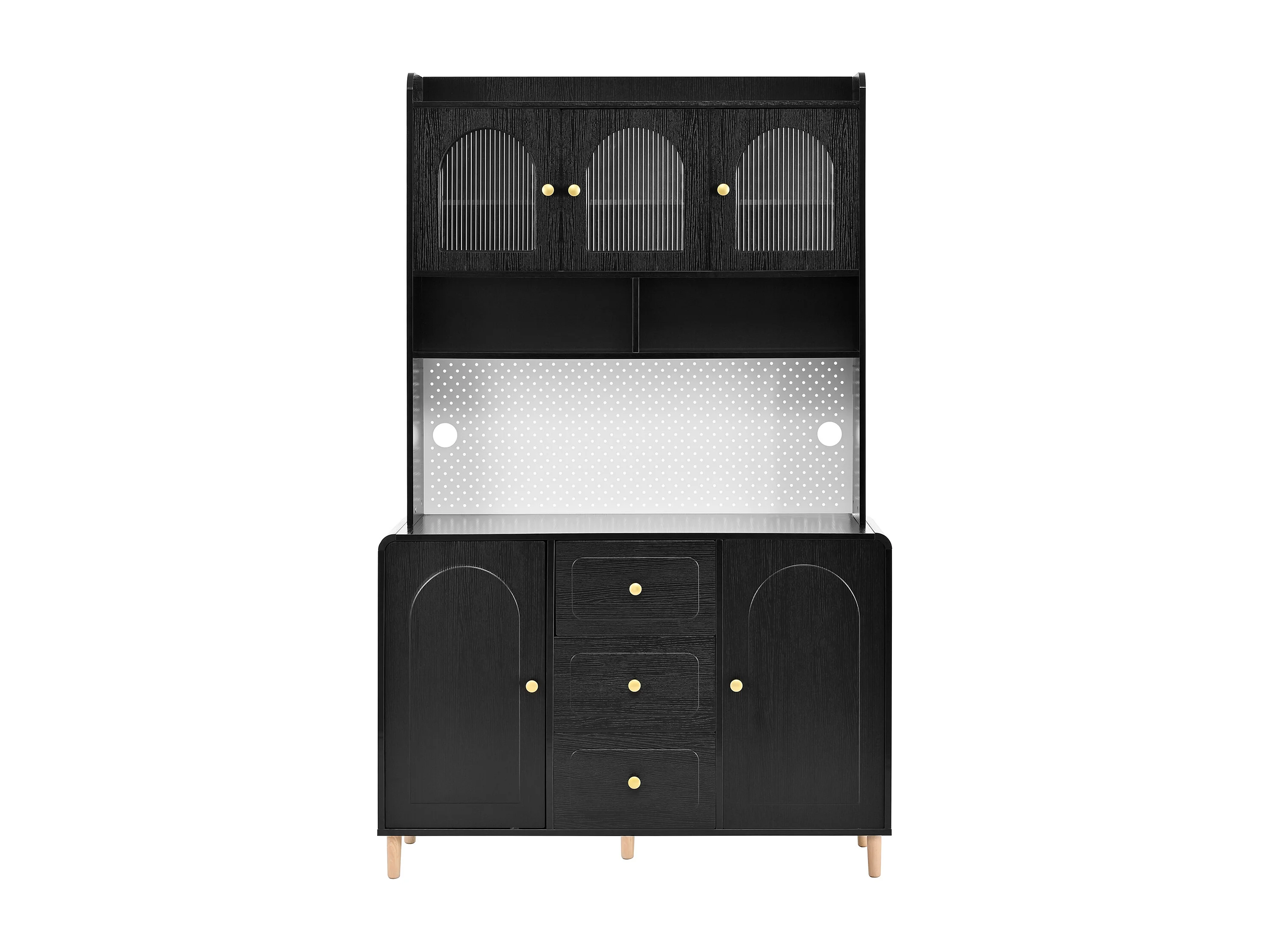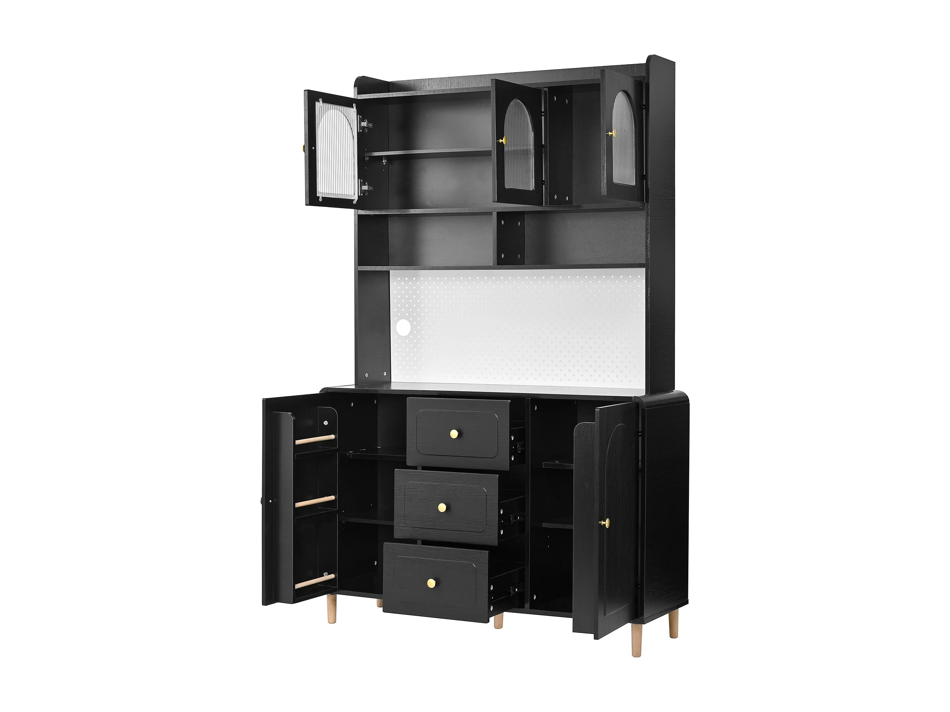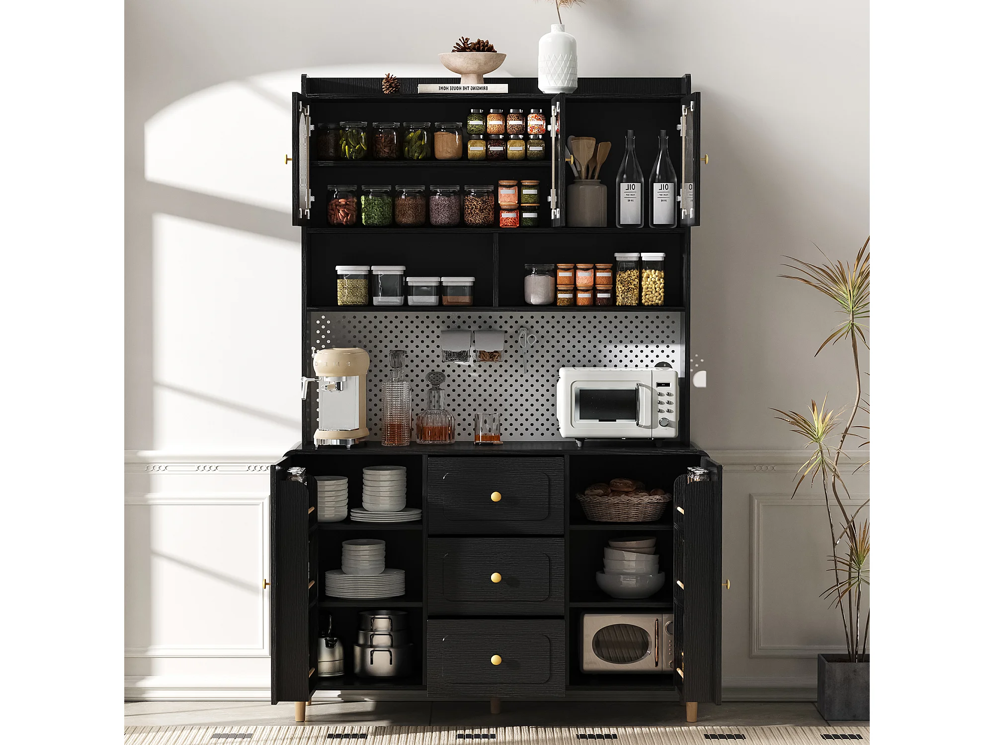 Buffet de cuisine 120x40x190 cm noir avec étagères, 3 tiroirs et 5 portes
