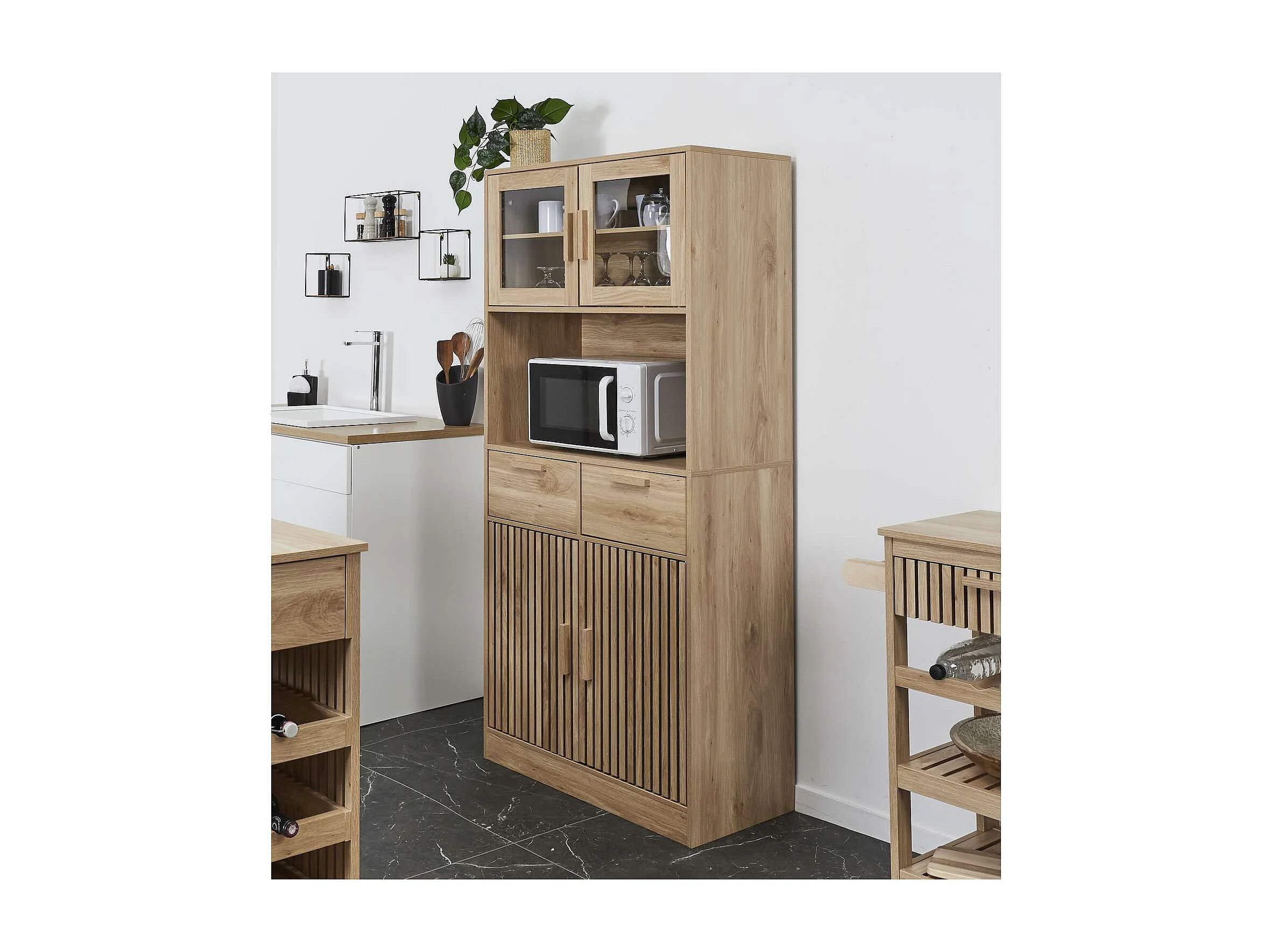 Buffet de cuisine 4 portes 2 tiroirs Saulk en bois - Marron