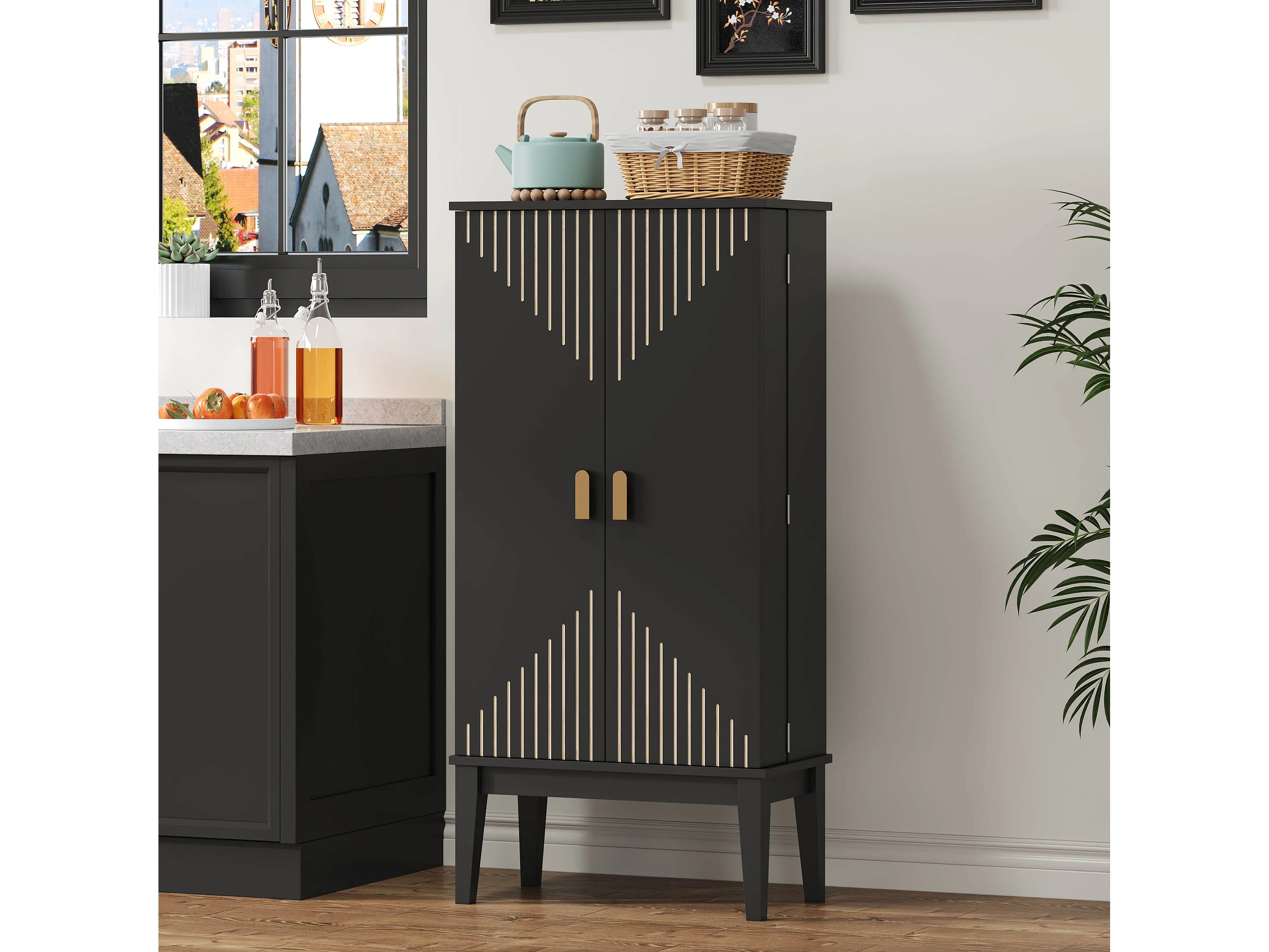 Buffet de cuisine 59x30x120cm - 2 portes de rangement avec étagères - style rétro - Noir