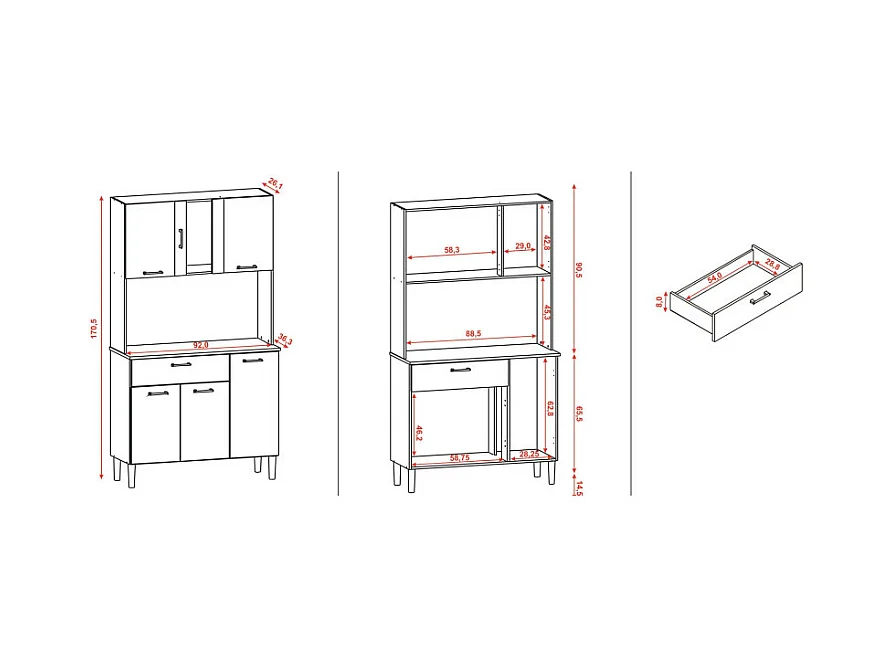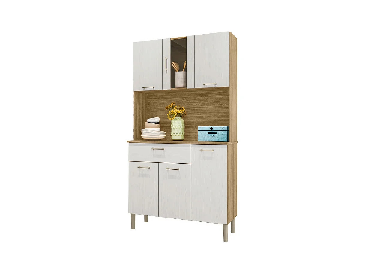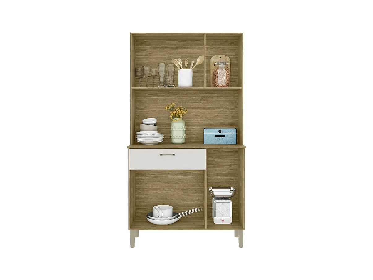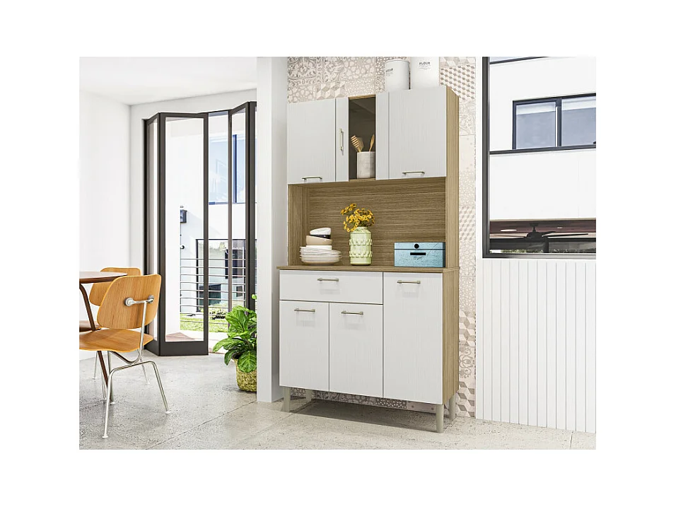 Buffet de Cuisine 6 Portes 1 Tiroir Chêne et Blanc 5 Niches L92 H170.5 P36.3 cm