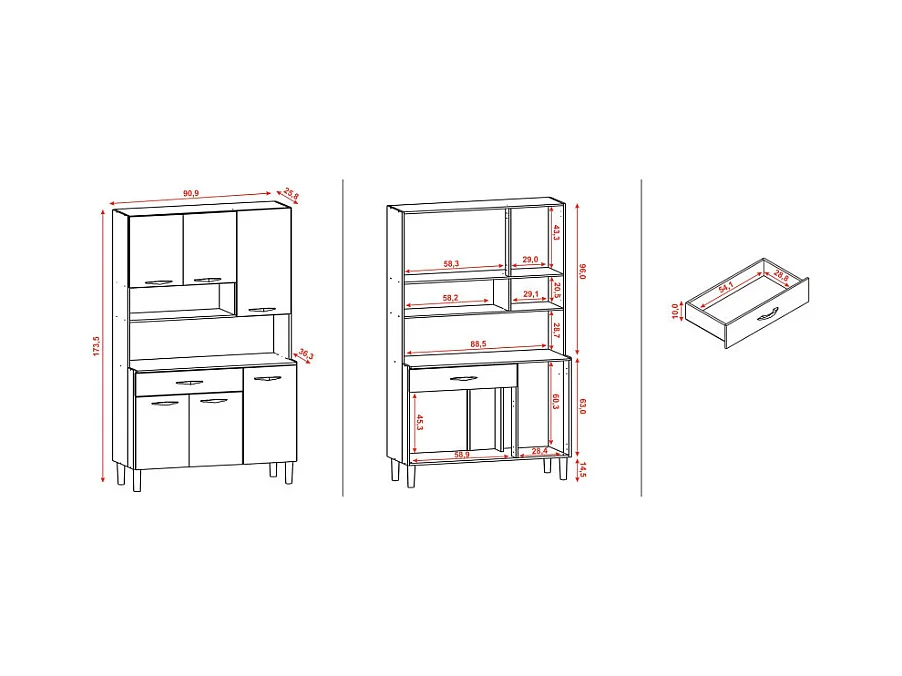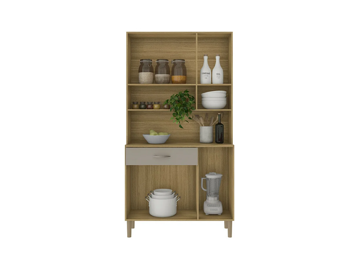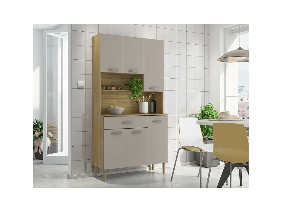 Buffet de Cuisine 6 Portes 1 Tiroir Chêne Taupe 7 Niches L 90.9 H173.5 P 36.3 cm