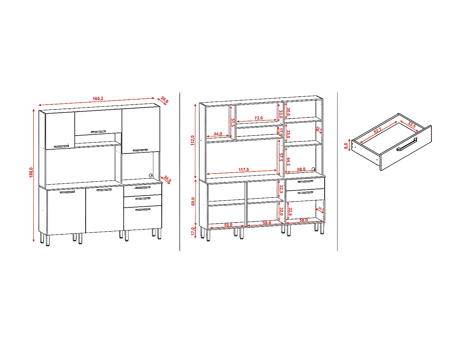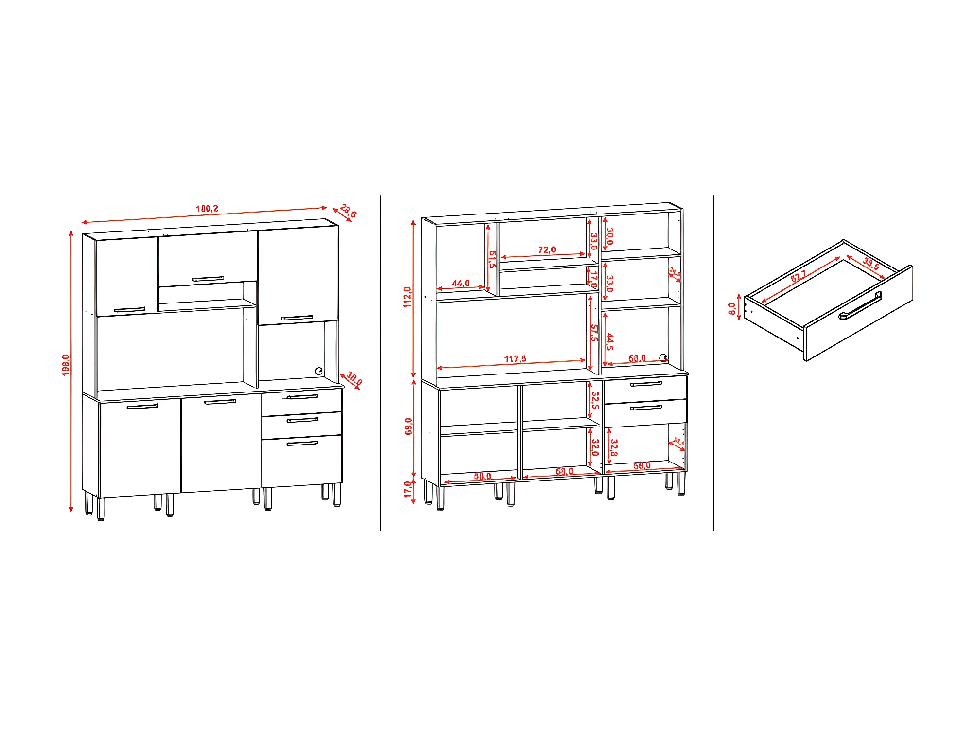 Buffet de Cuisine 6 Portes 2 Tiroirs Chêne et Vanille L 180.2 H 198 P 38.8 cm