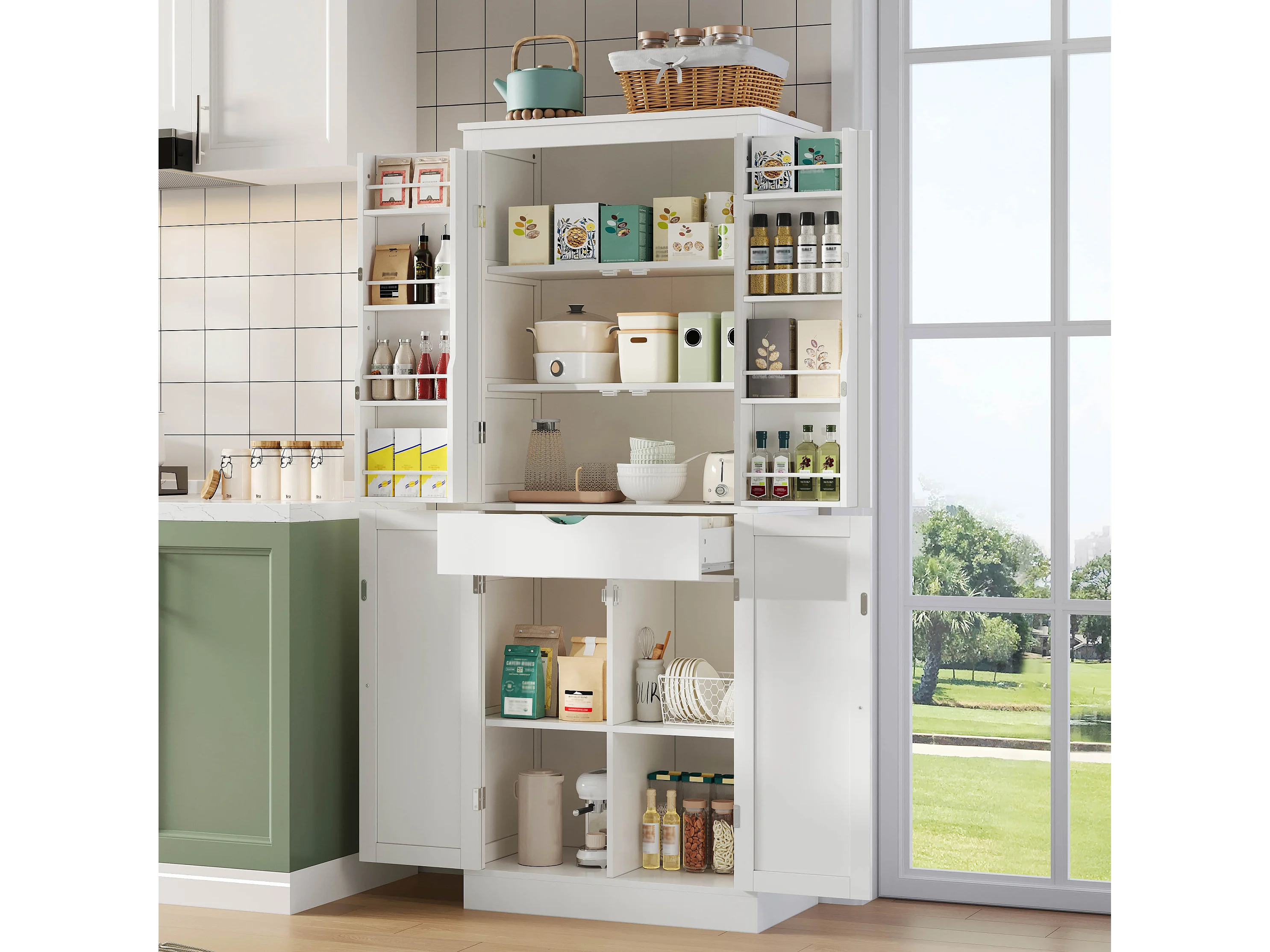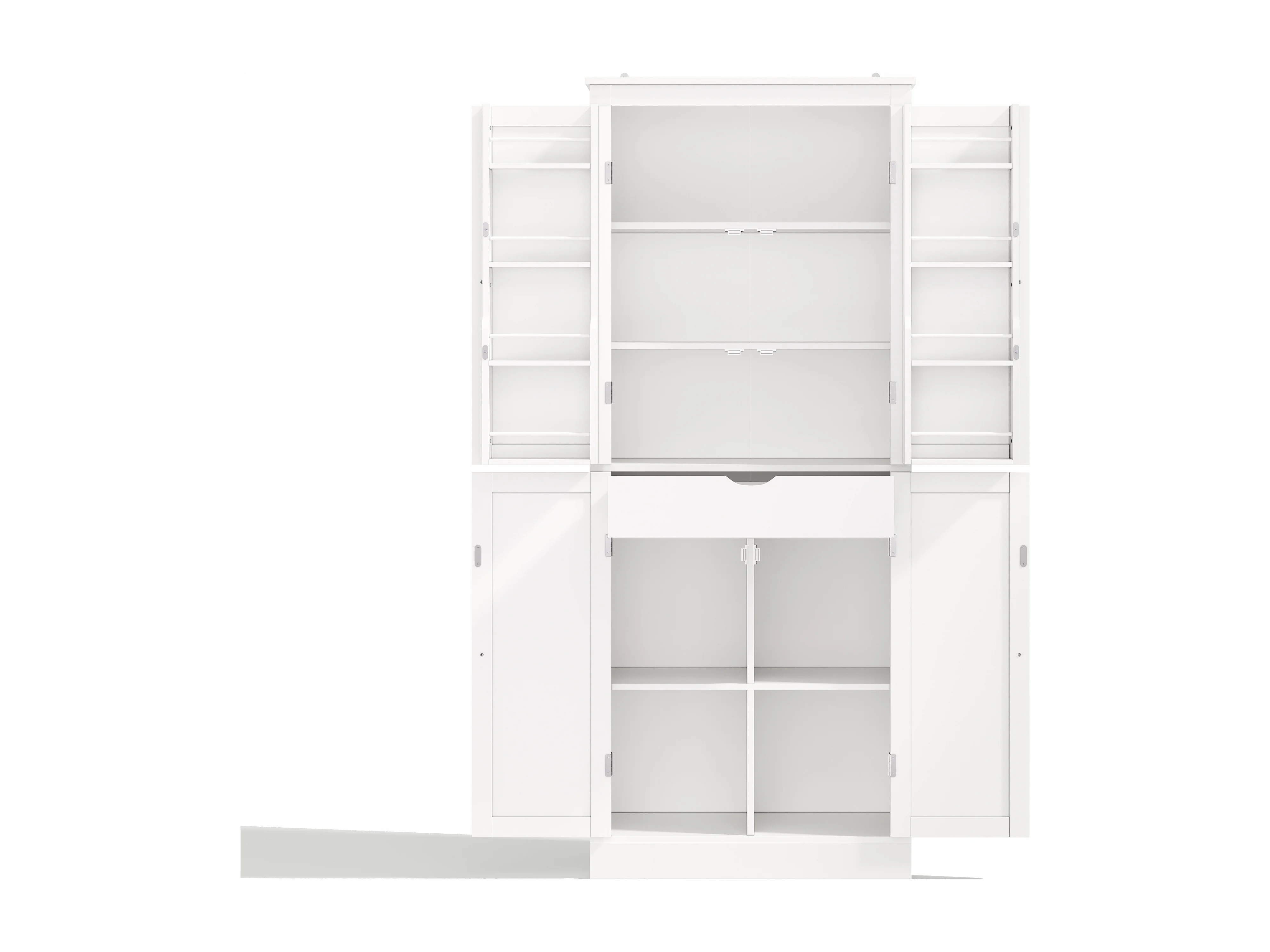 Buffet de cuisine 75x40x180cm - 2 portes de rangement avec étagères - 1 tiroir et compartiment de rangement - Blanc