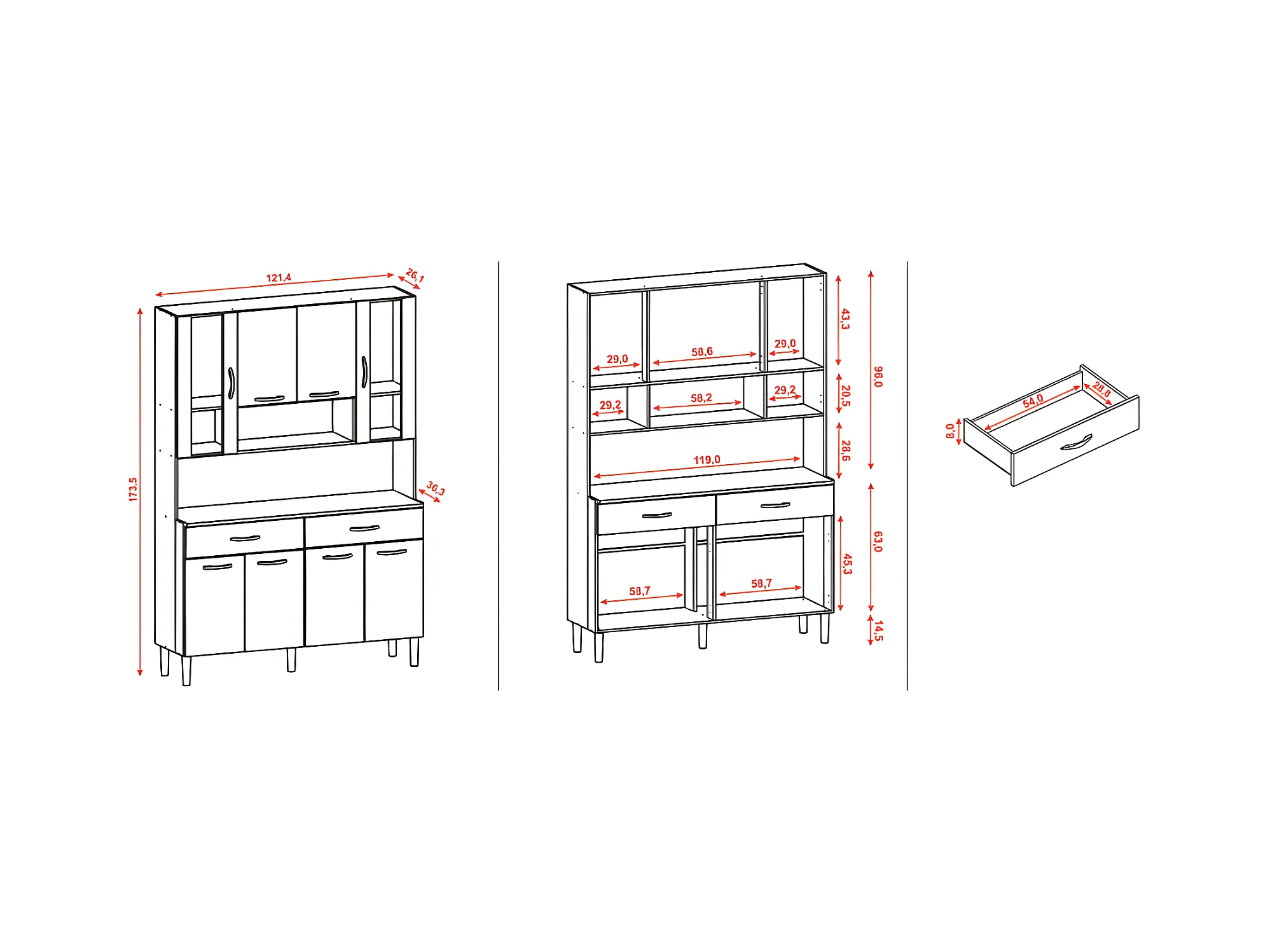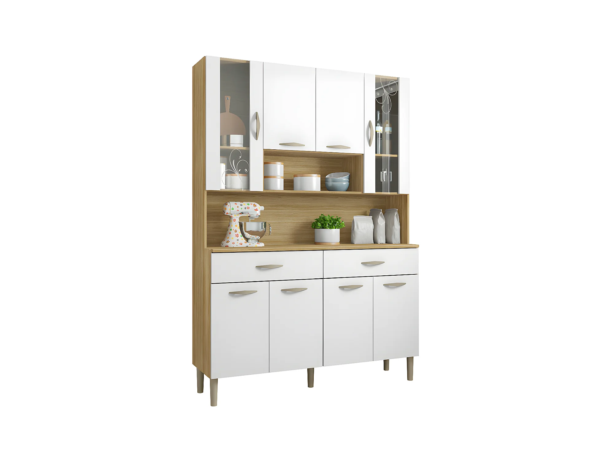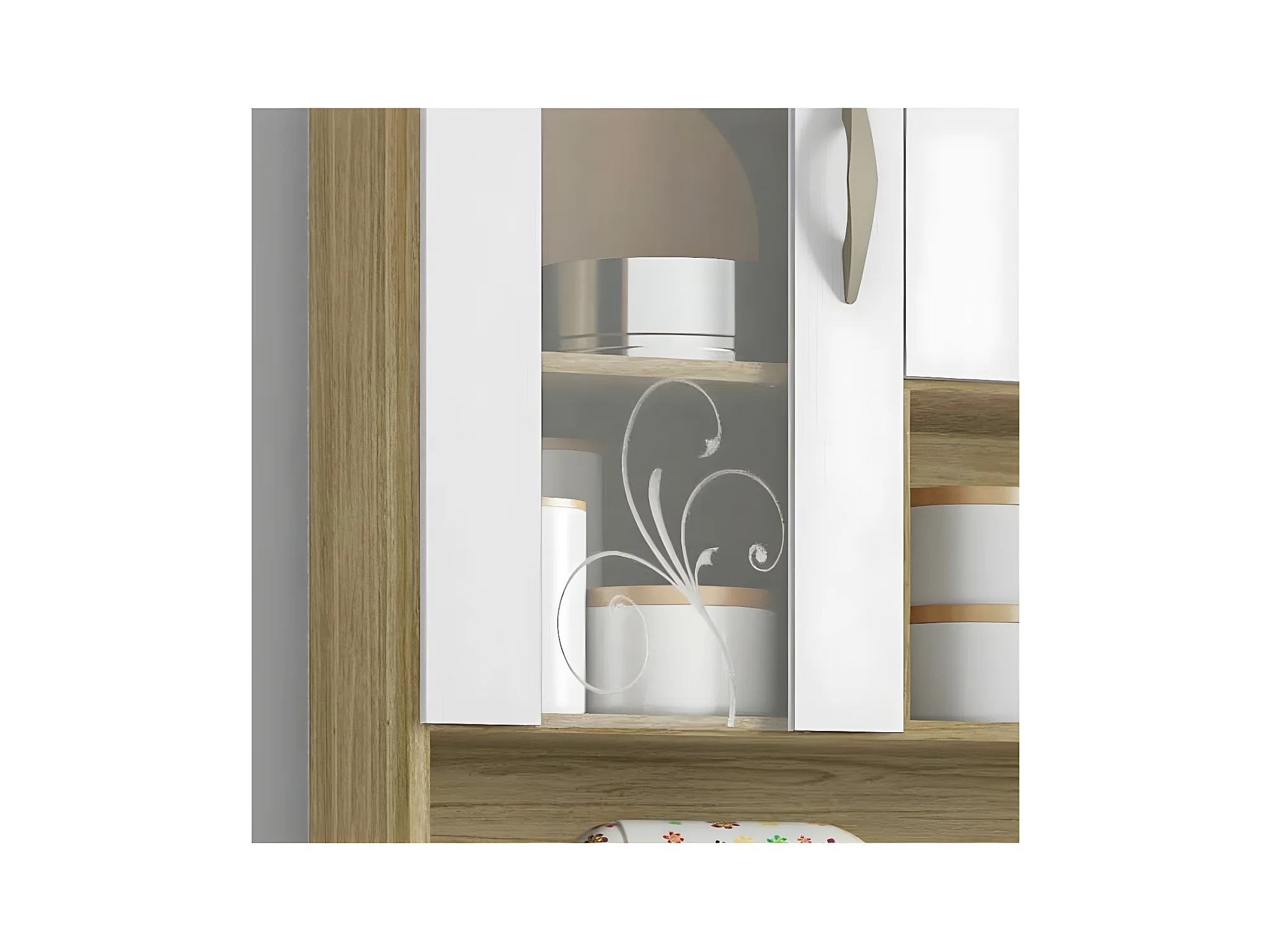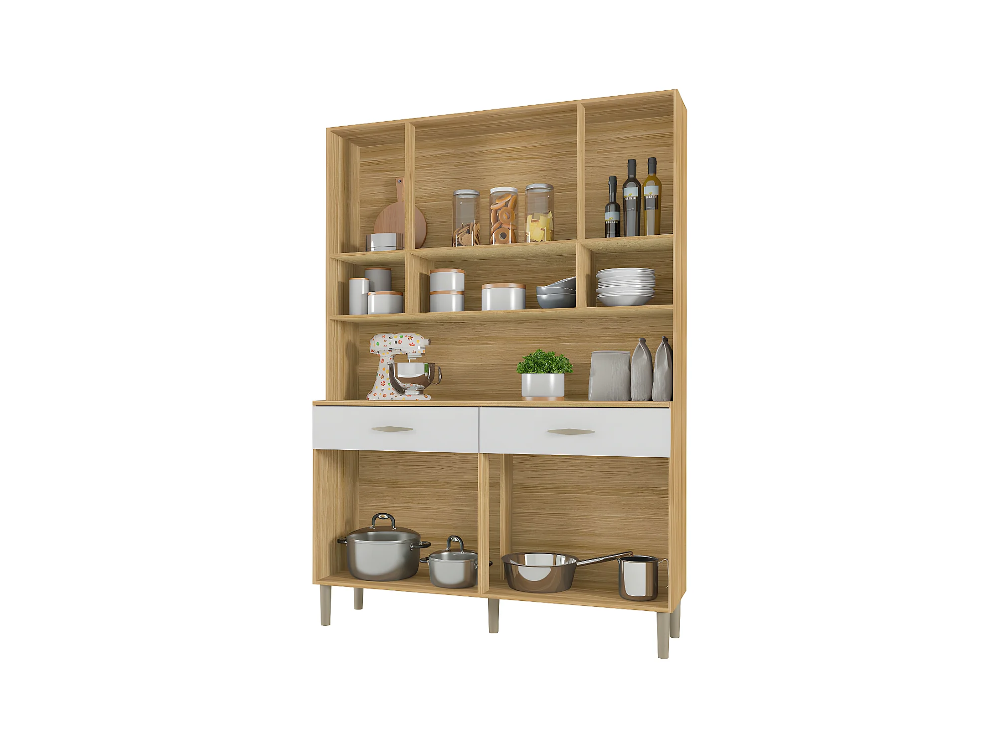 Buffet de Cuisine 8 Portes 2 Tiroirs Chêne et Blanc L 121.4 H 173.5 P 36.3 cm