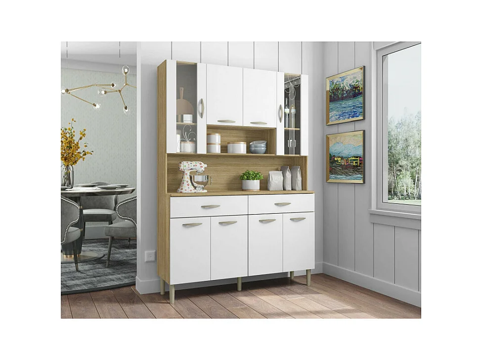 Buffet de Cuisine 8 Portes 2 Tiroirs Chêne et Blanc L 121.4 H 173.5 P 36.3 cm