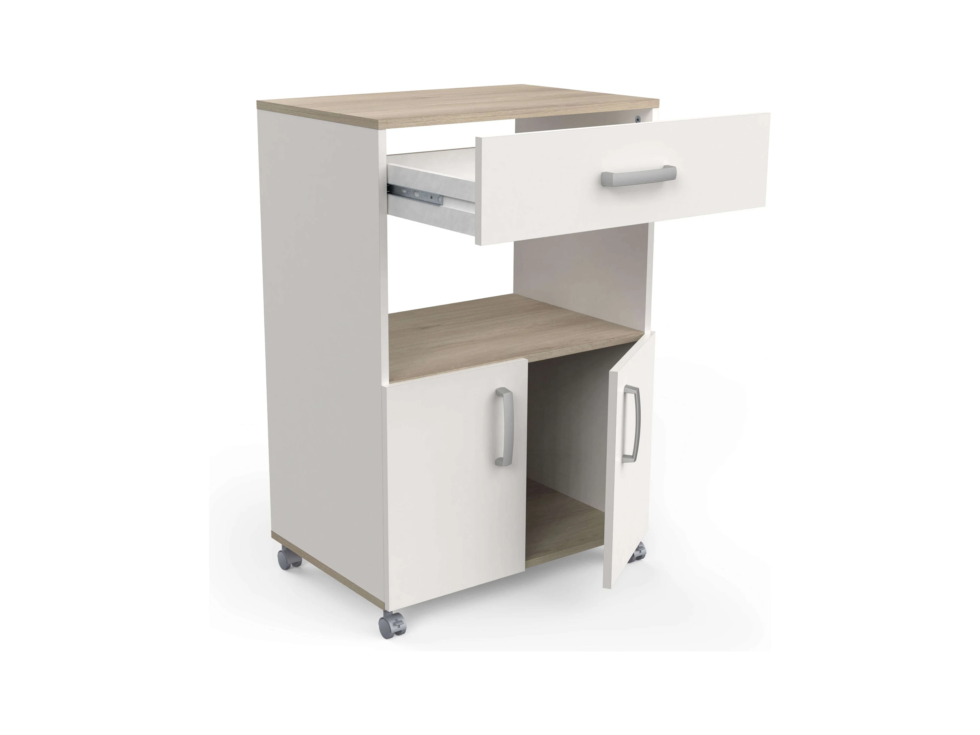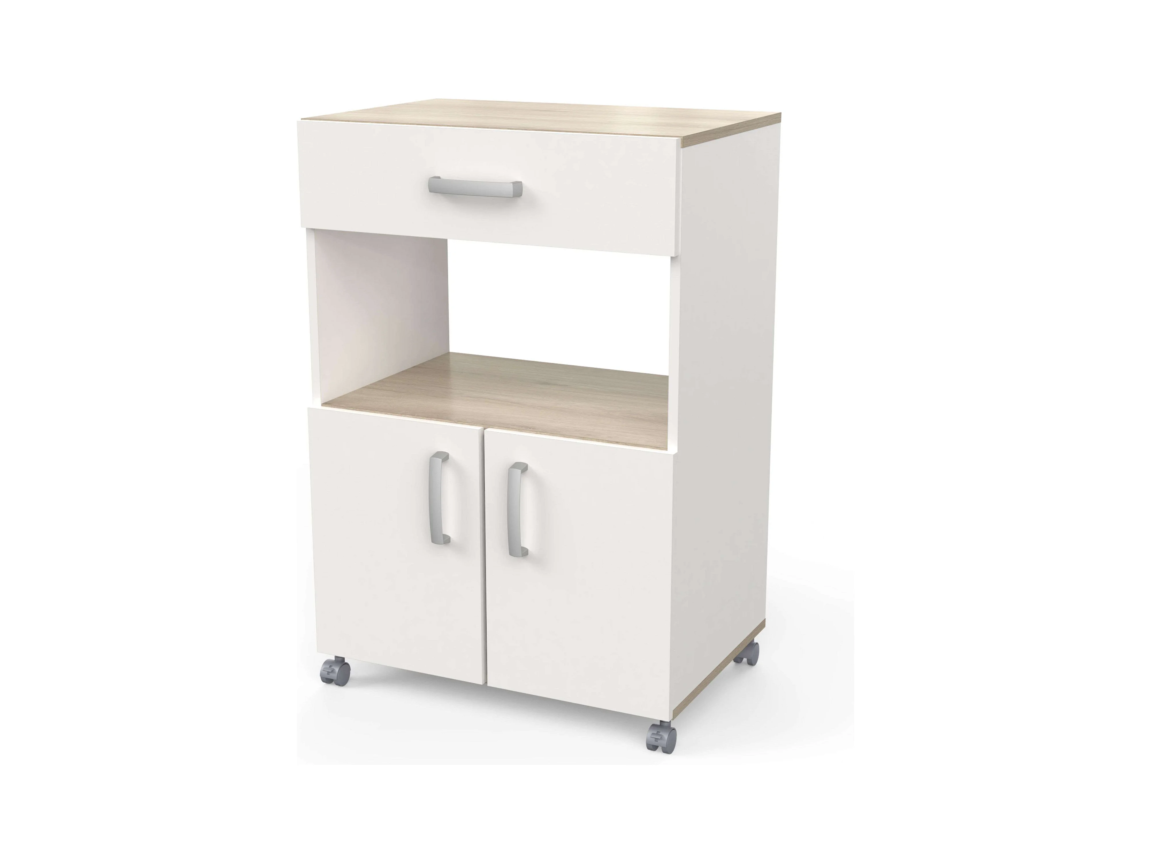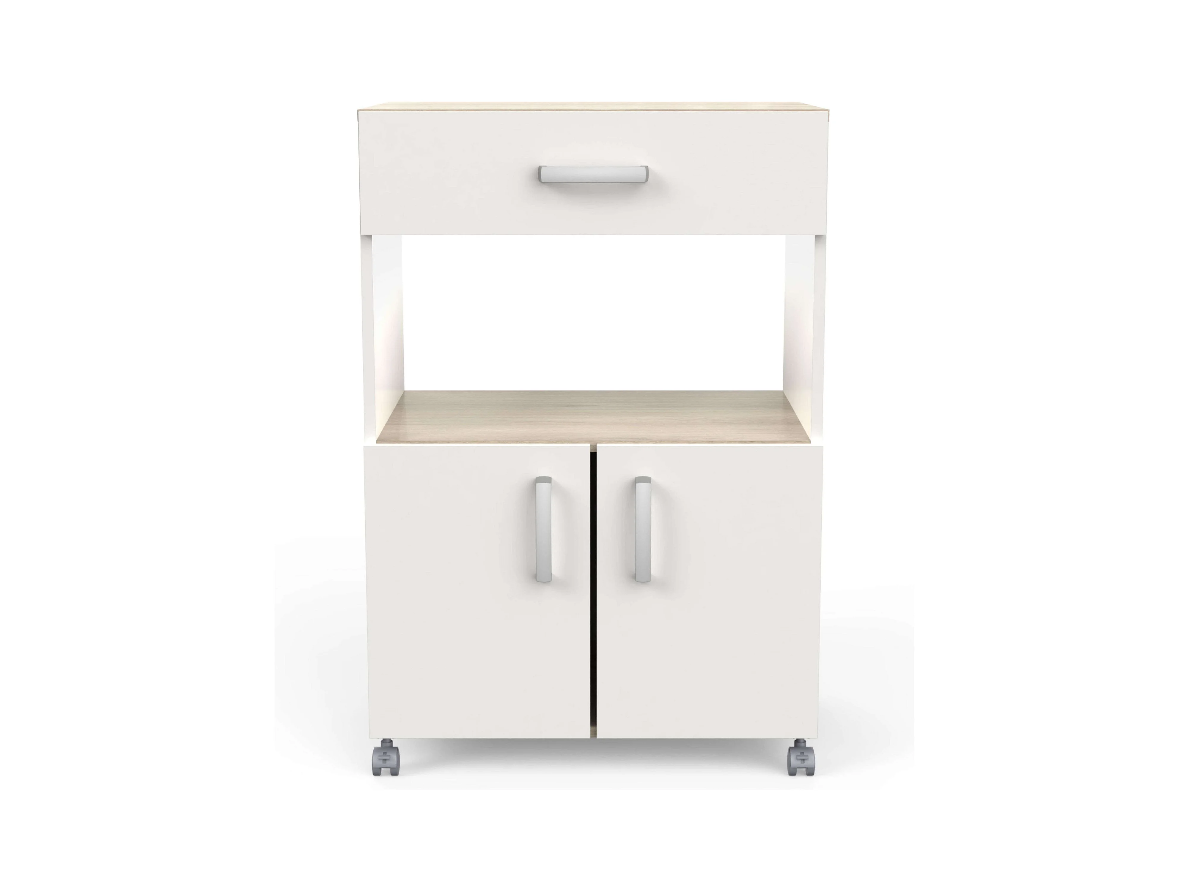 Meuble Desserte de cuisine roulante en Bois Blanc et Naturel H 87 cm