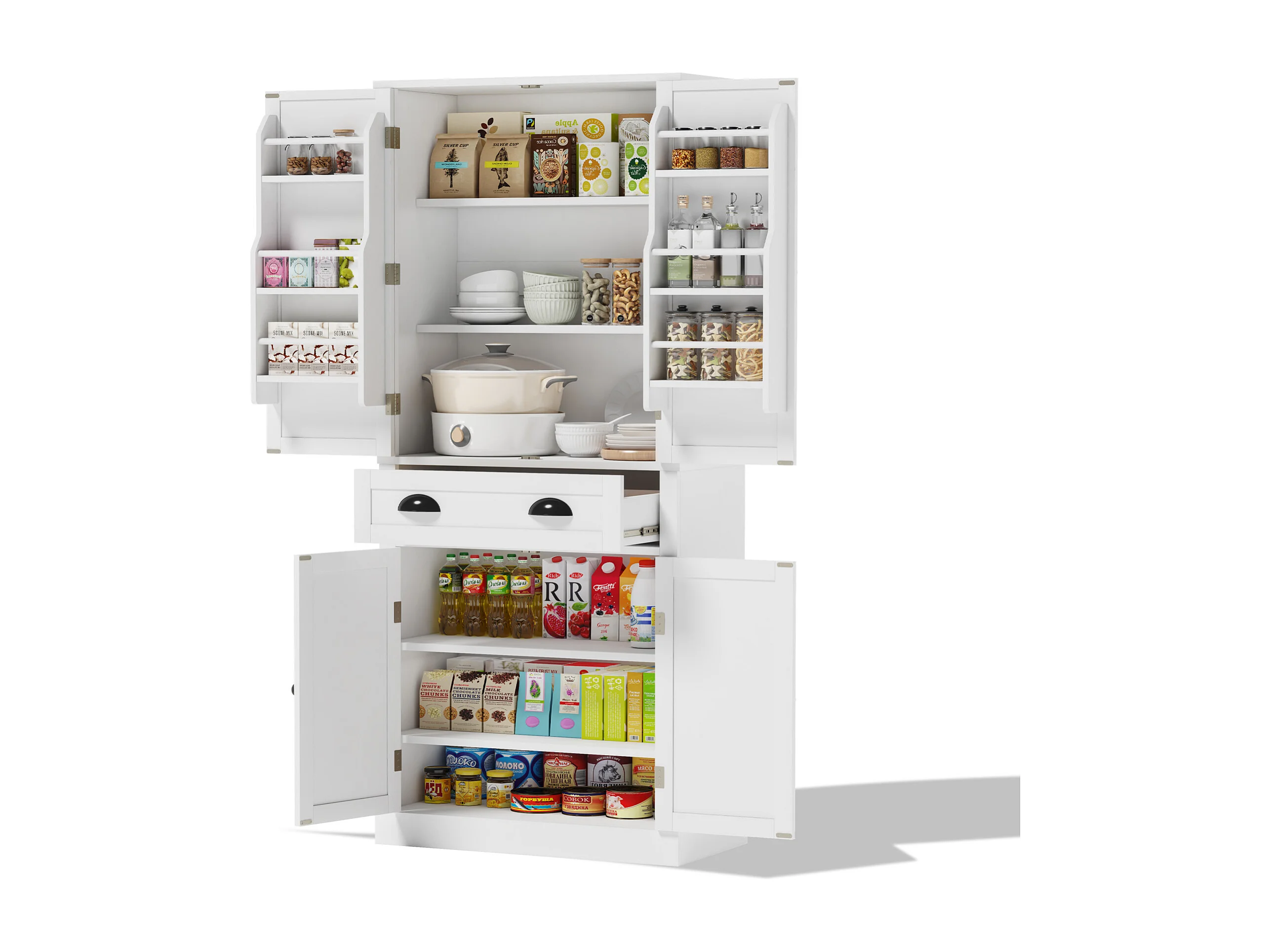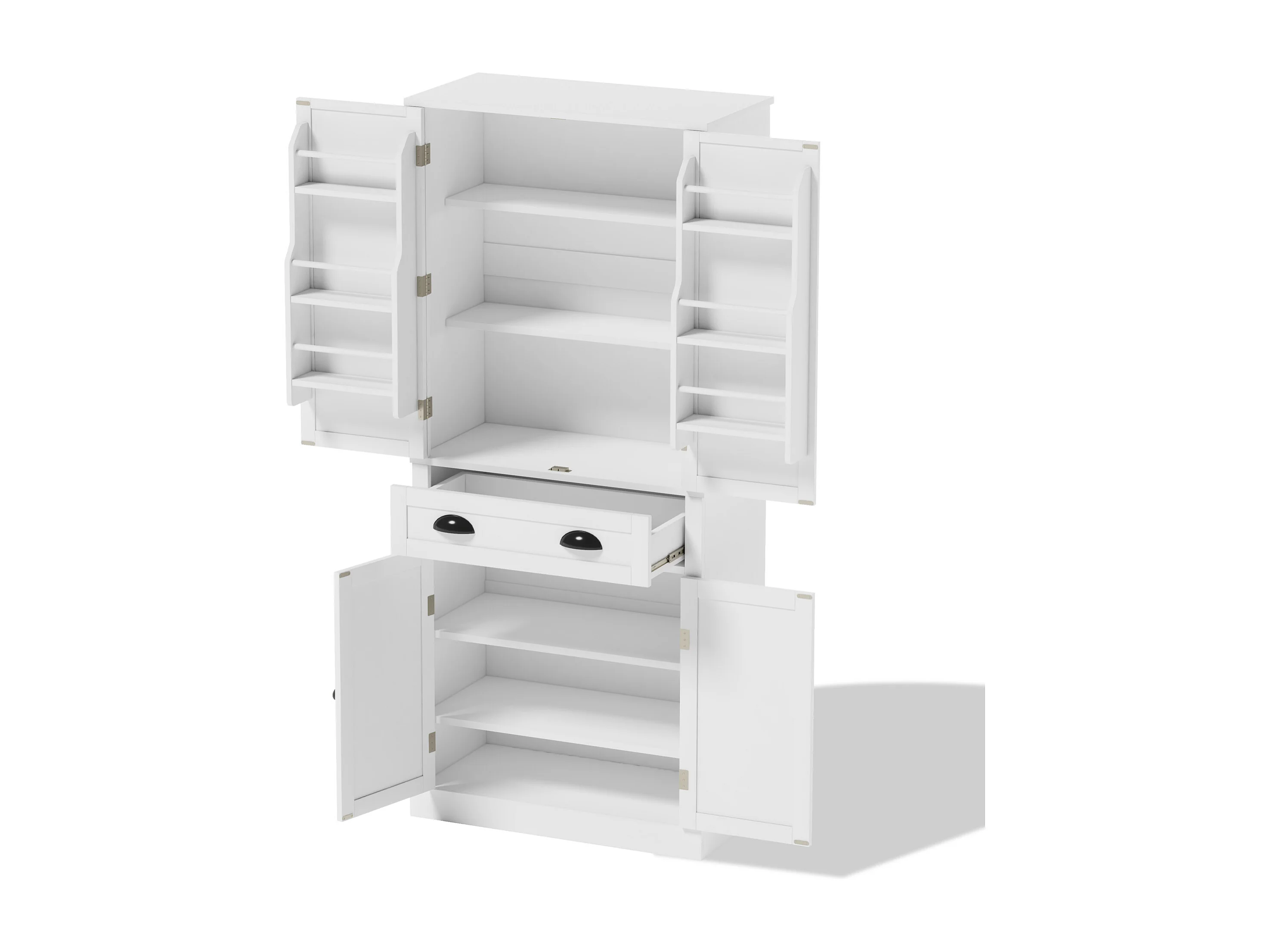 Buffet de cuisine avec 4 portes et tiroir - Etagères réglables - Blanc