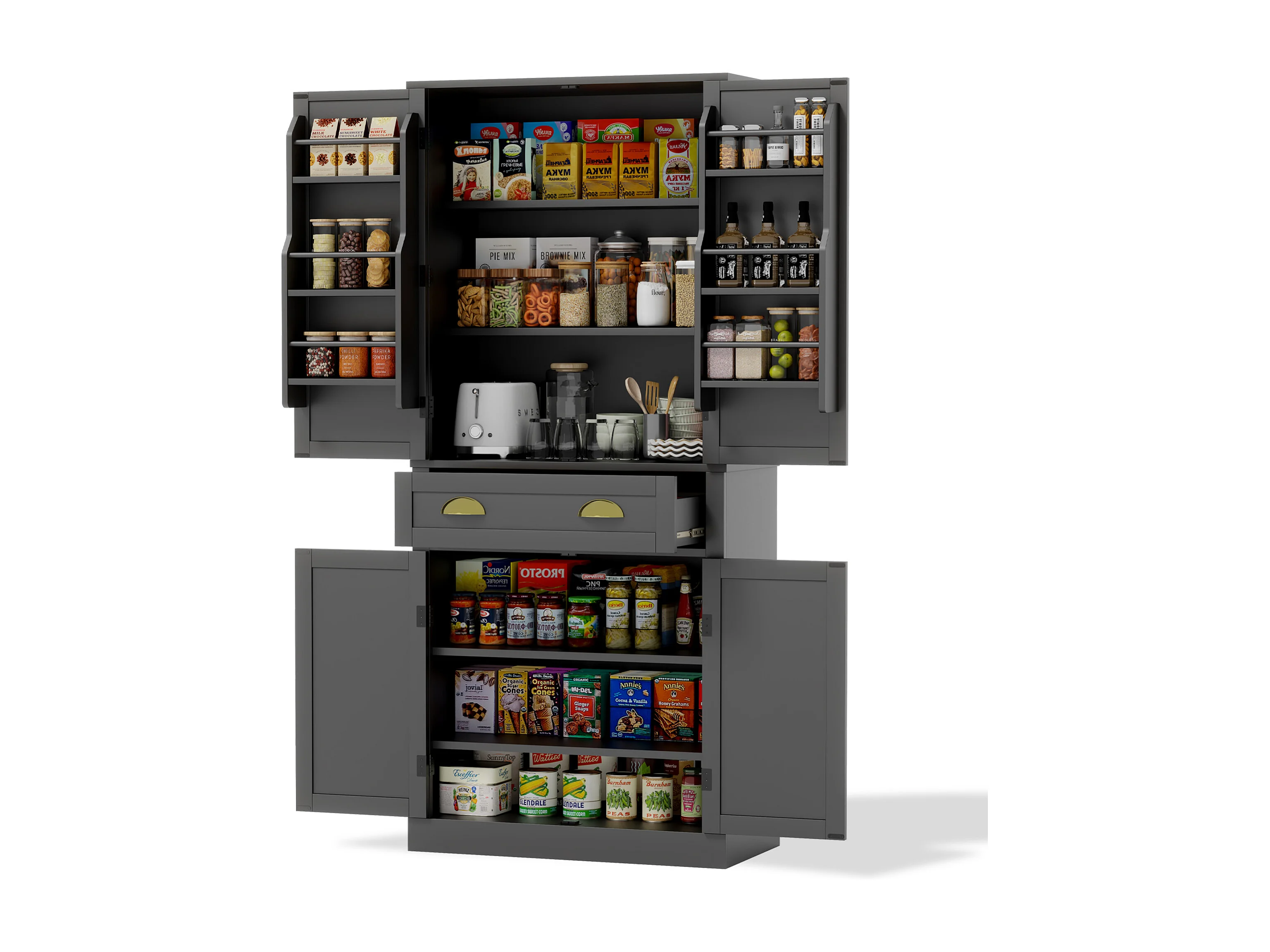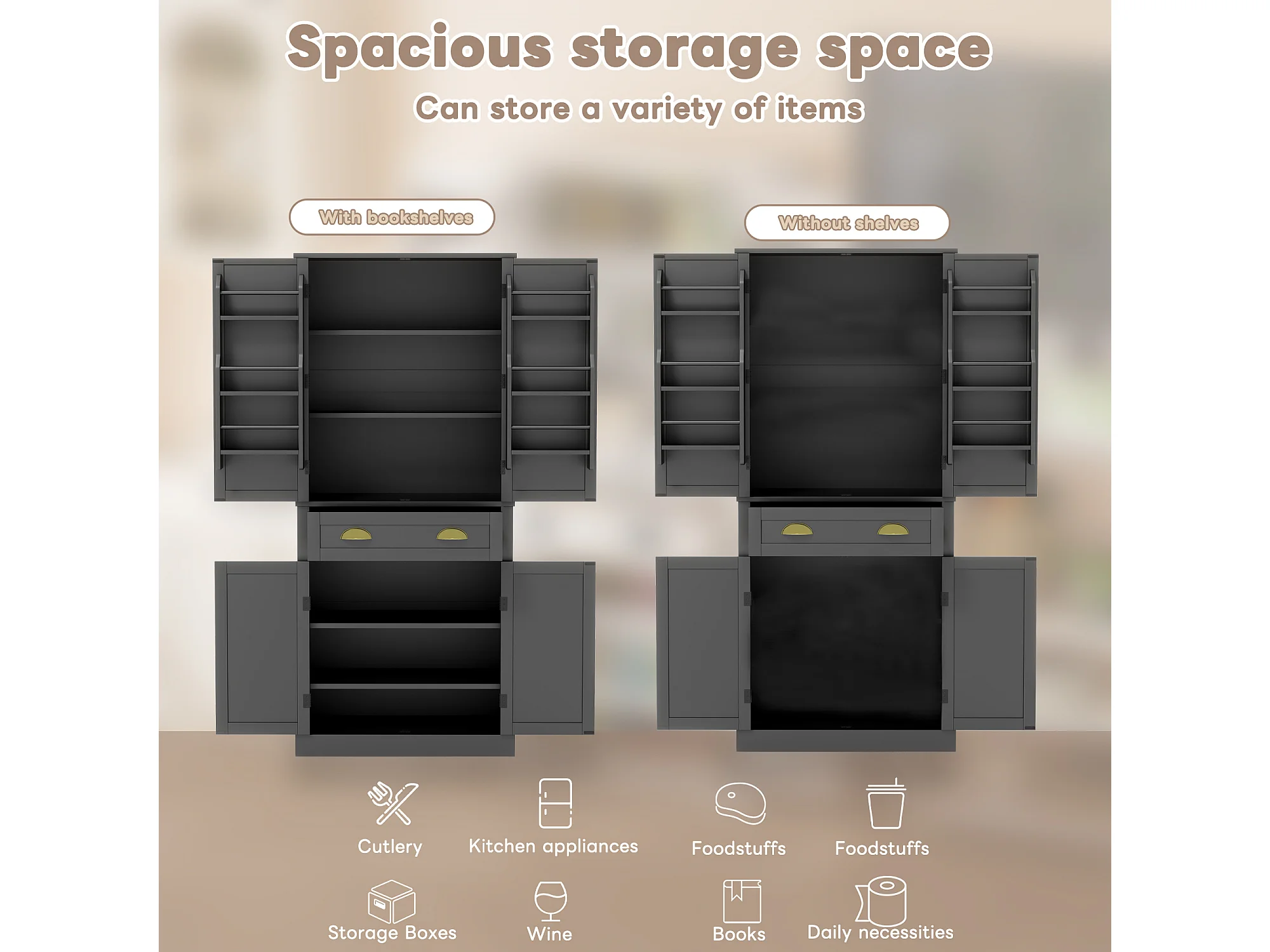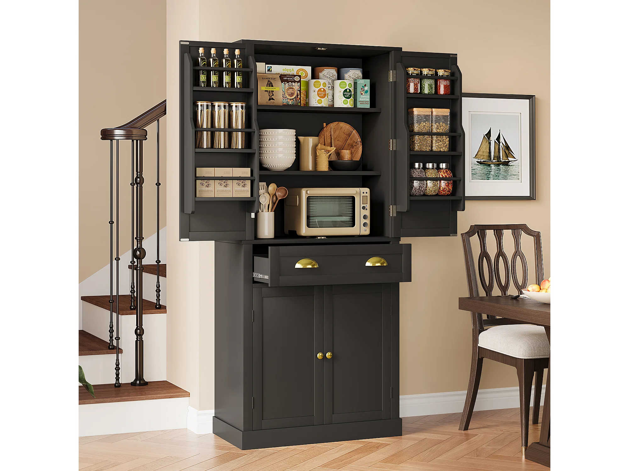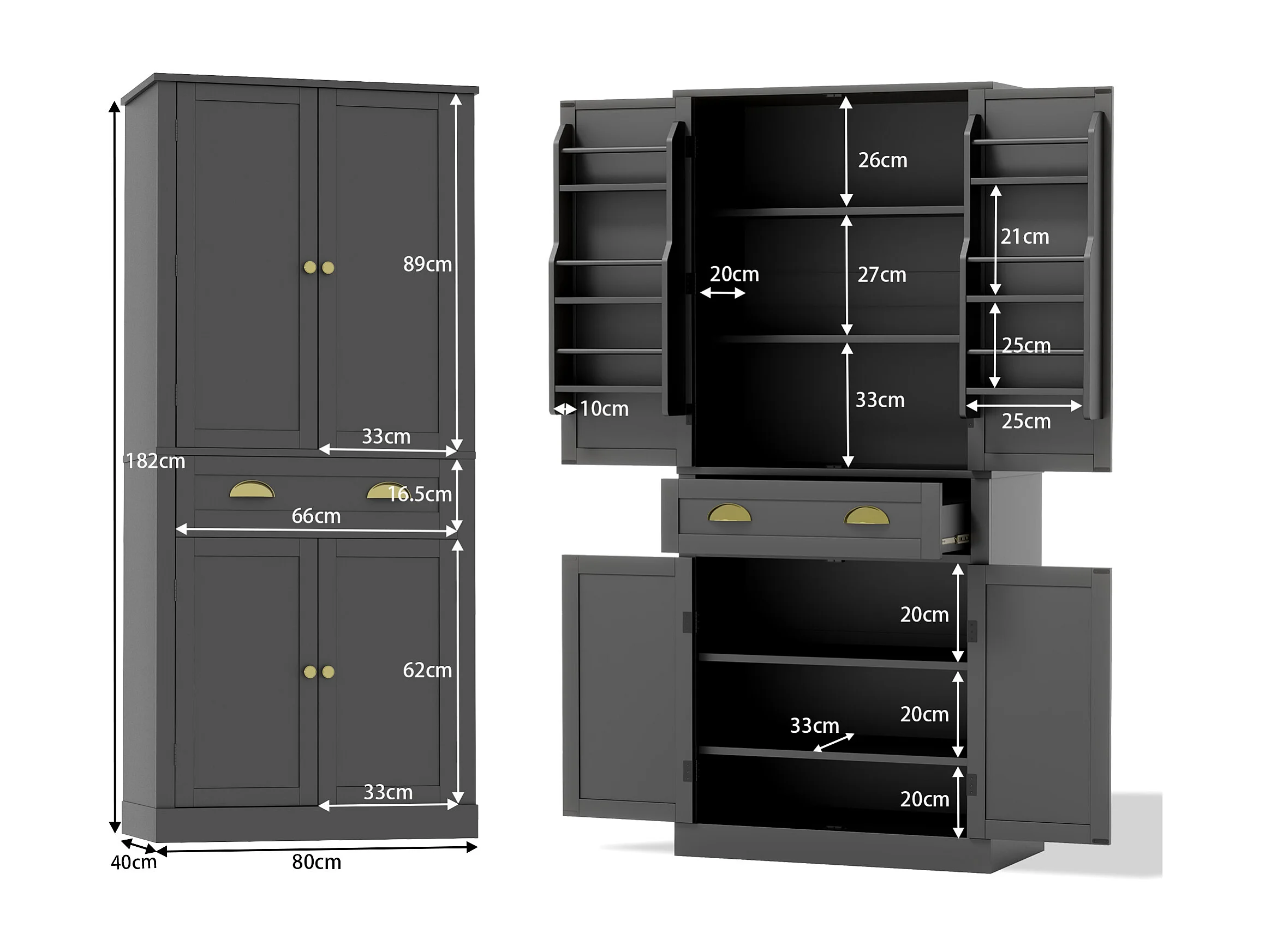 Buffet de cuisine avec 4 portes et tiroir - Etagères réglables - Noir