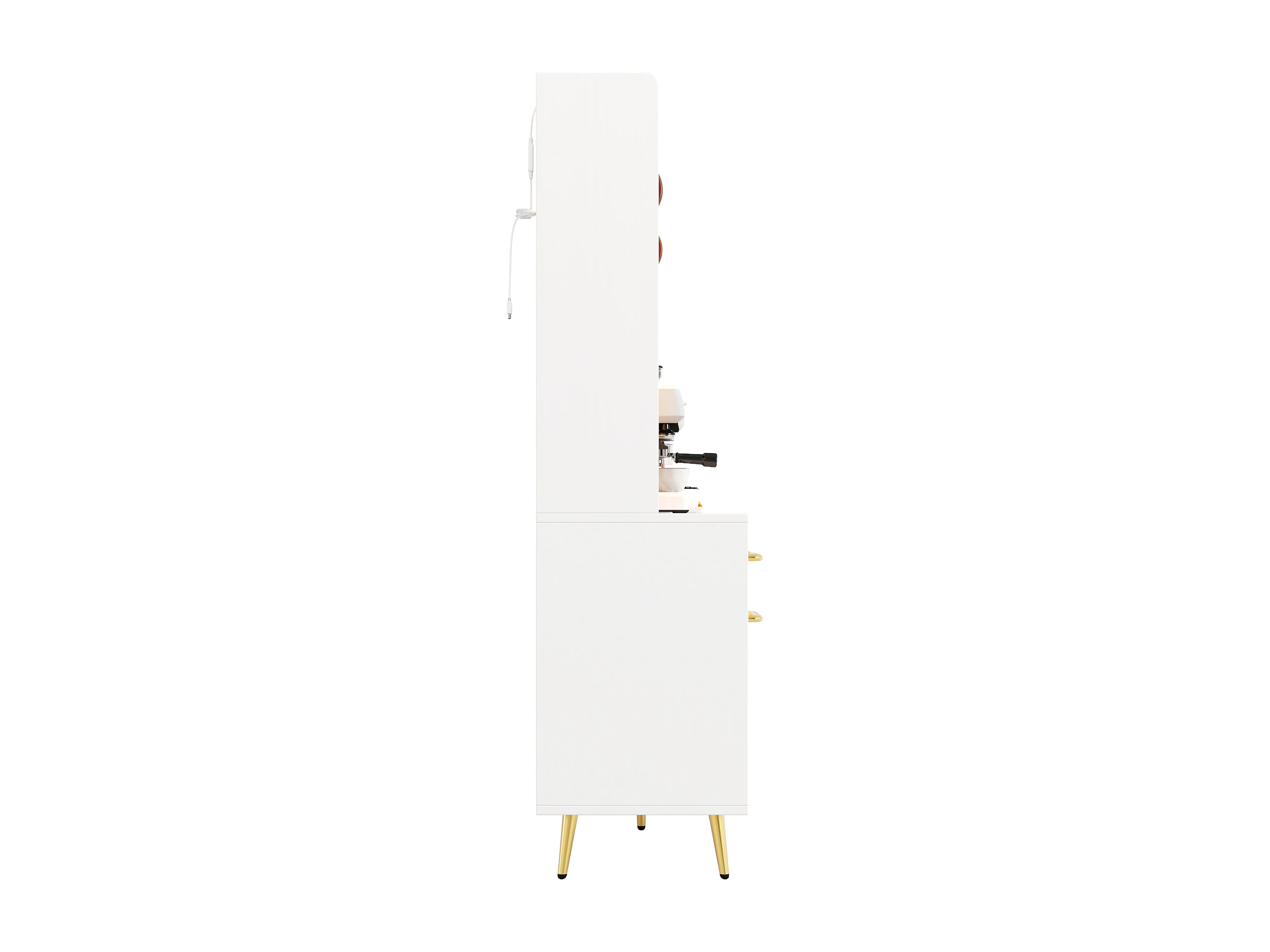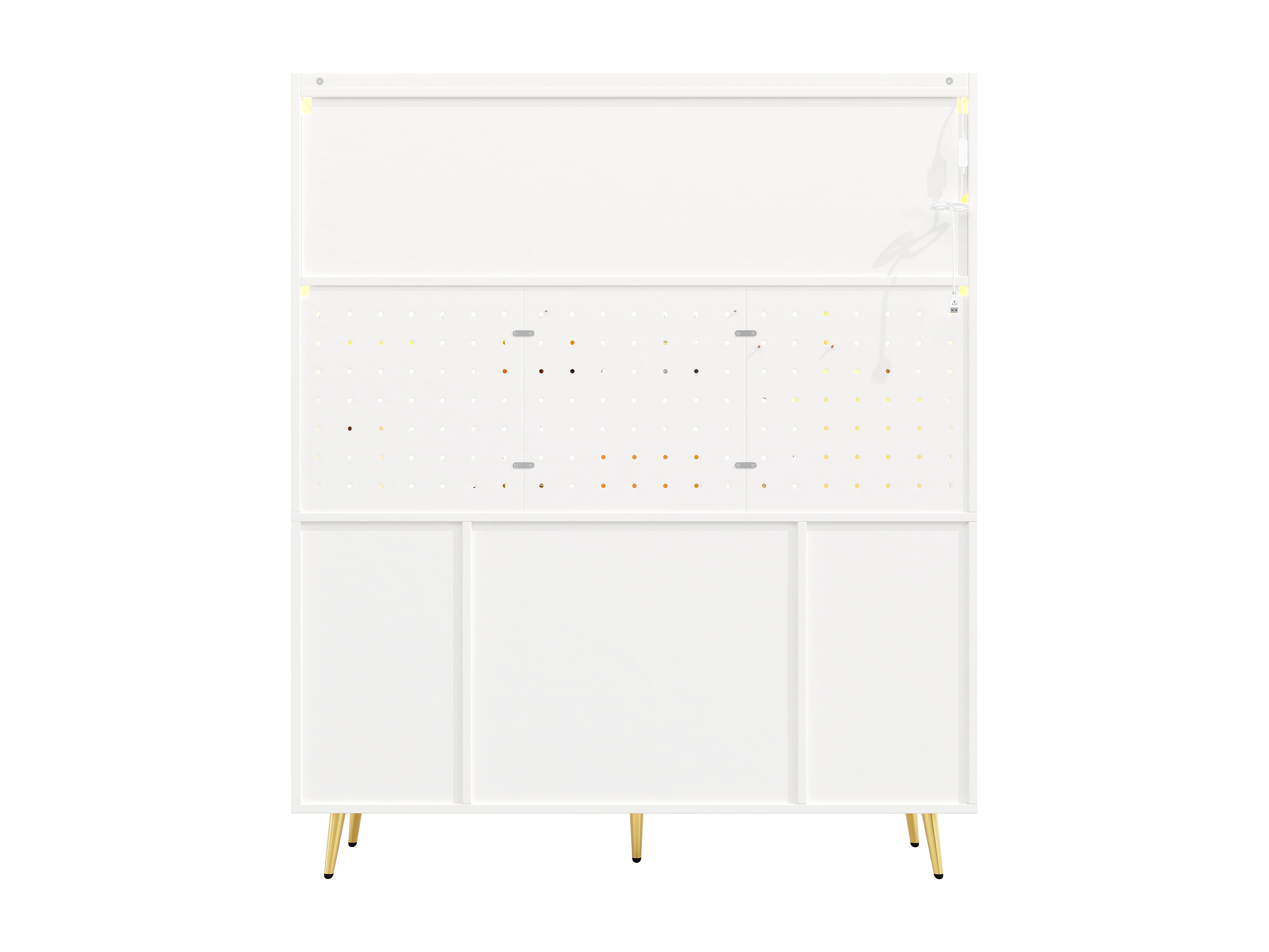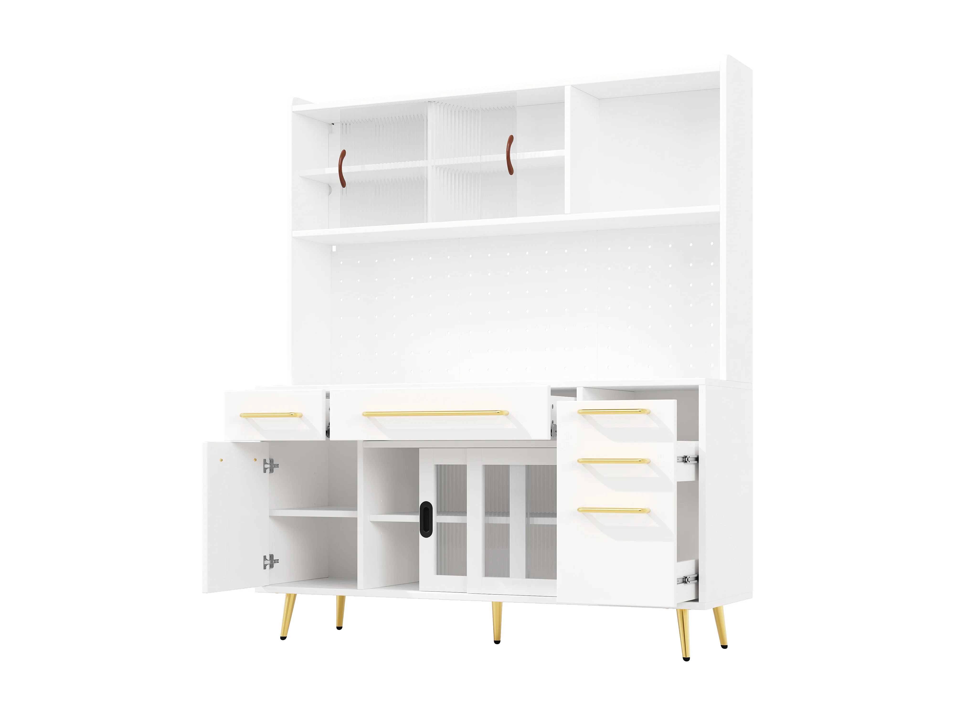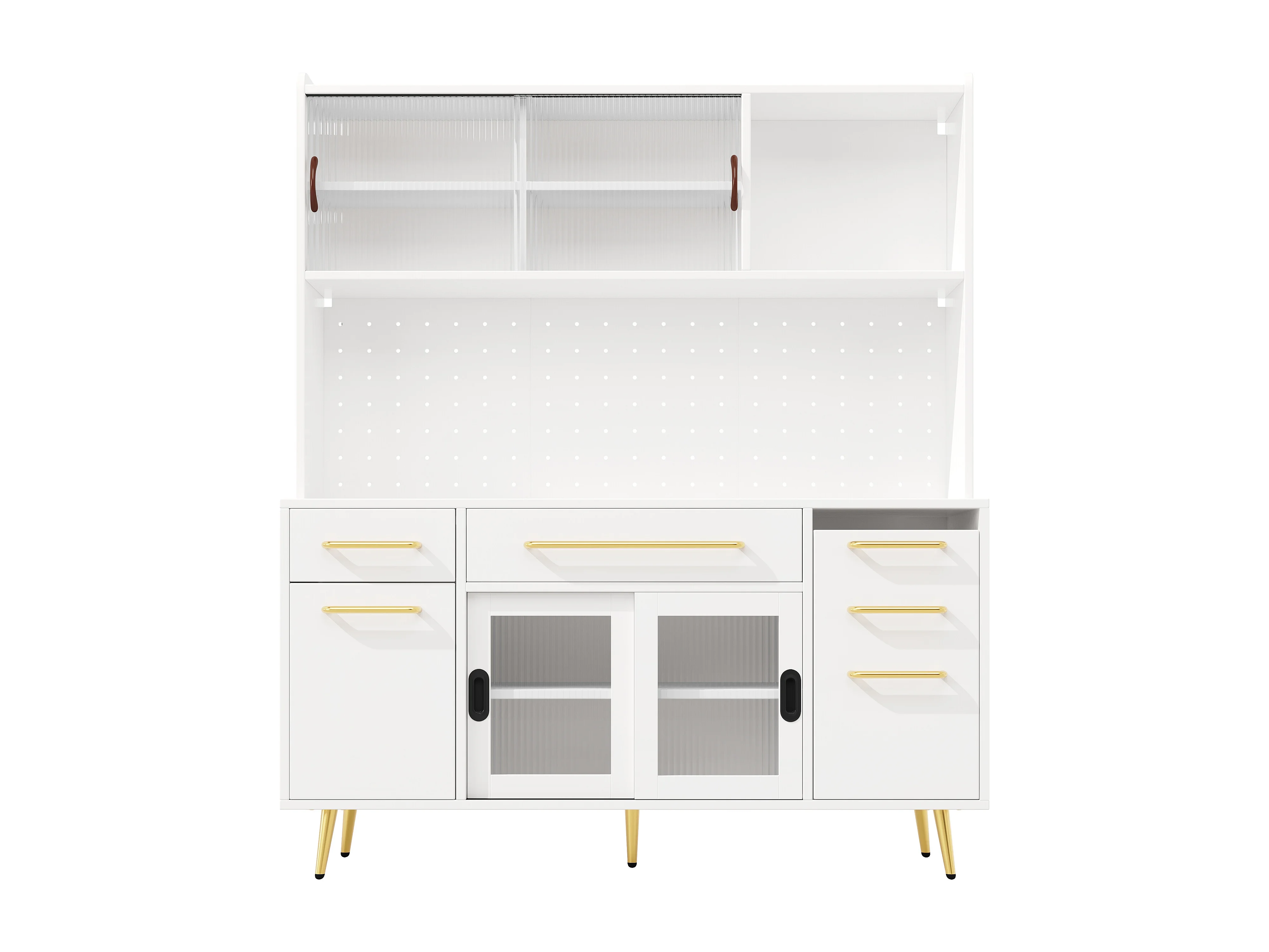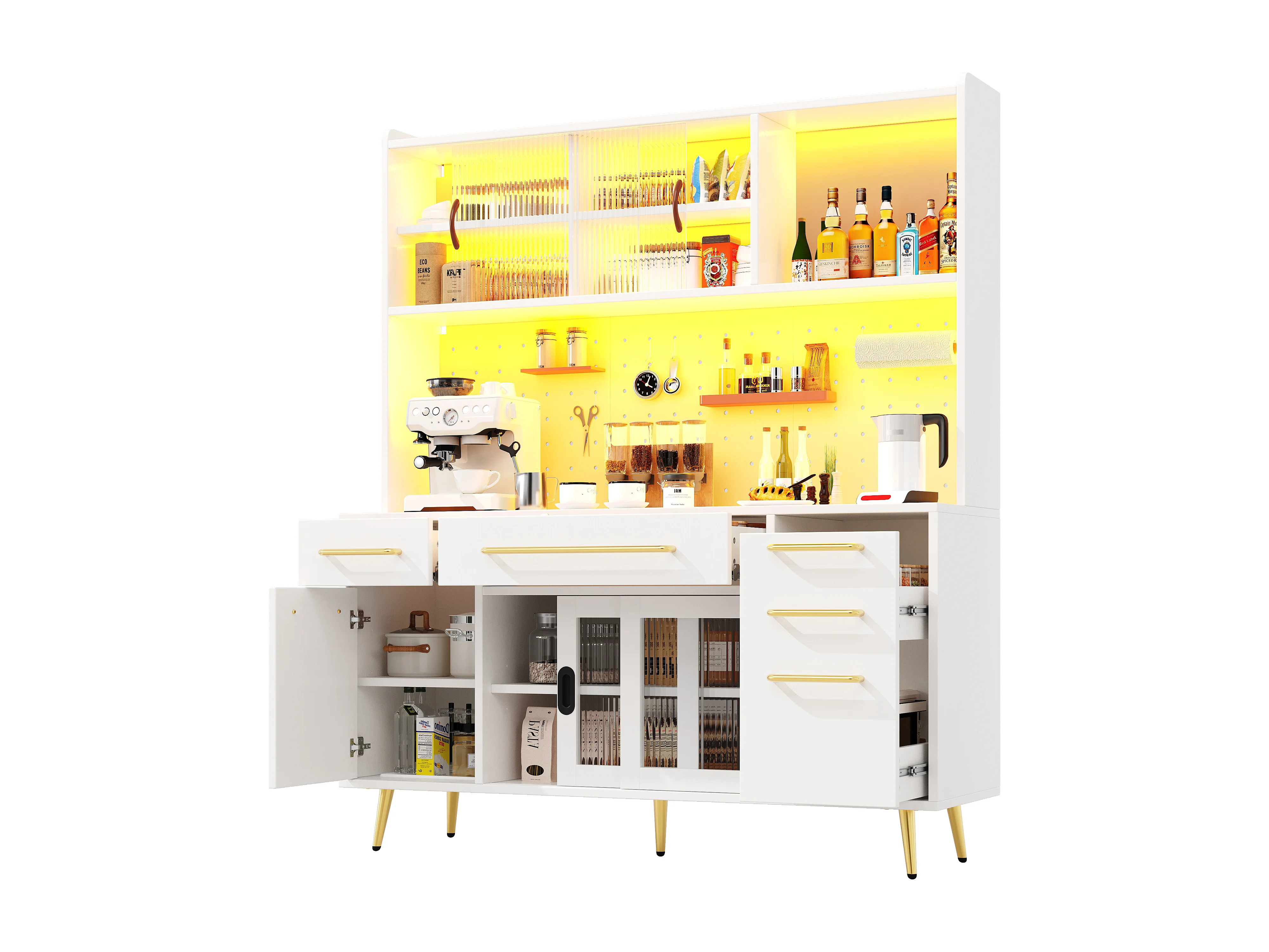 Buffet de cuisine avec LED, 3 tiroirs et portes verres coulissantes - Blanc 145 x 39 x171 cm