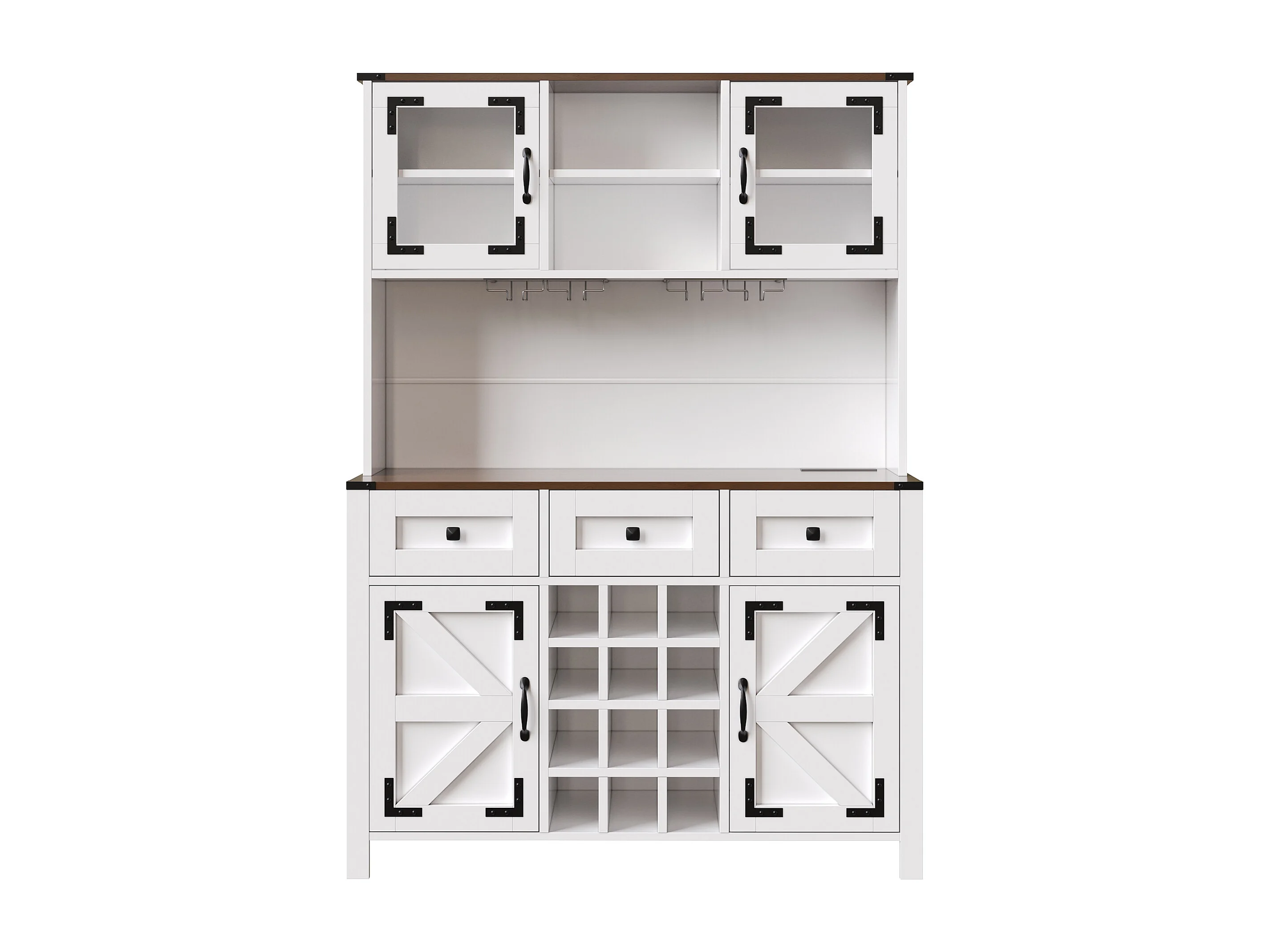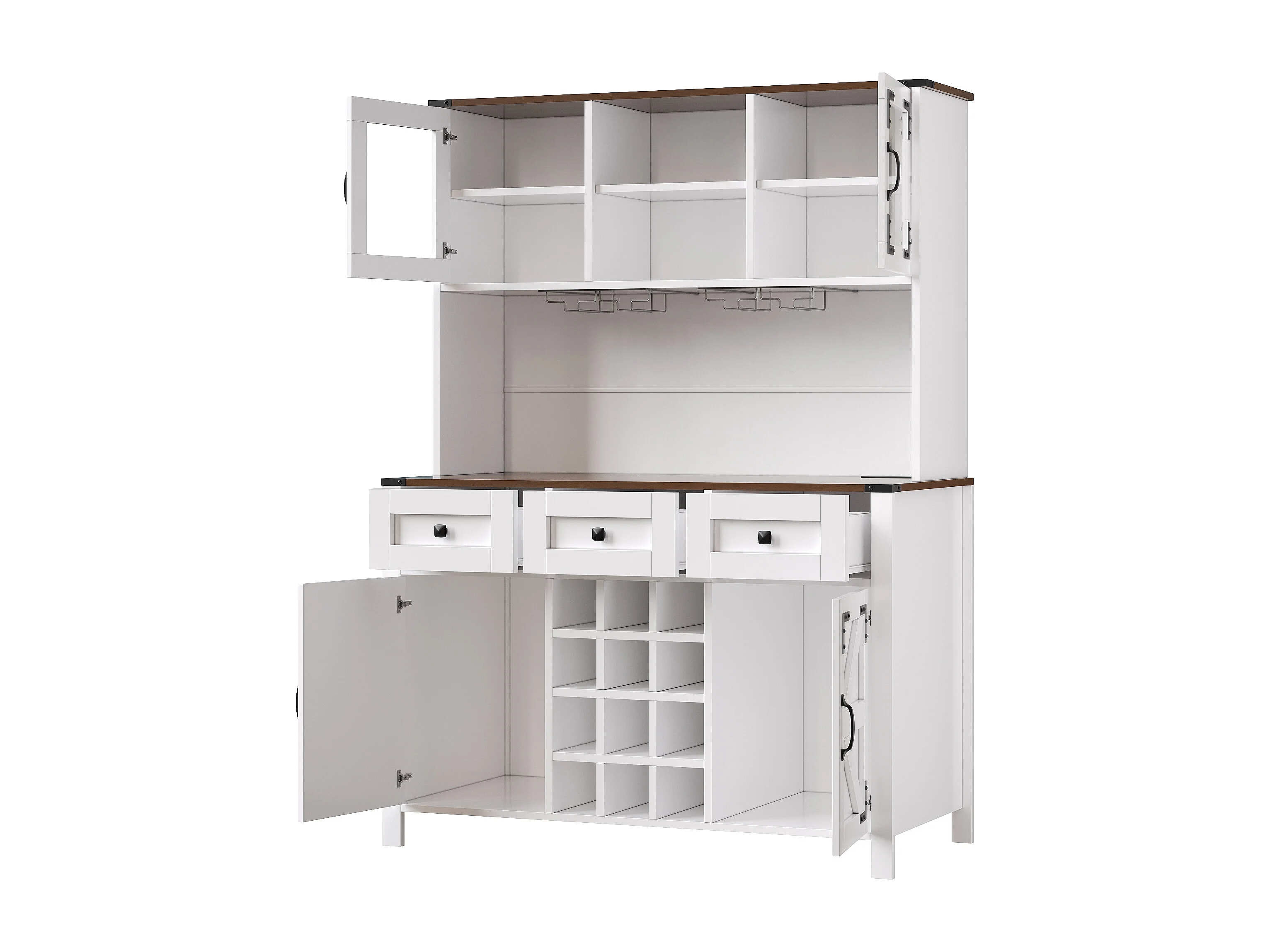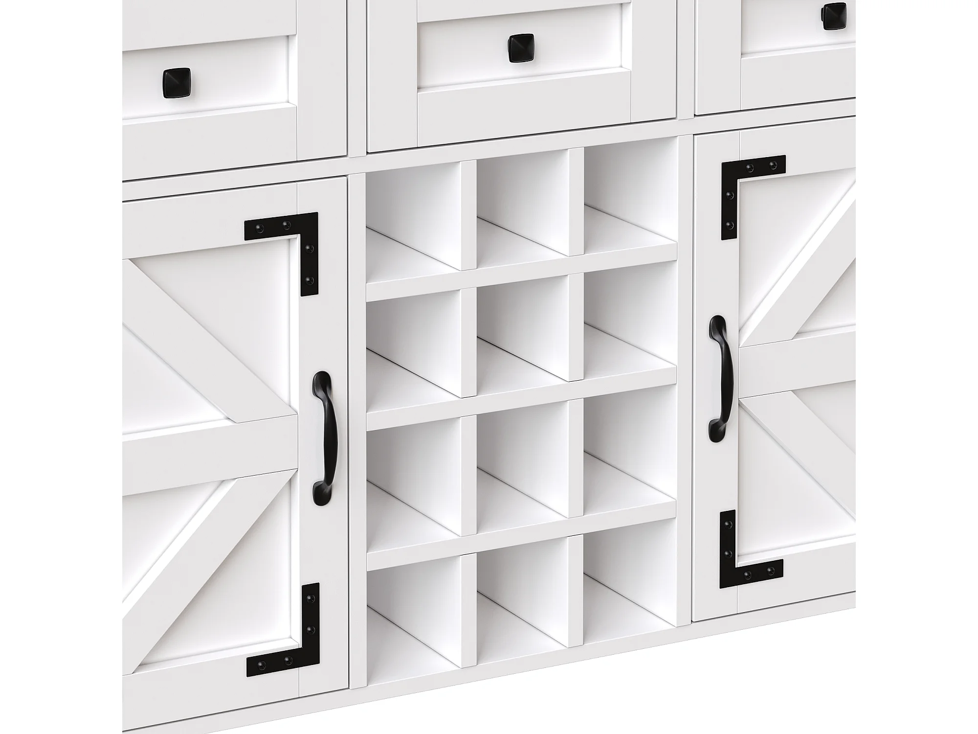 Buffet de cuisine avec LED, ports USB et prises, 4 portes et 3 tiroirs, blanc